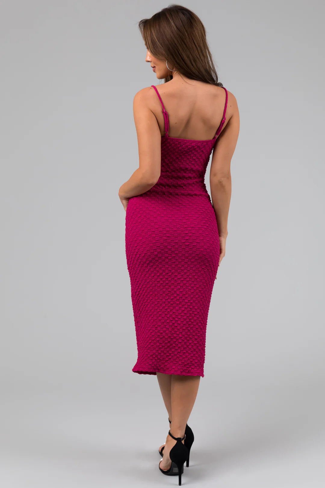 Magenta Textured Deep Sweetheart Neck Midi Dress - LD SALE Magenta Textured Deep Sweetheart Neck Midi Dress - LD SALE