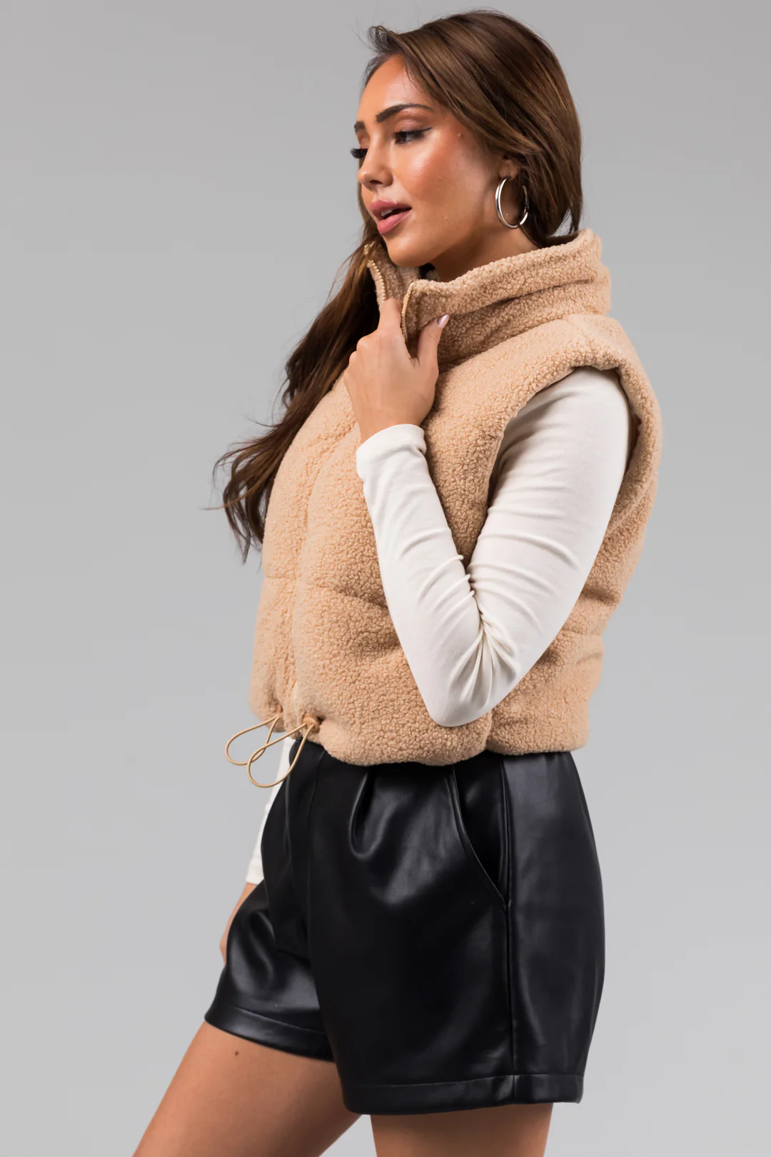 Beige Sherpa Zip Up Vest