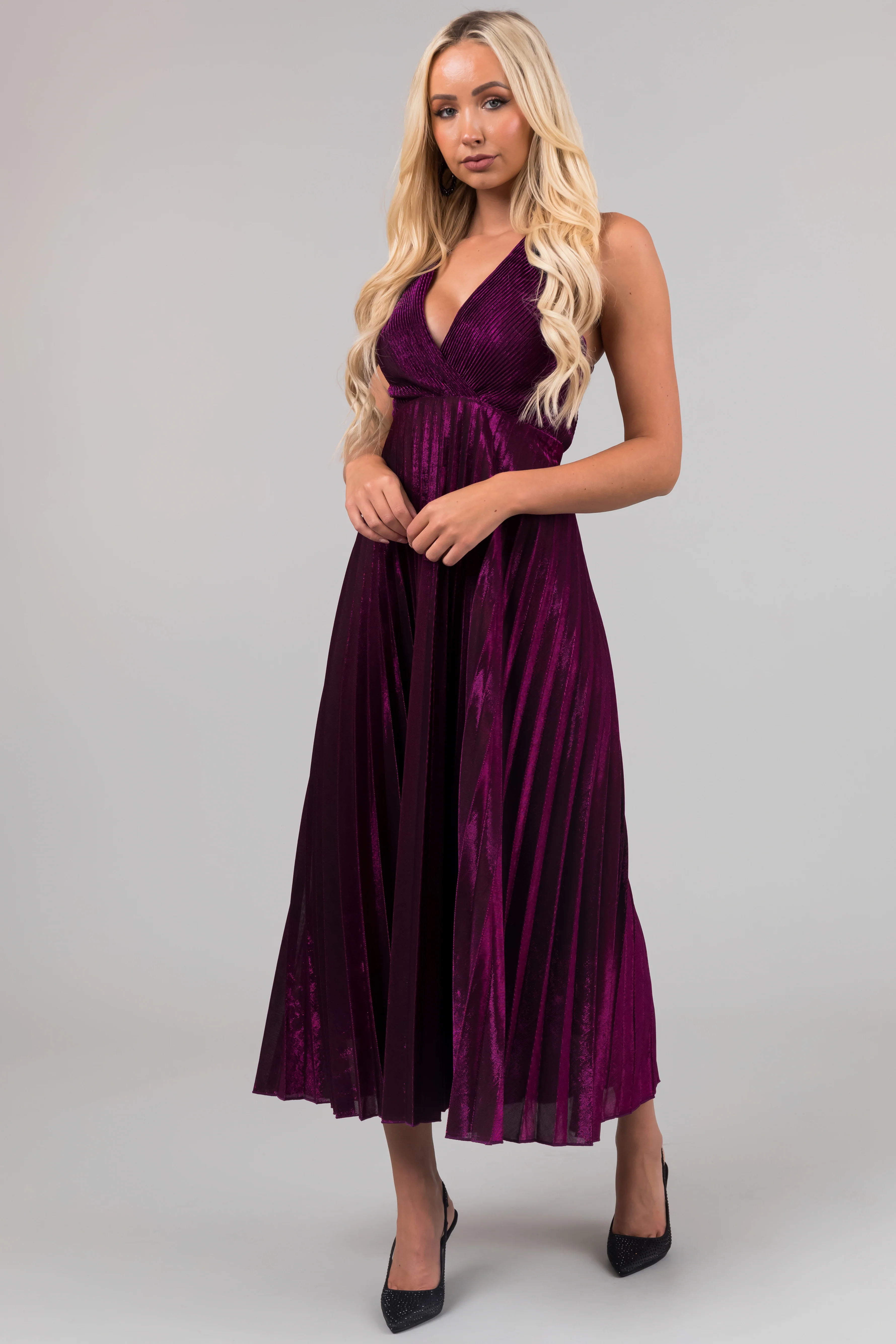 Plum Surplice Neck Sleeveless Pleated Maxi Dress - LD SALE Plum Surplice Neck Sleeveless Pleated Maxi Dress - LD SALE