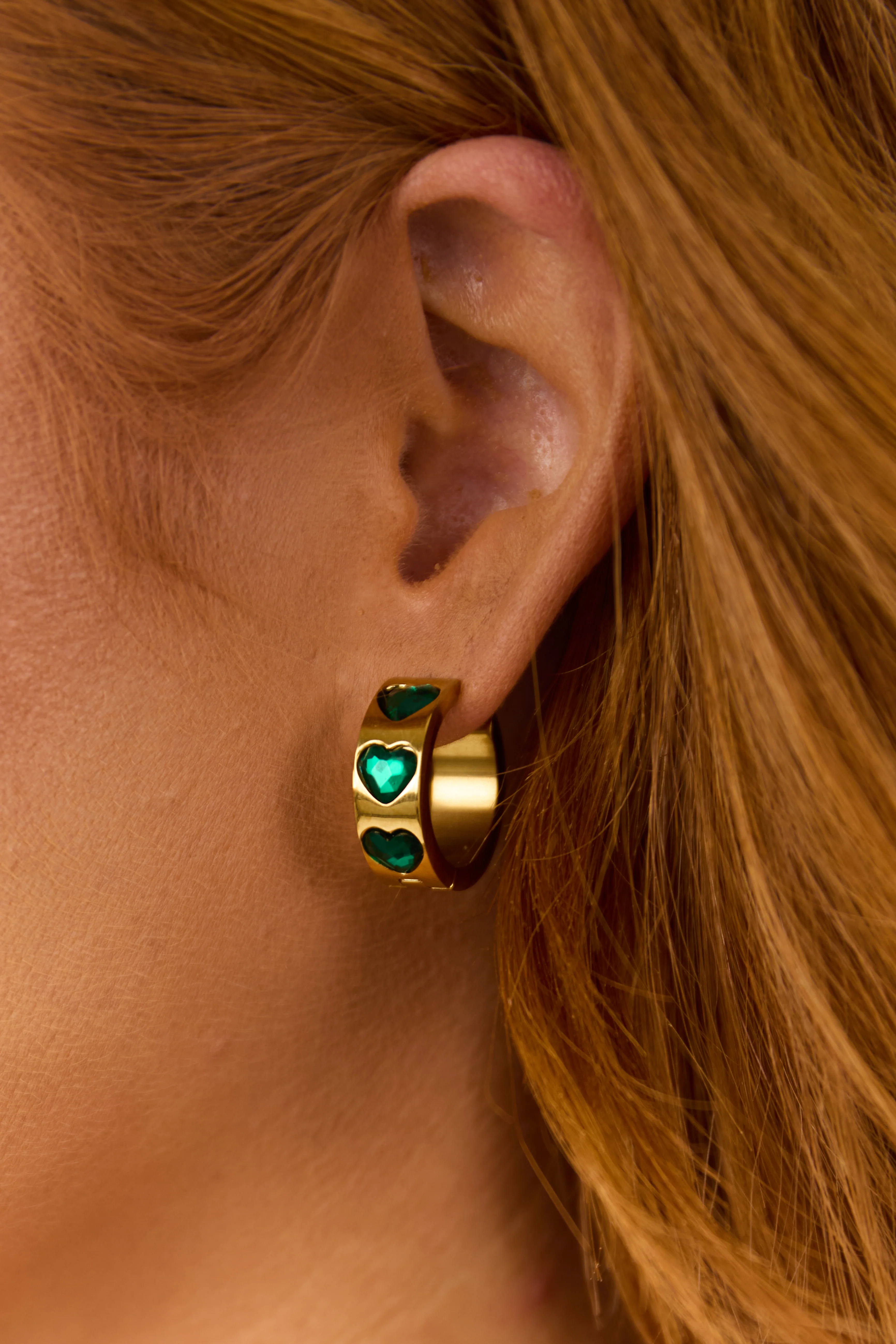 Gold Heart Gemstone Thick Huggie Hoop Earrings