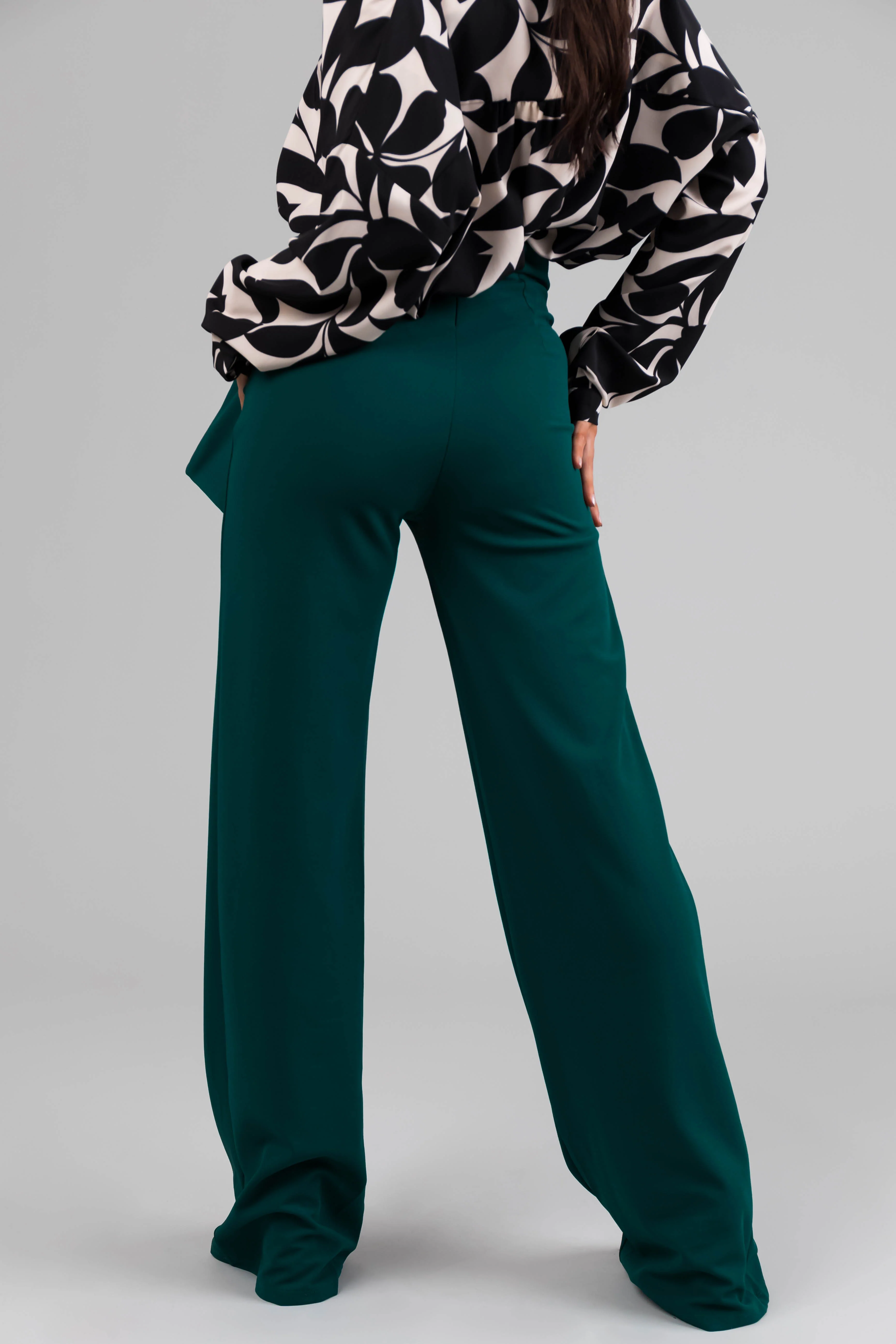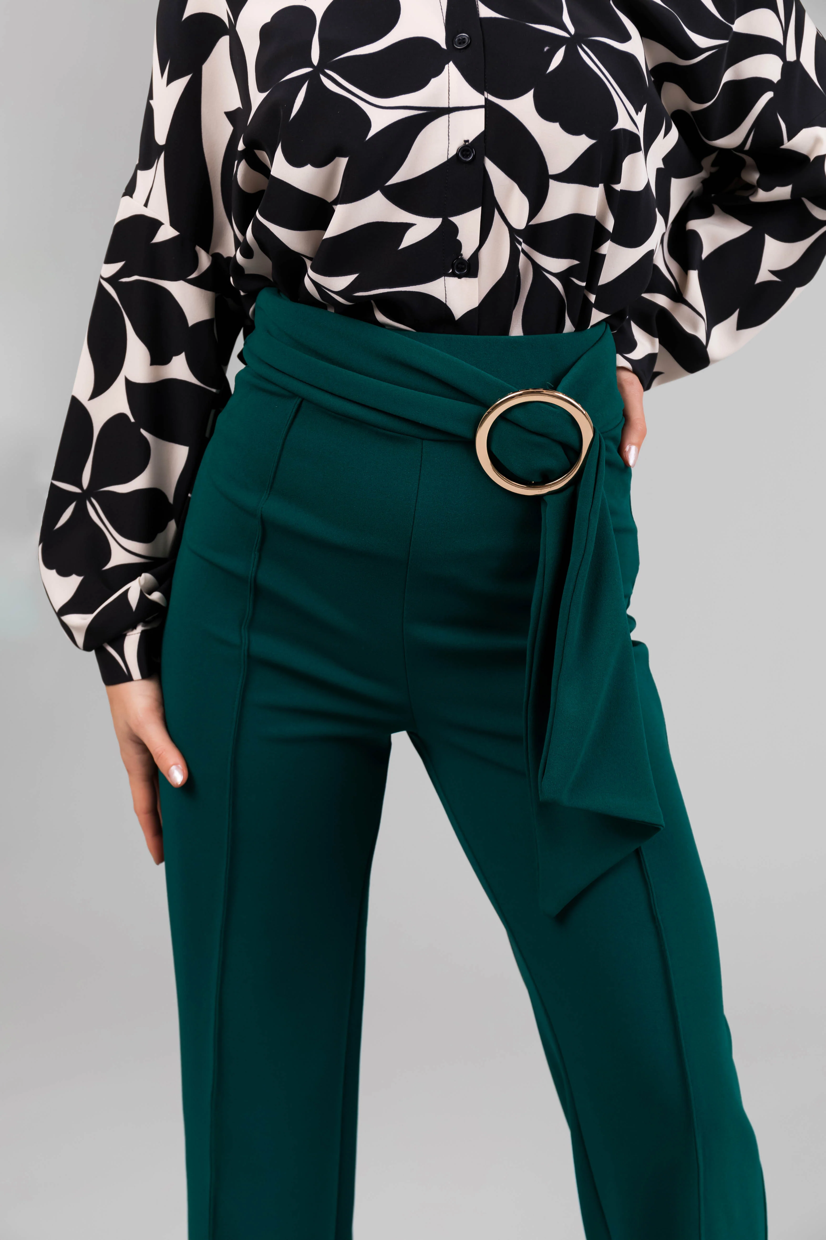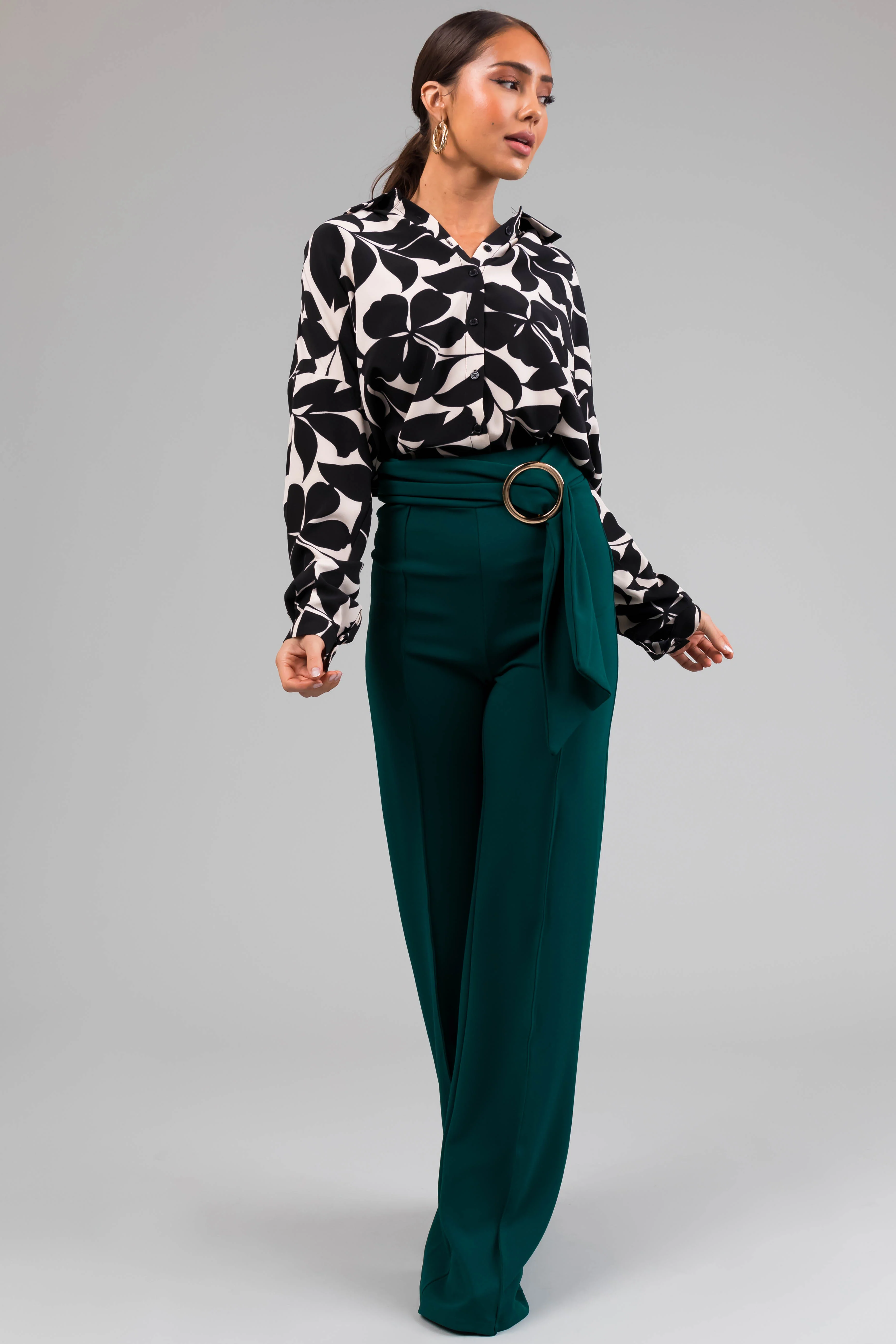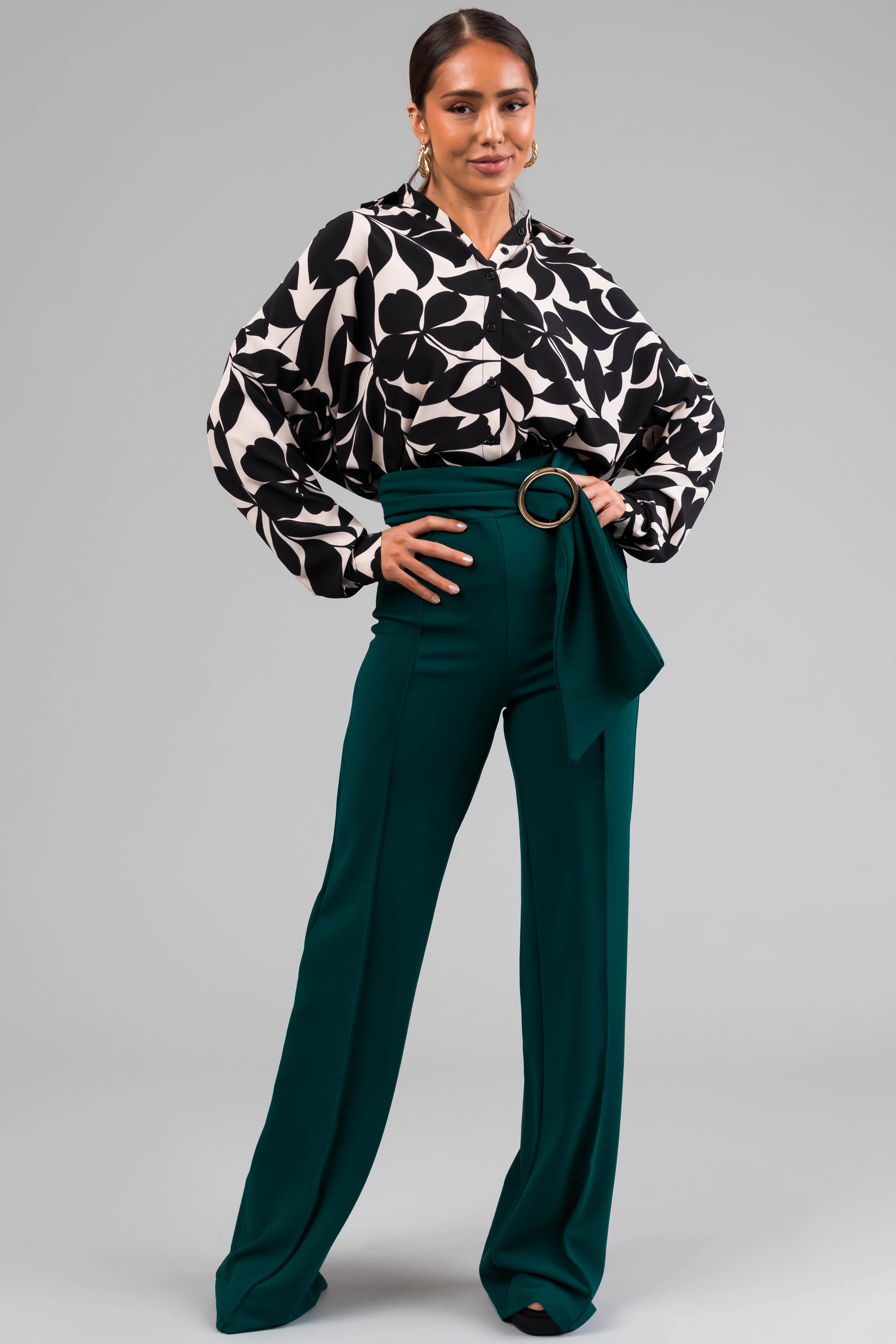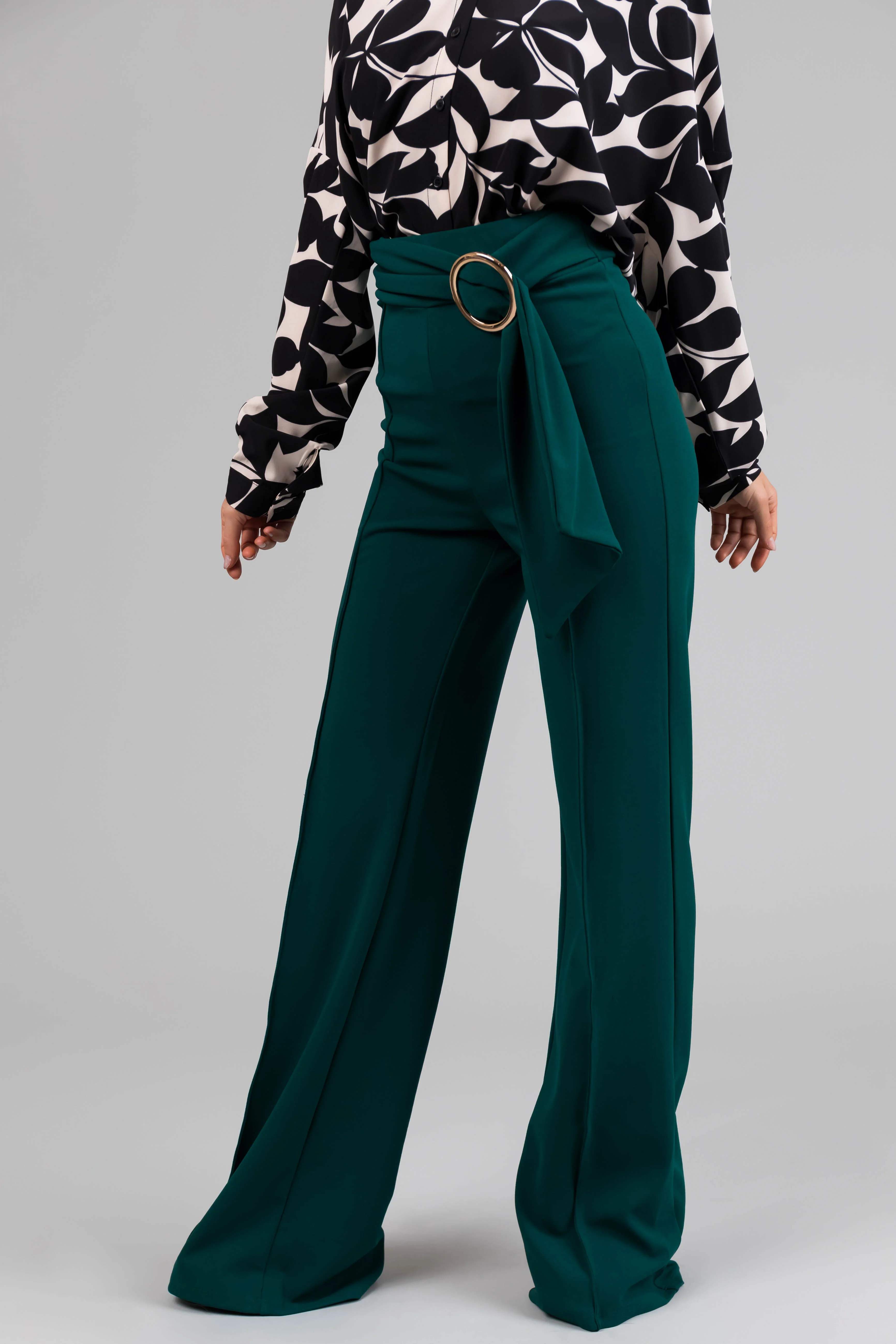 Pine Ring Belt Waist Wide Leg Pants