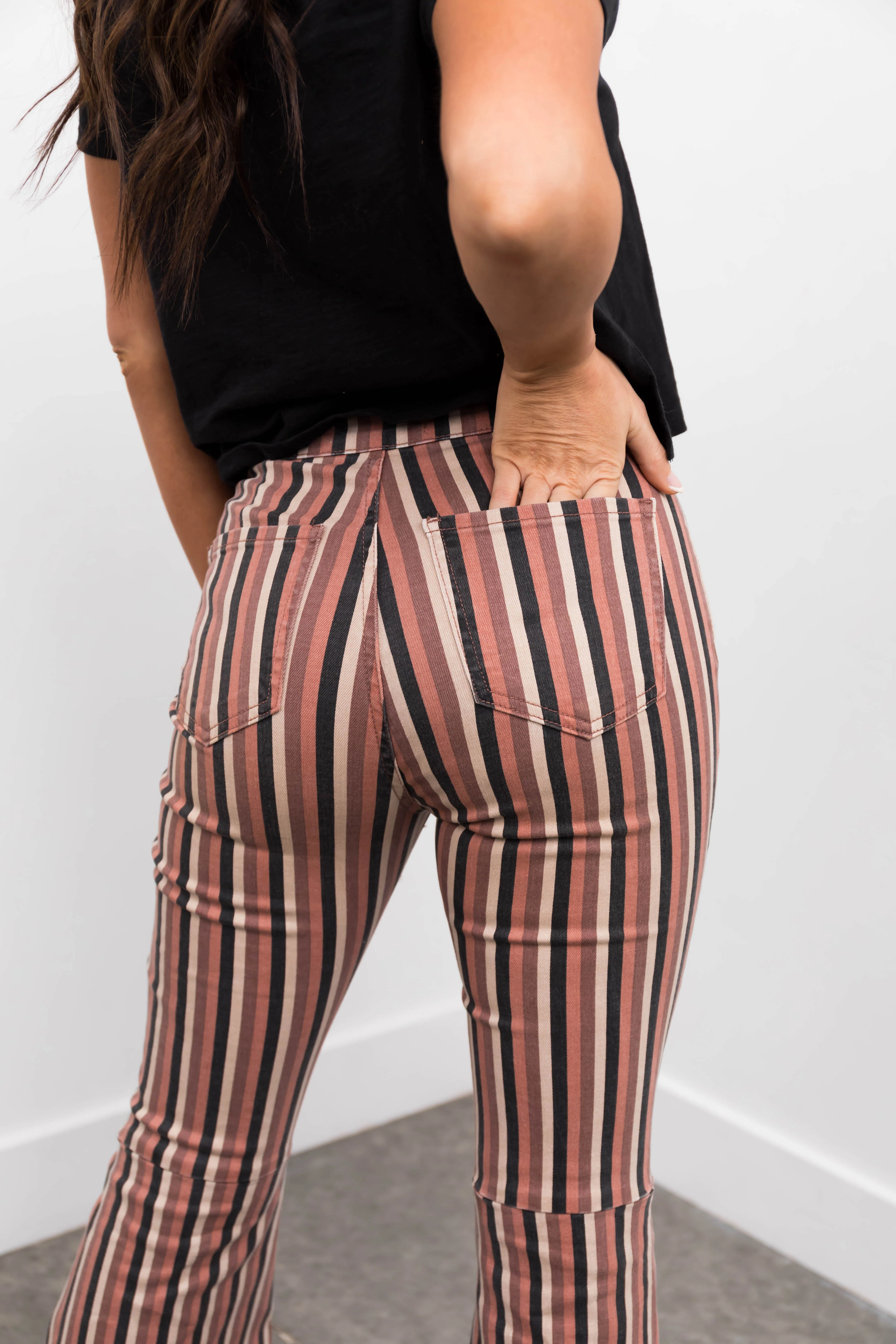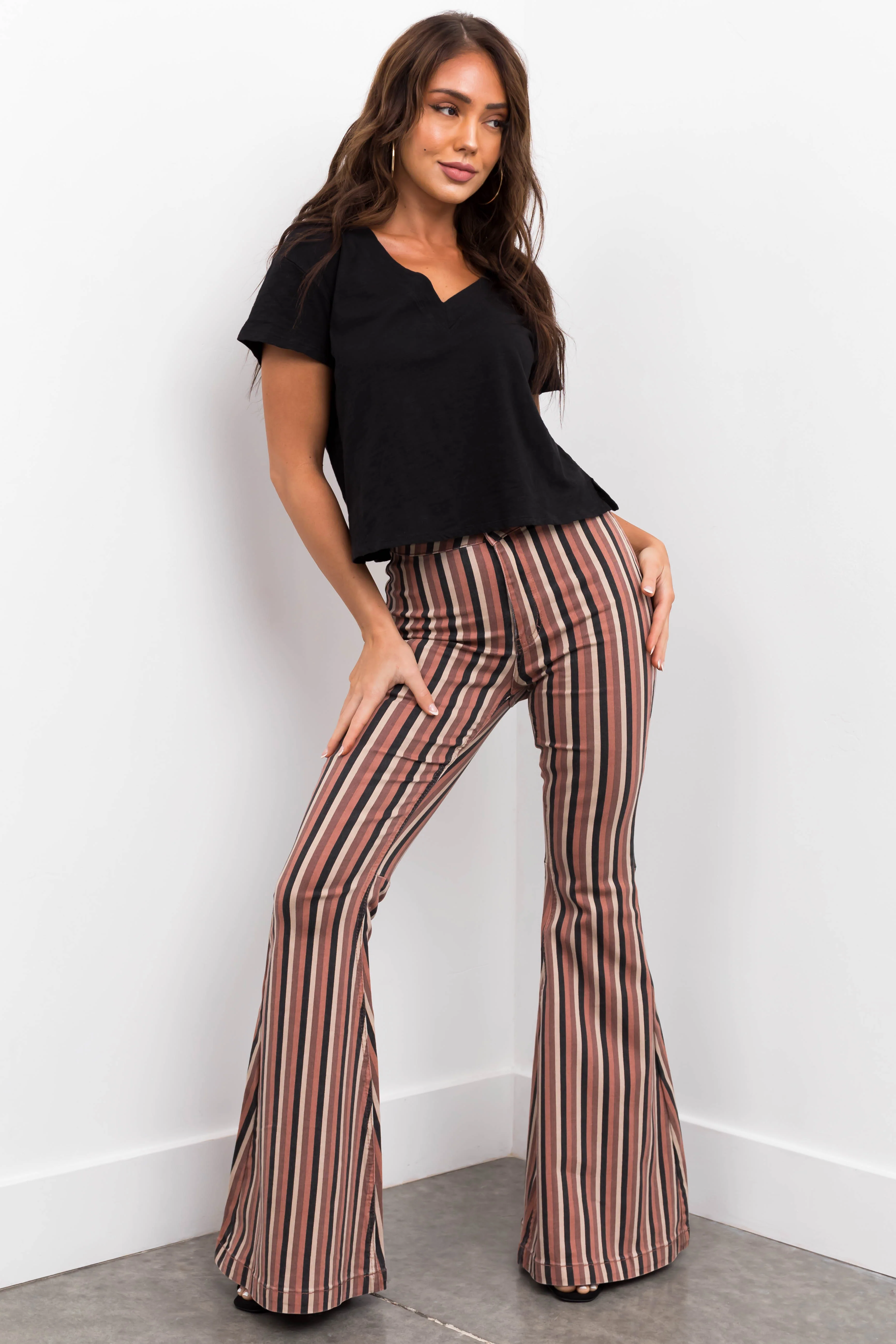 KanCan Rose Taupe Striped Super Flare Jeans
