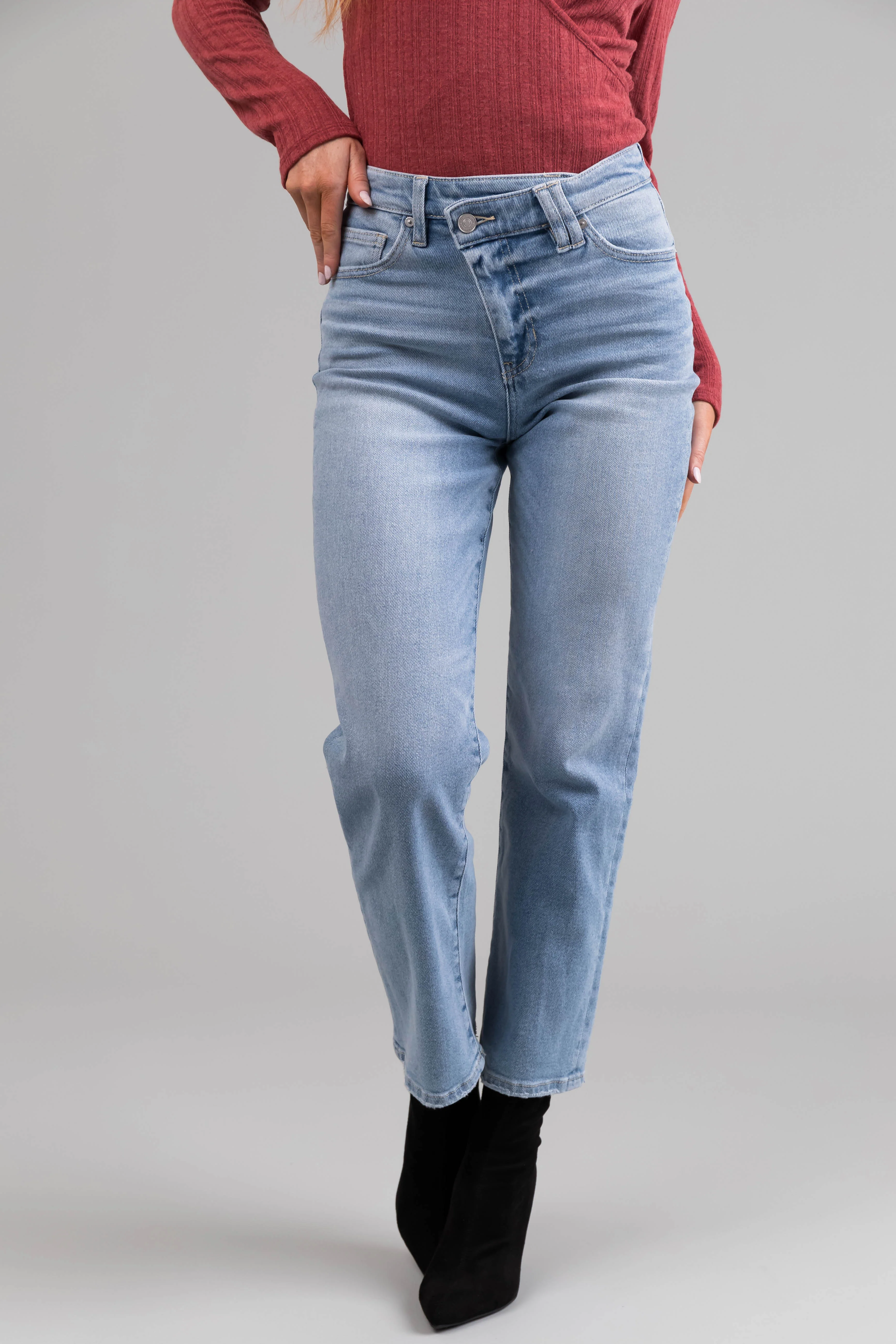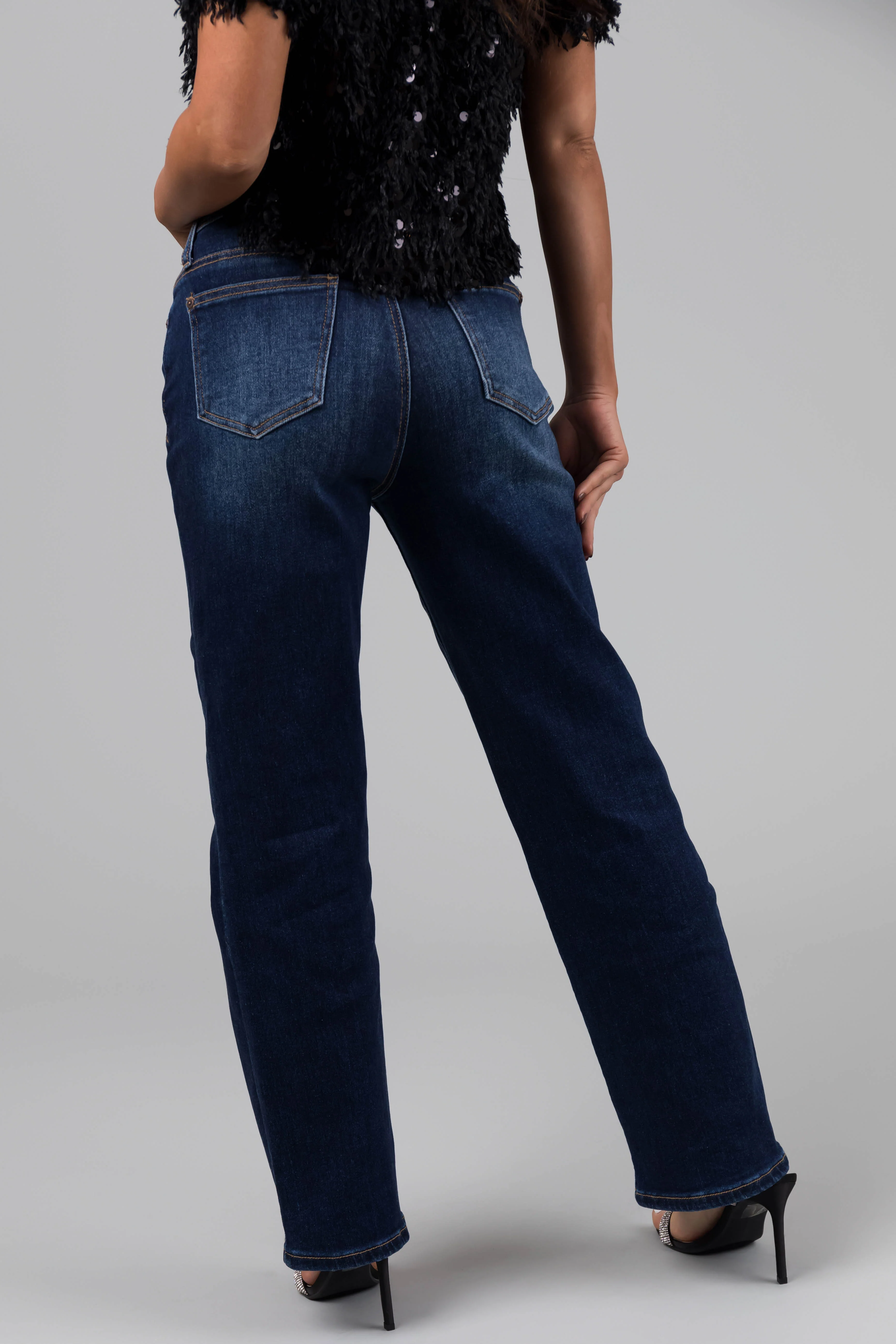 KanCan High Rise 90's Criss Cross Straight Jeans
