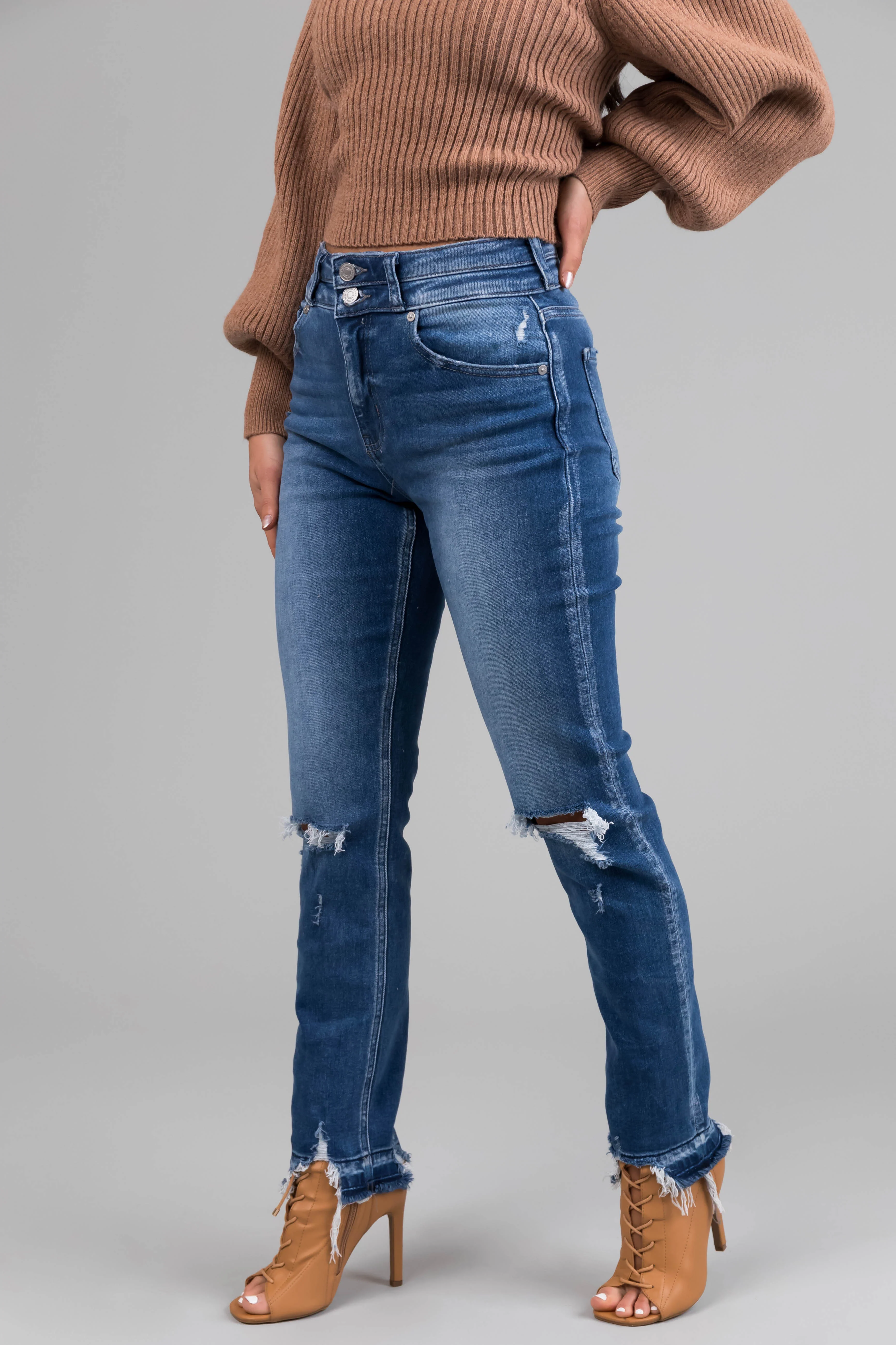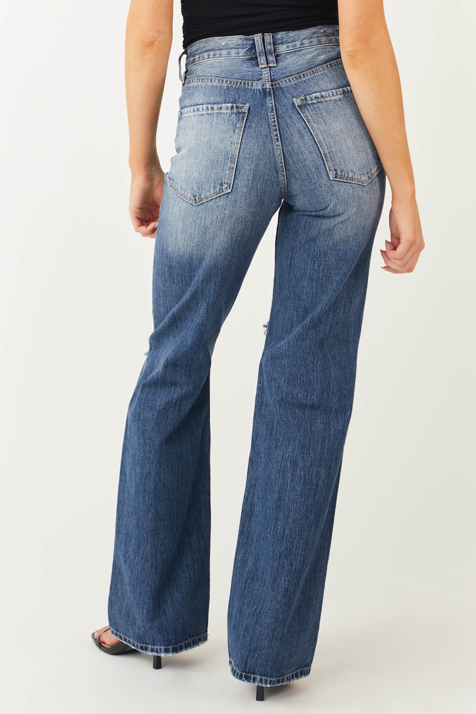 KanCan Medium Wash Distressed High Rise Straight Leg Jeans
