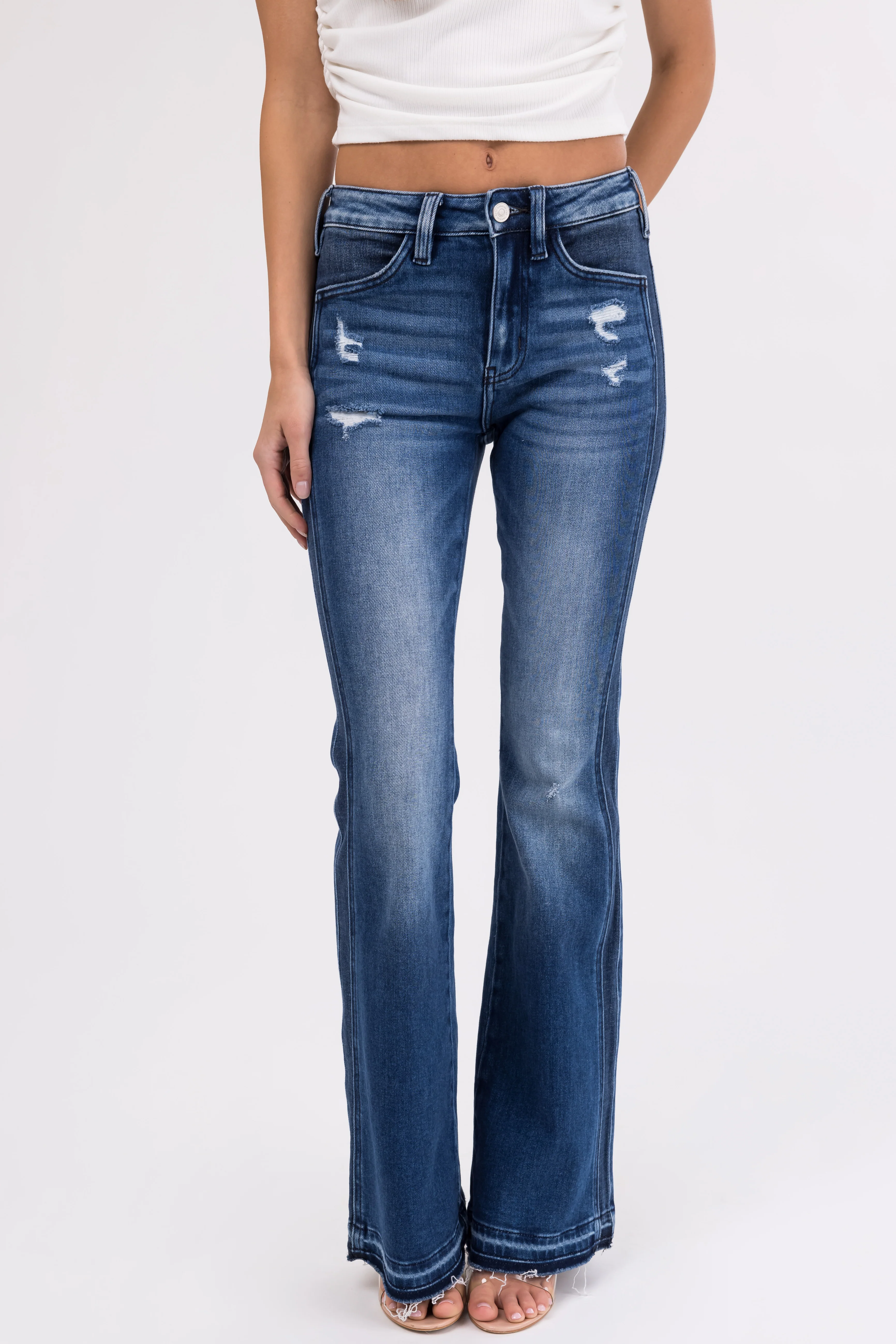 KanCan Dark Washed Double Seam Flare Jeans