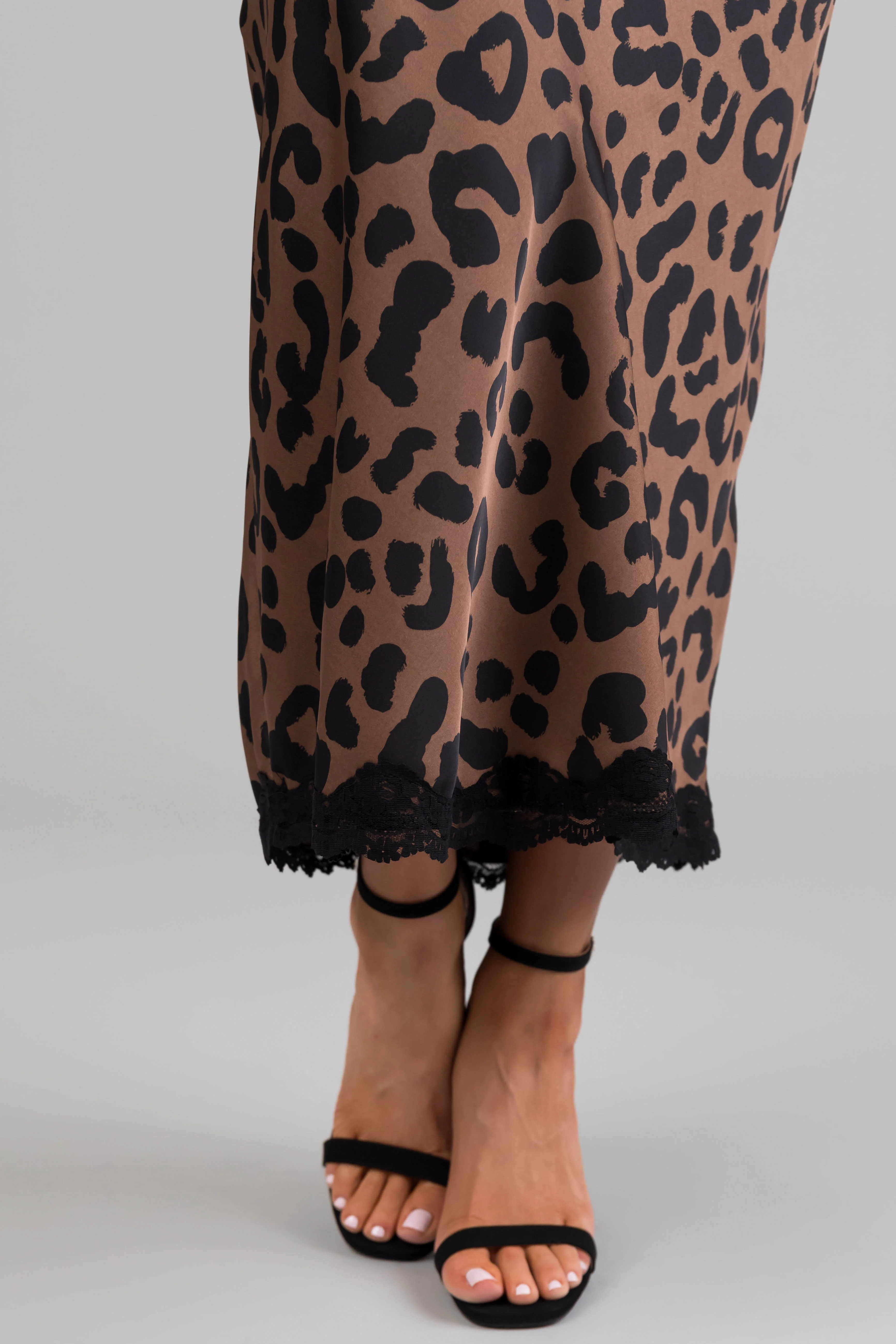 Cocoa Leopard Print Lace Trim Satin Midi Skirt