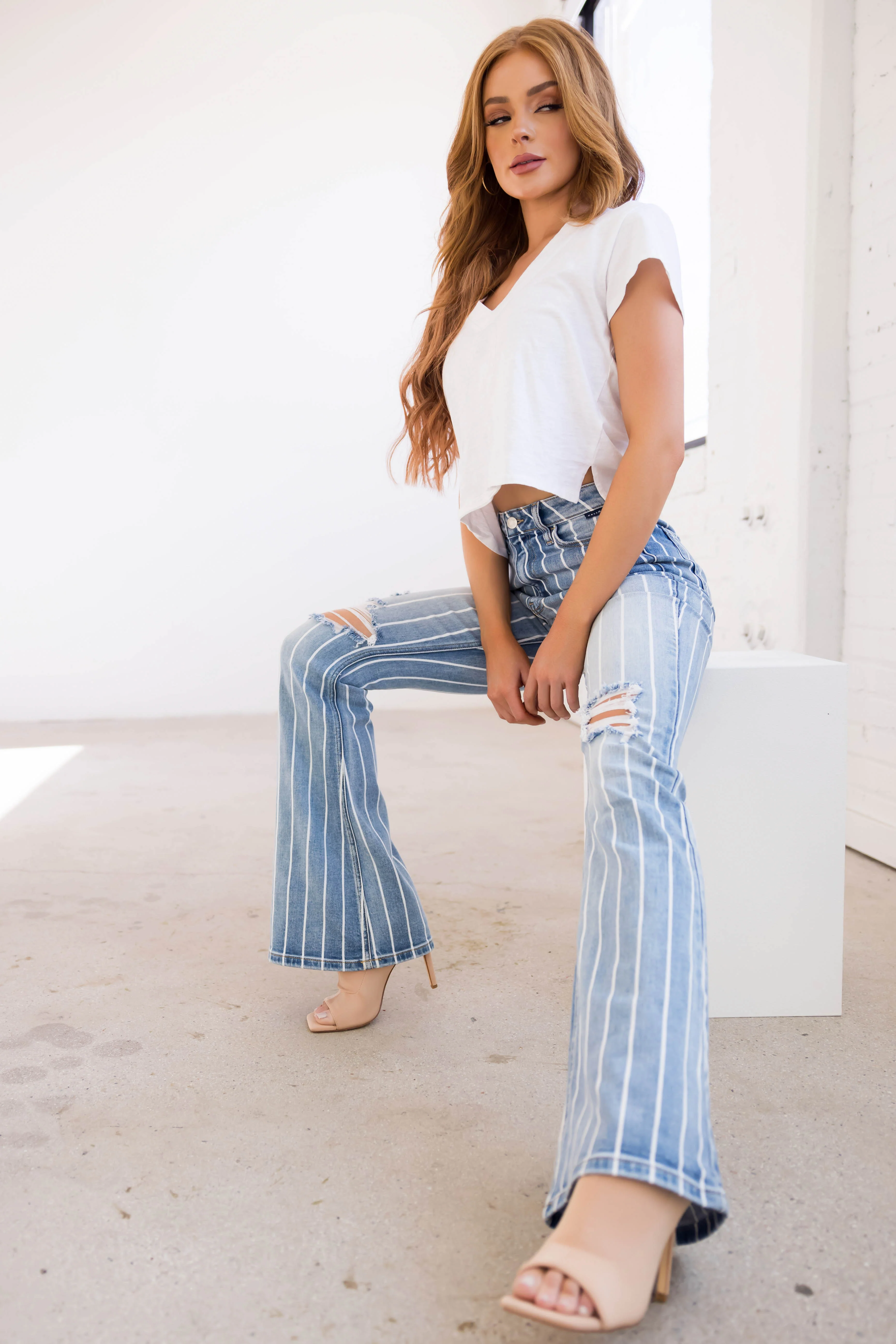 Cello High Rise Striped Super Flare Jeans