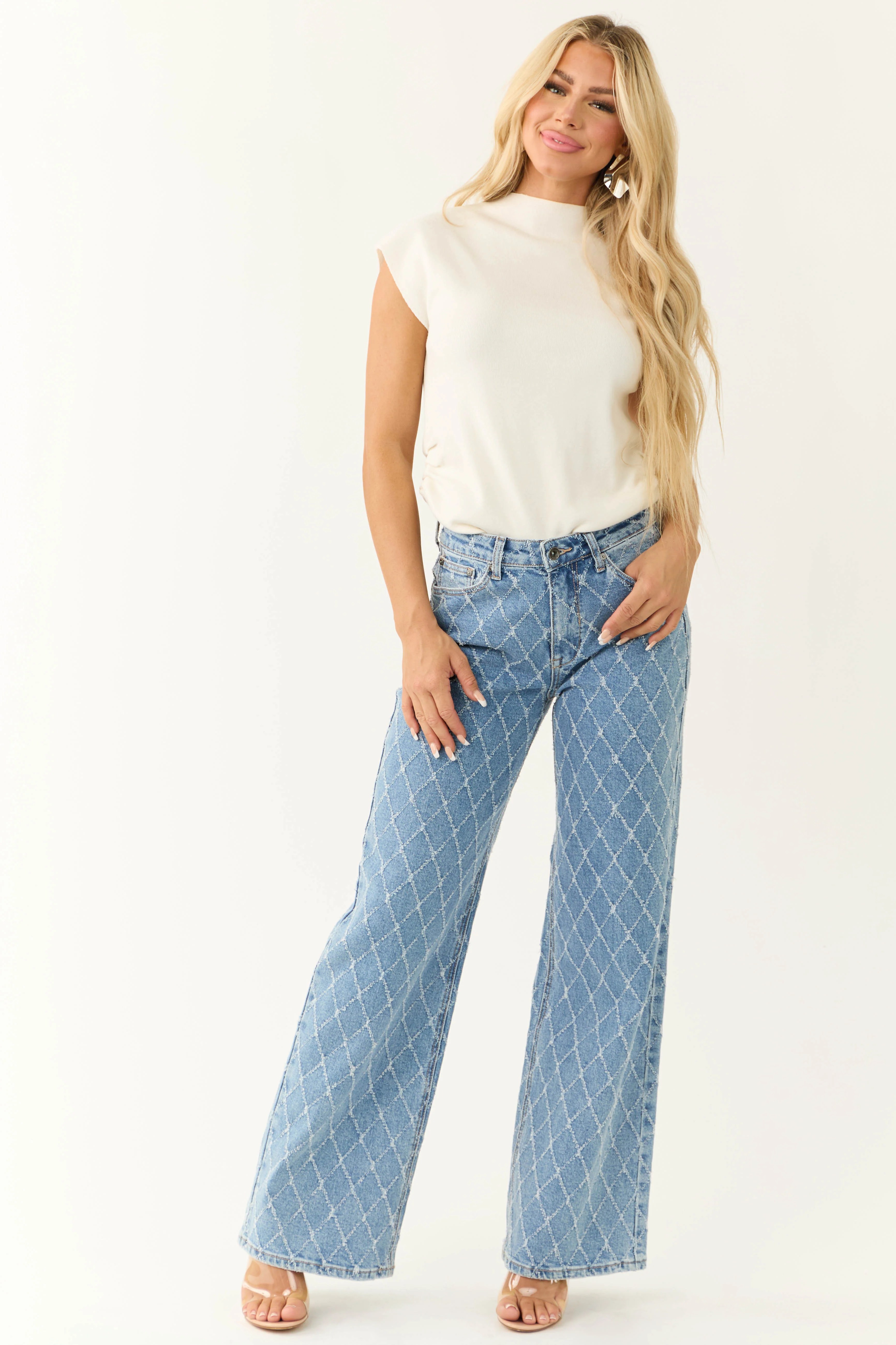 Special A Medium Wash Quilted Pattern Jeans