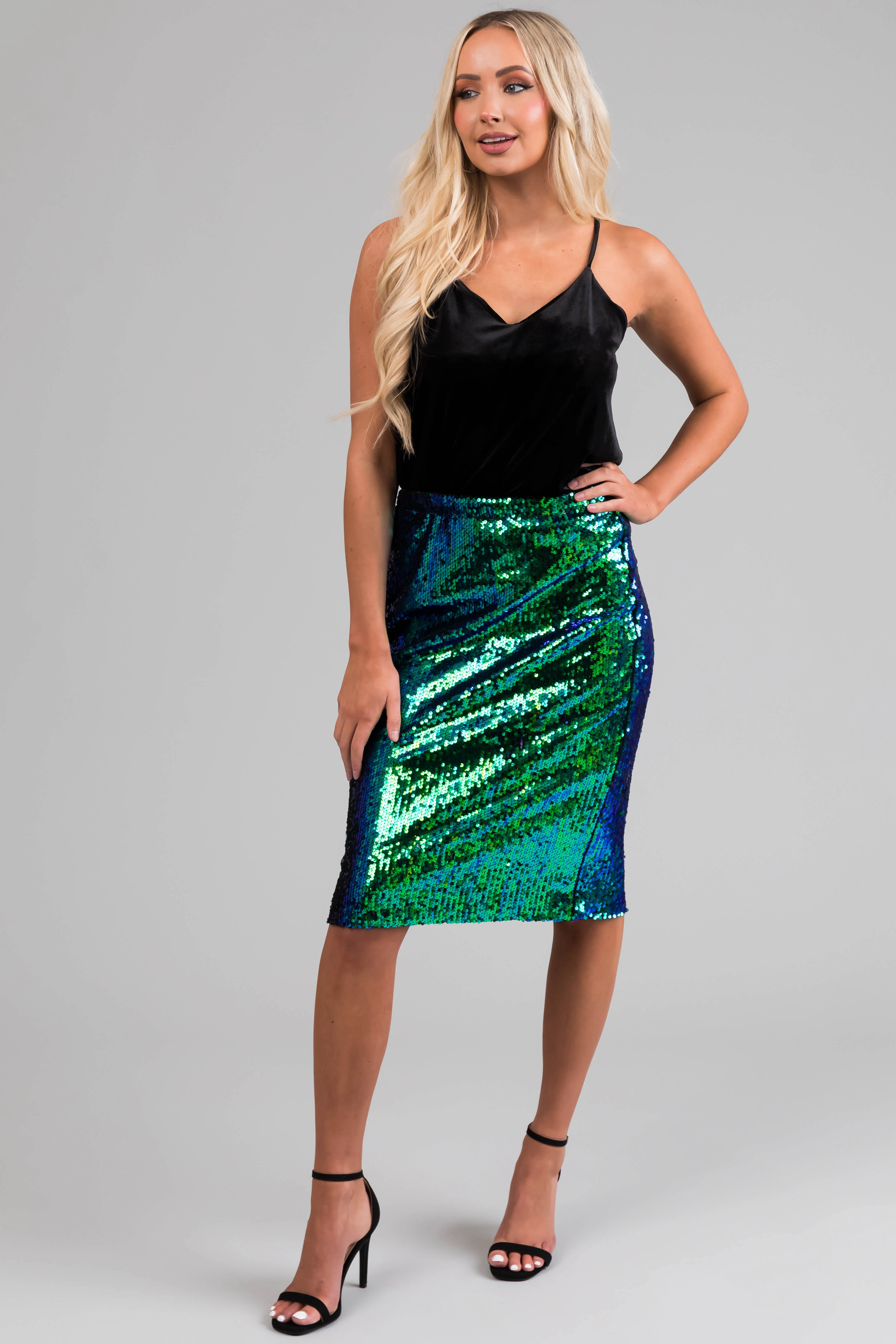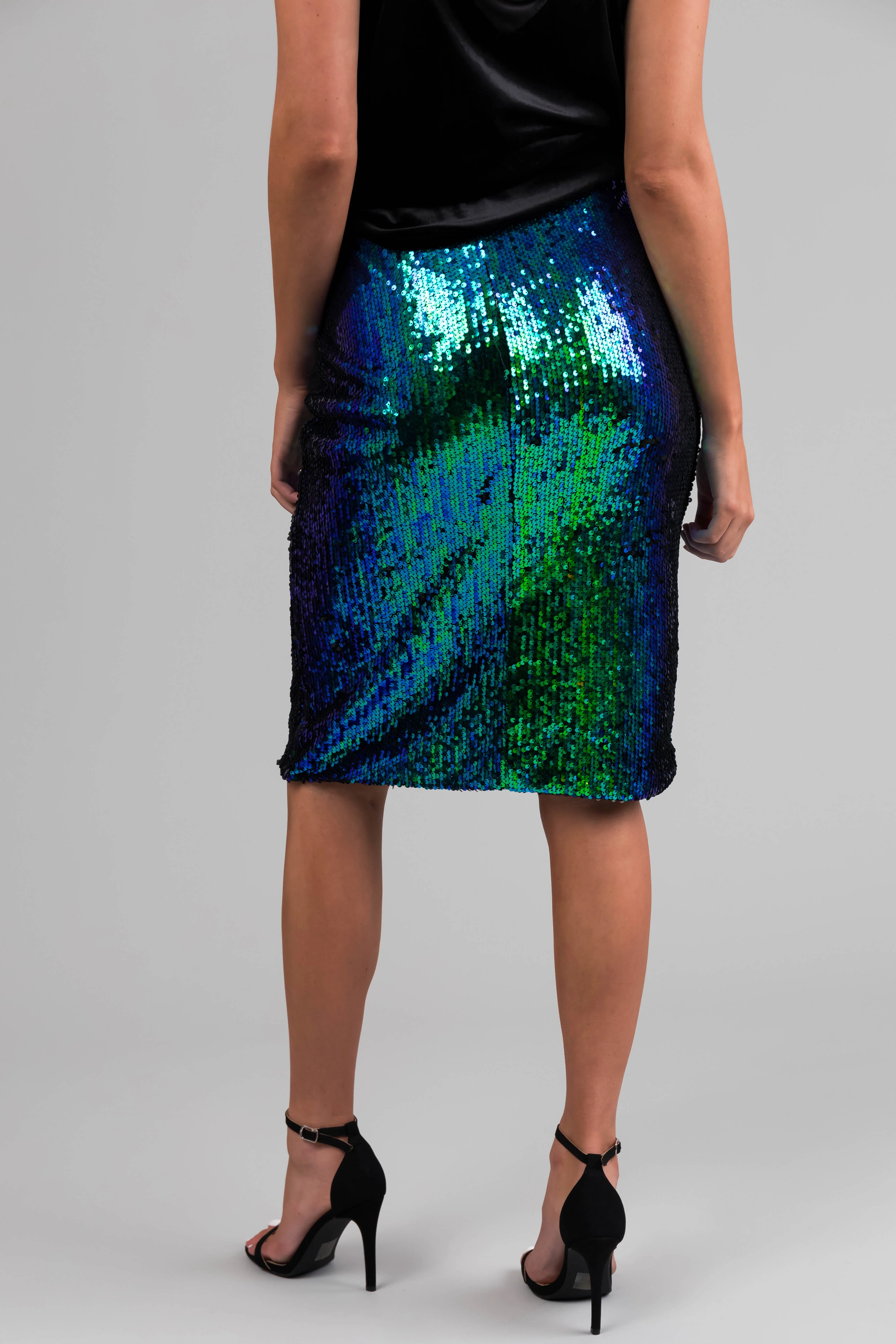 Jade and Royal Blue Sequined Elastic Skirt