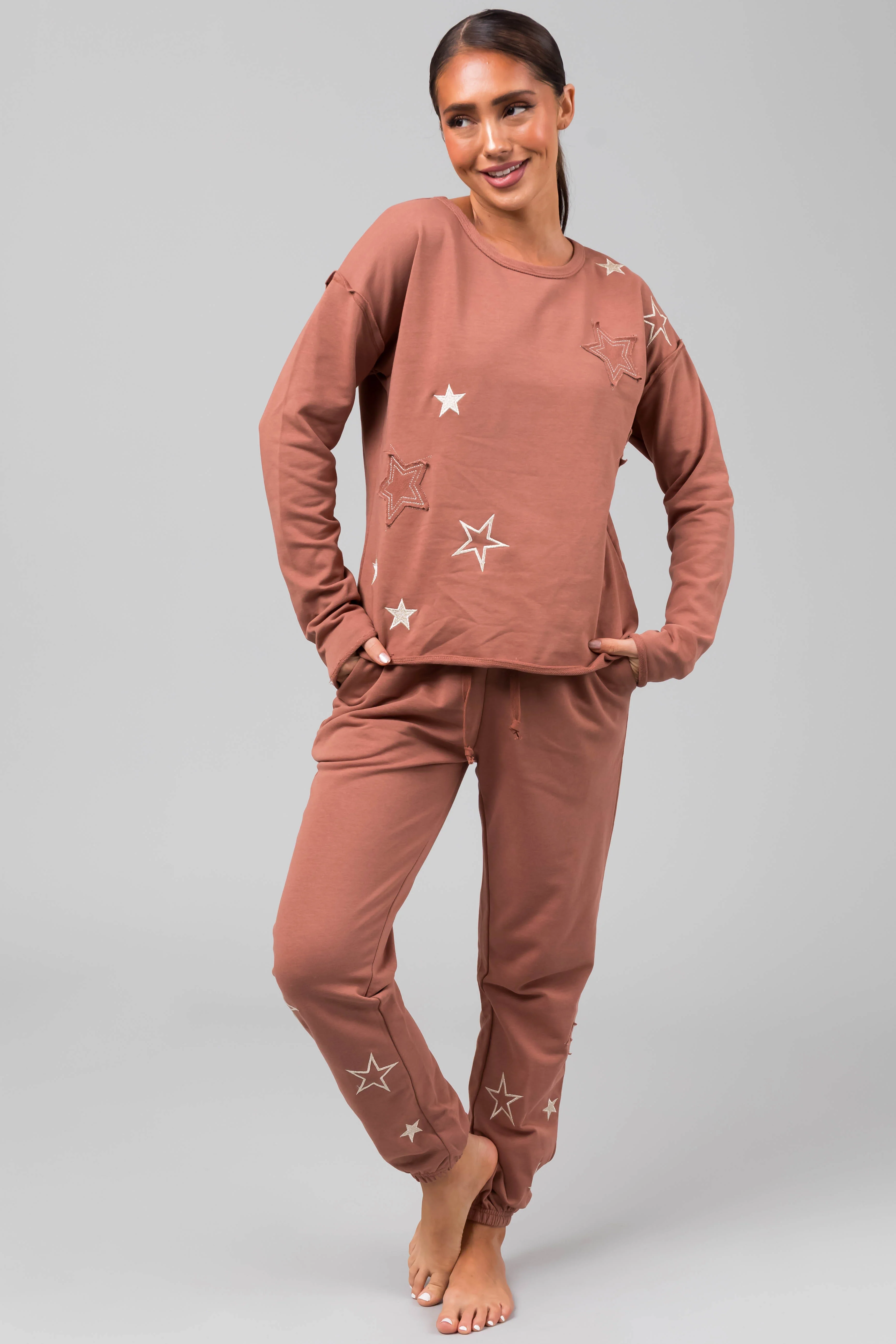 Rose Taupe Star Pattern Jogger and Top Set