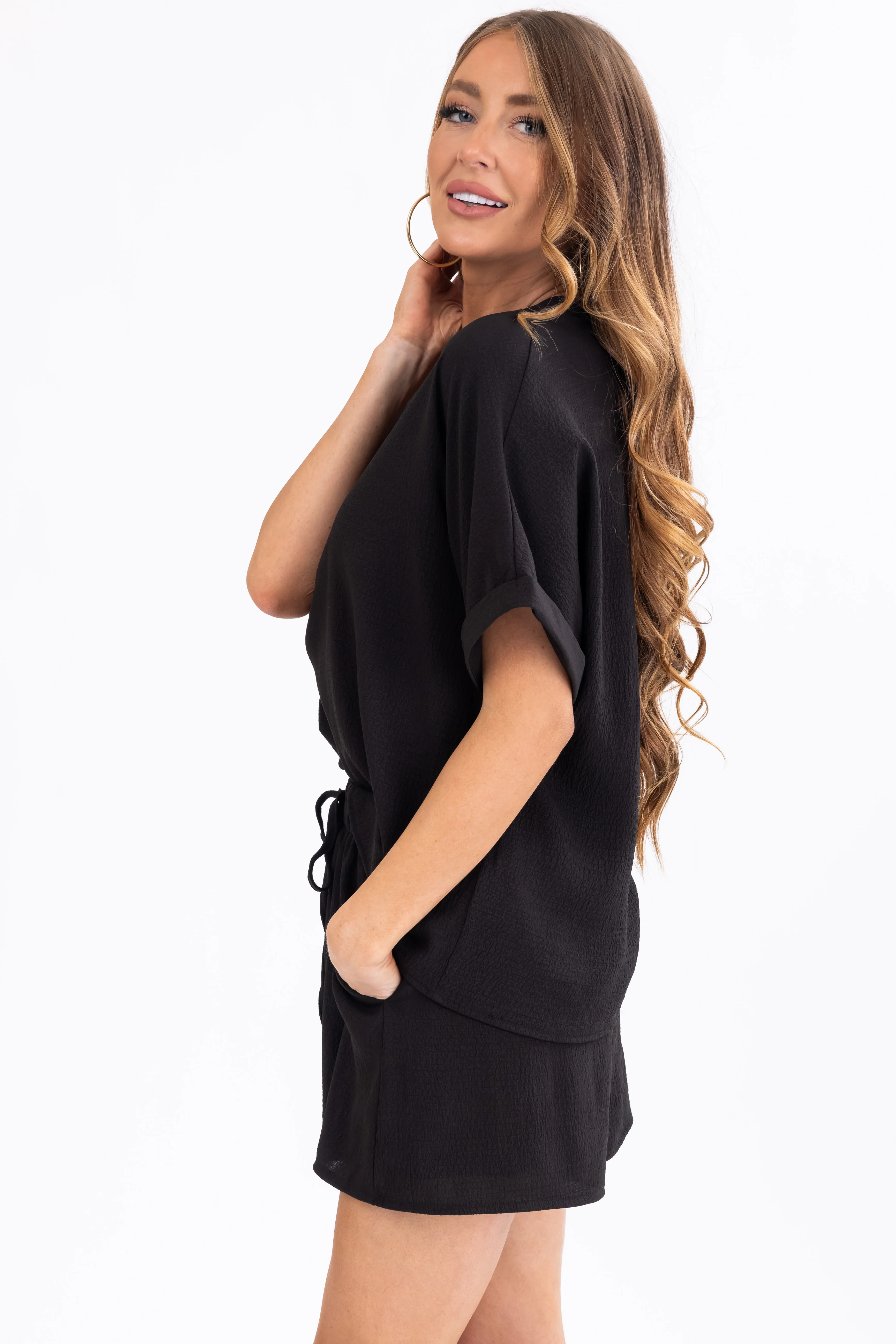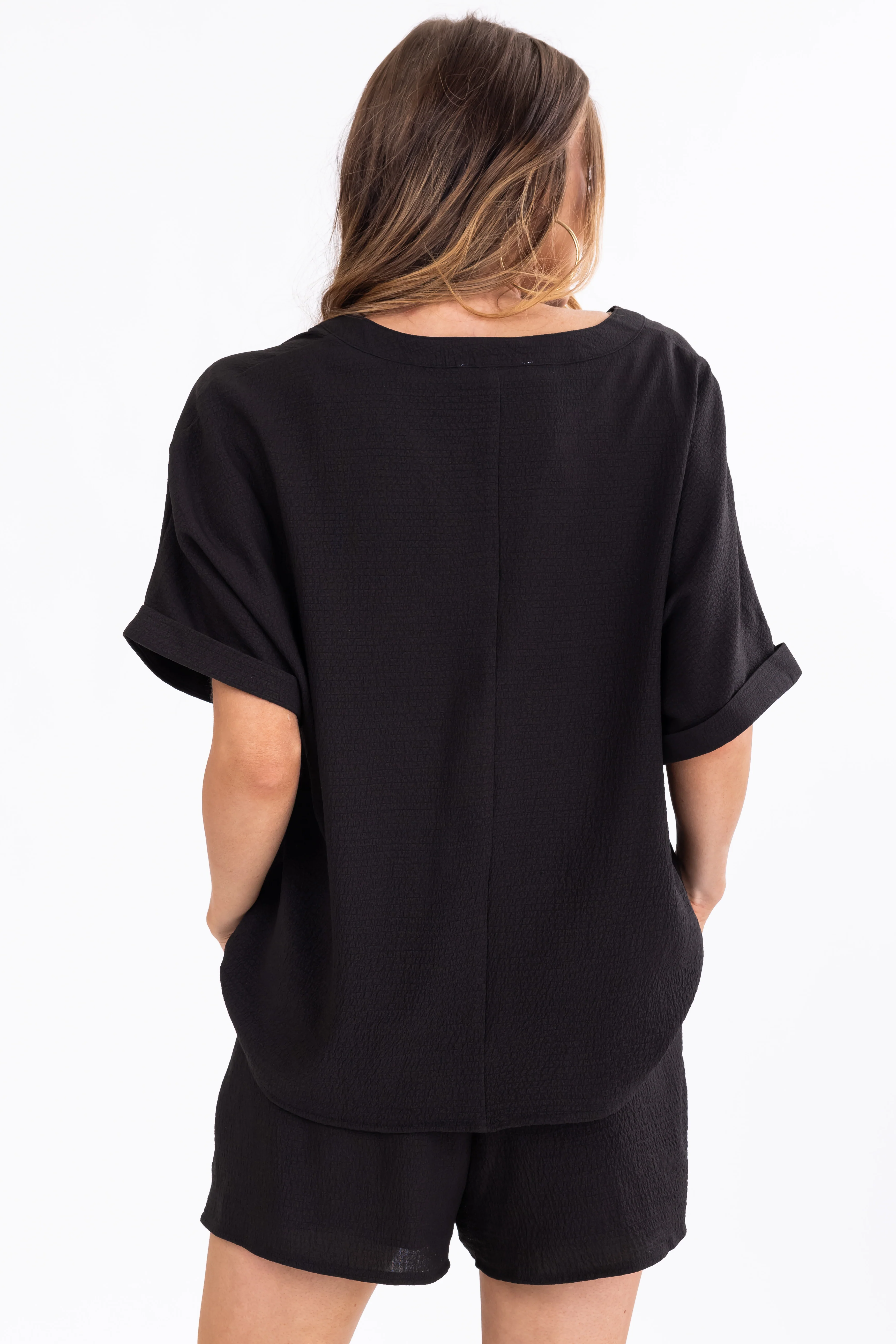 Black Half Sleeve Woven Top and Shorts Set