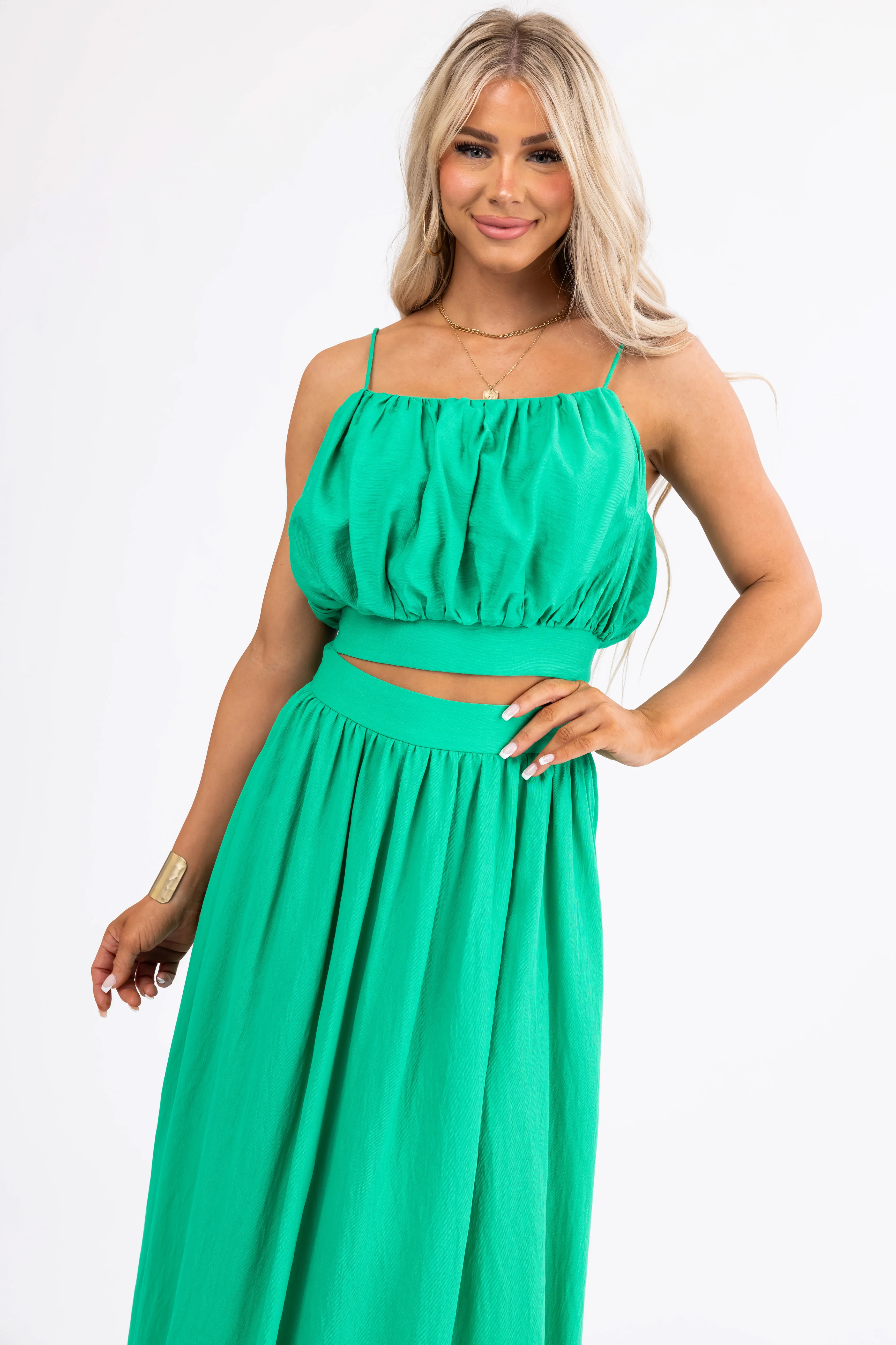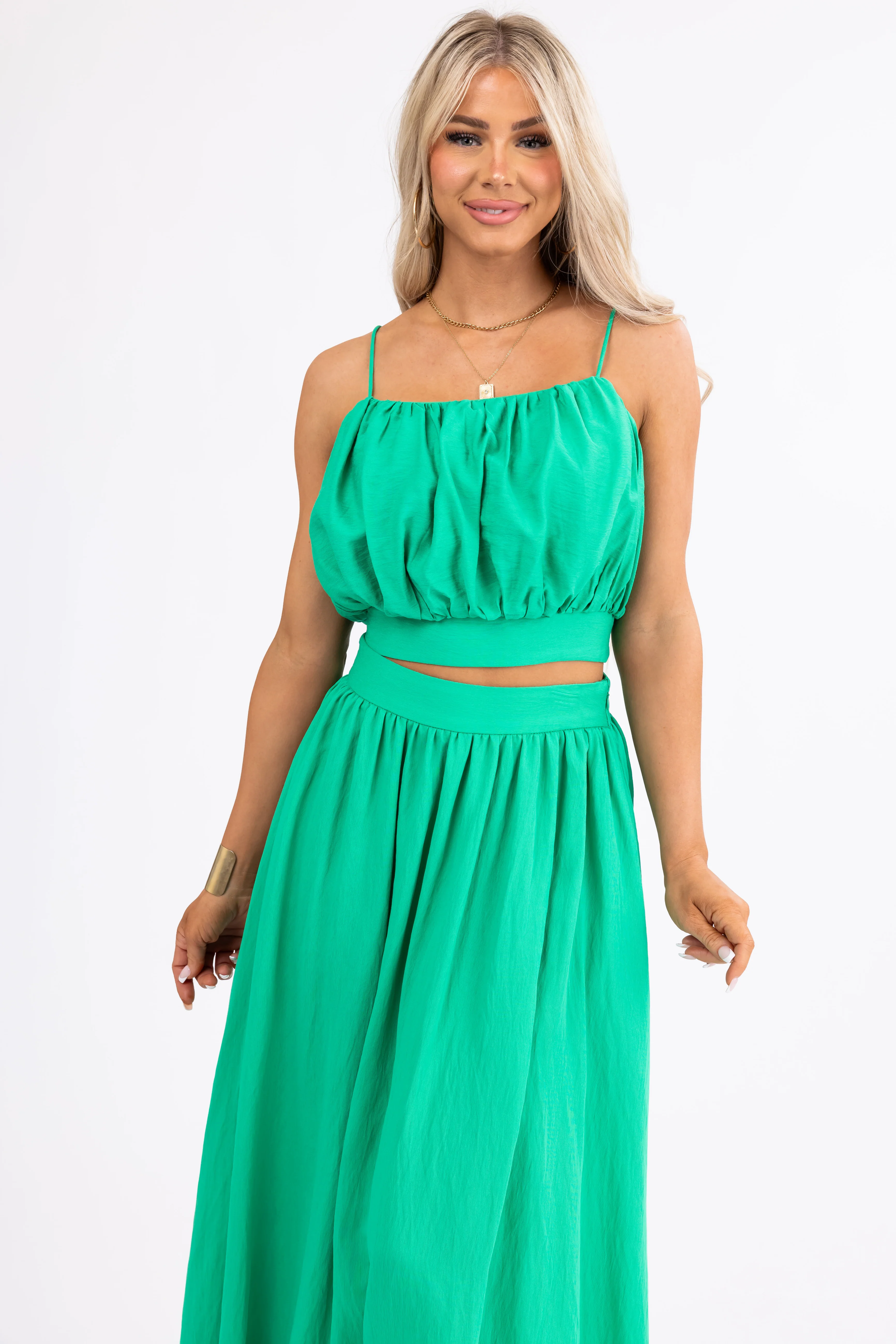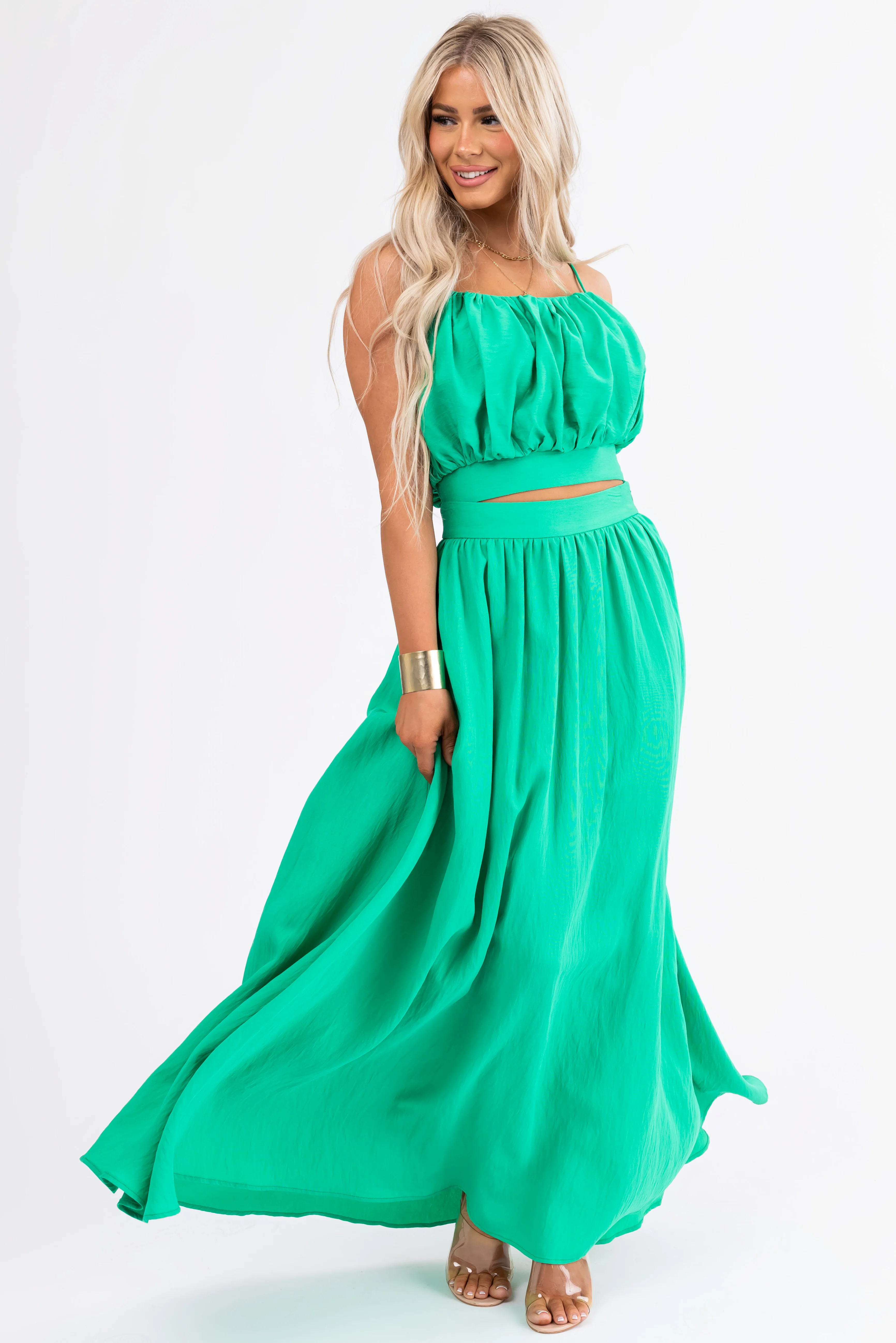 Flying Tomato Kelly Green Crop Top and Maxi Skirt