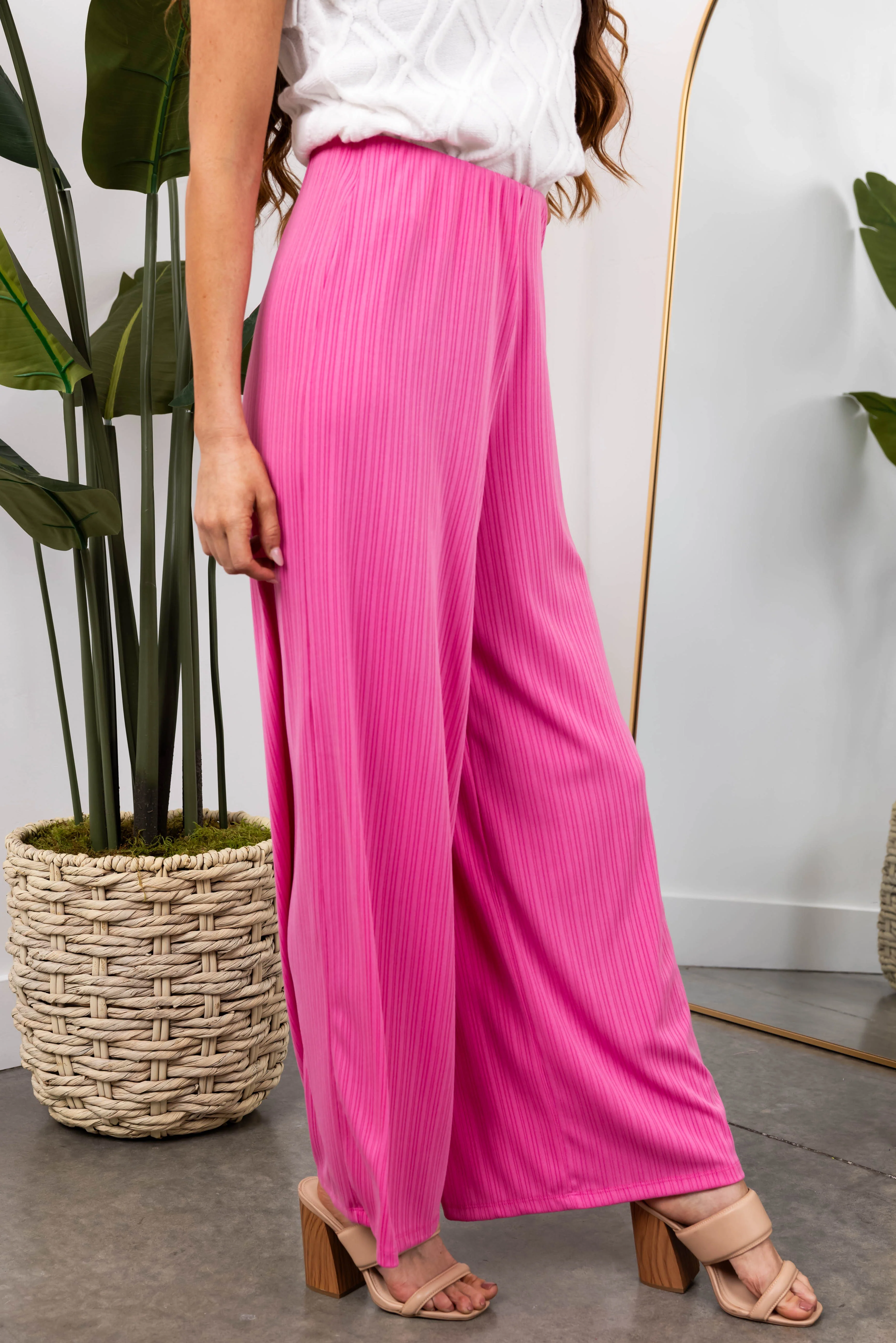 She+Sky Bubblegum Ribbed Knit Wide Leg Pants