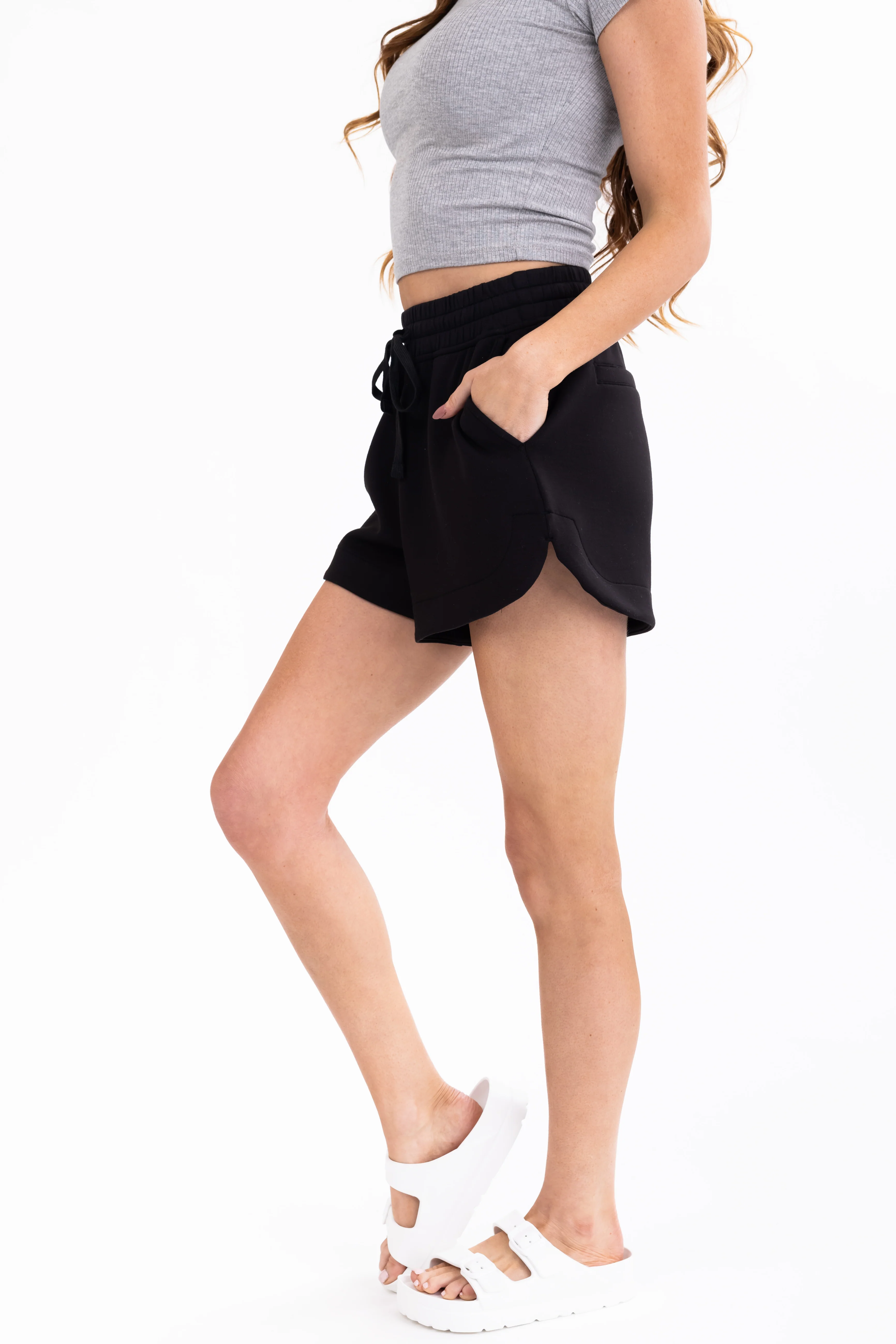 Black Drawstring Knit Shorts