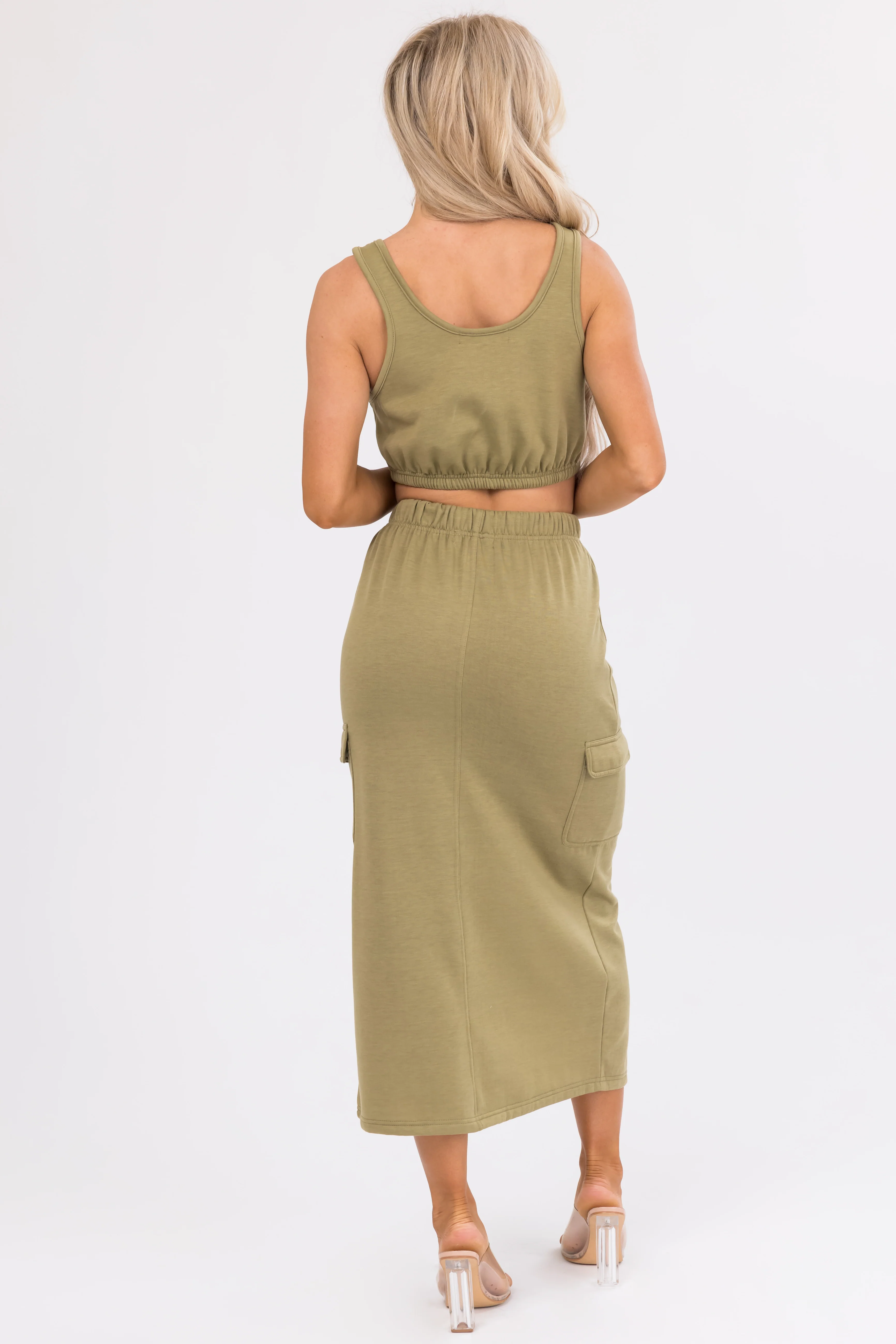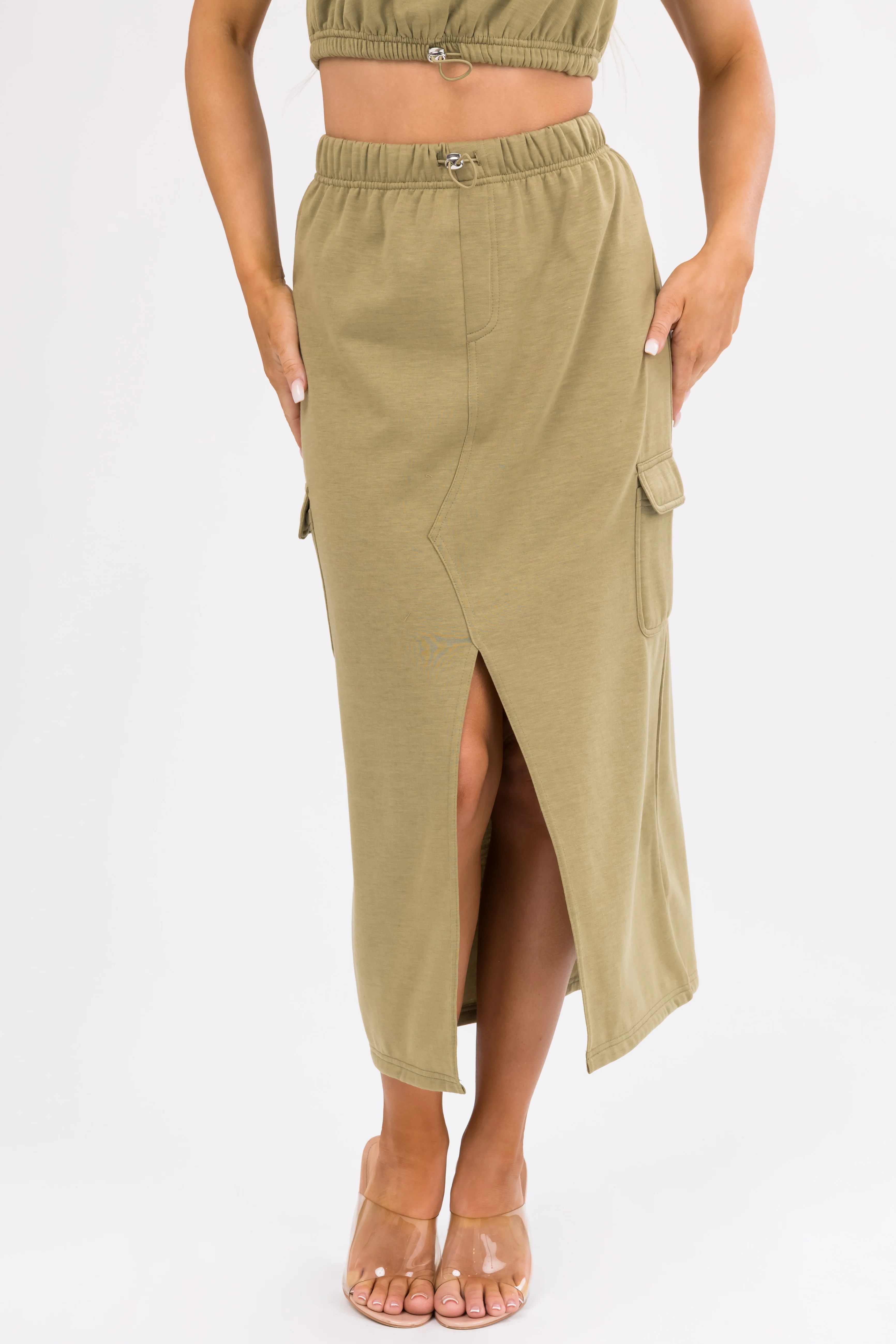 Olive Crop Top and Cargo Skirt Set