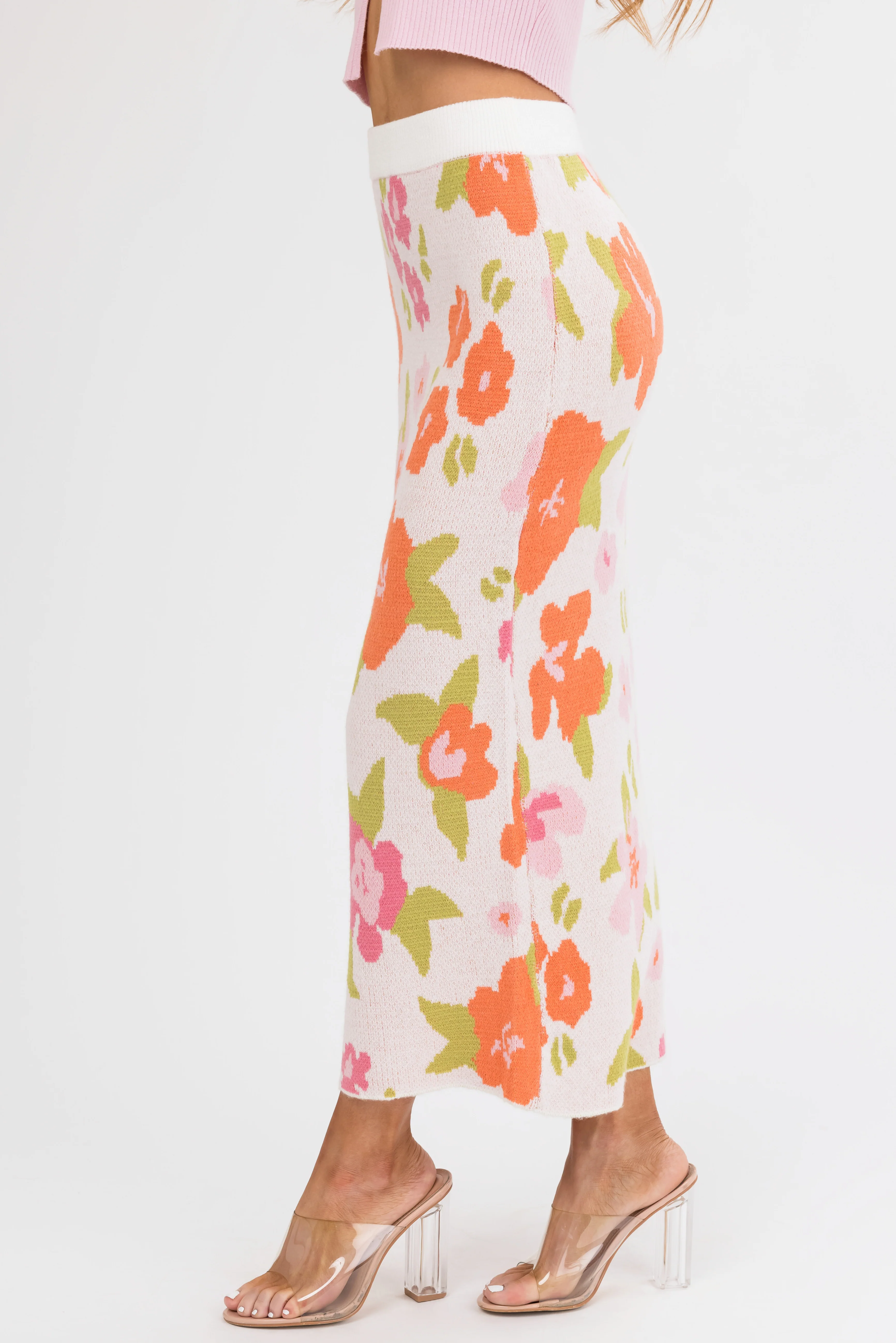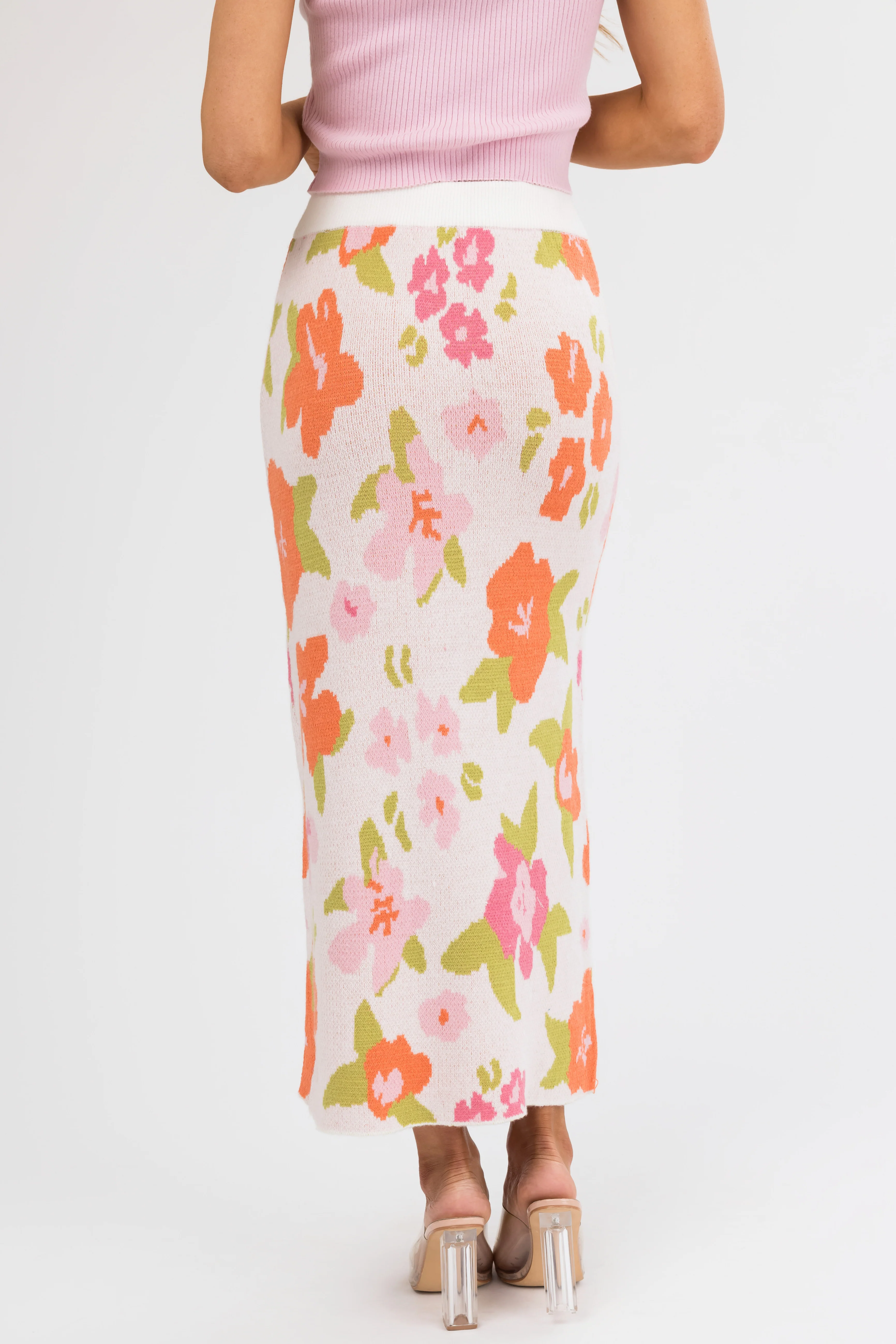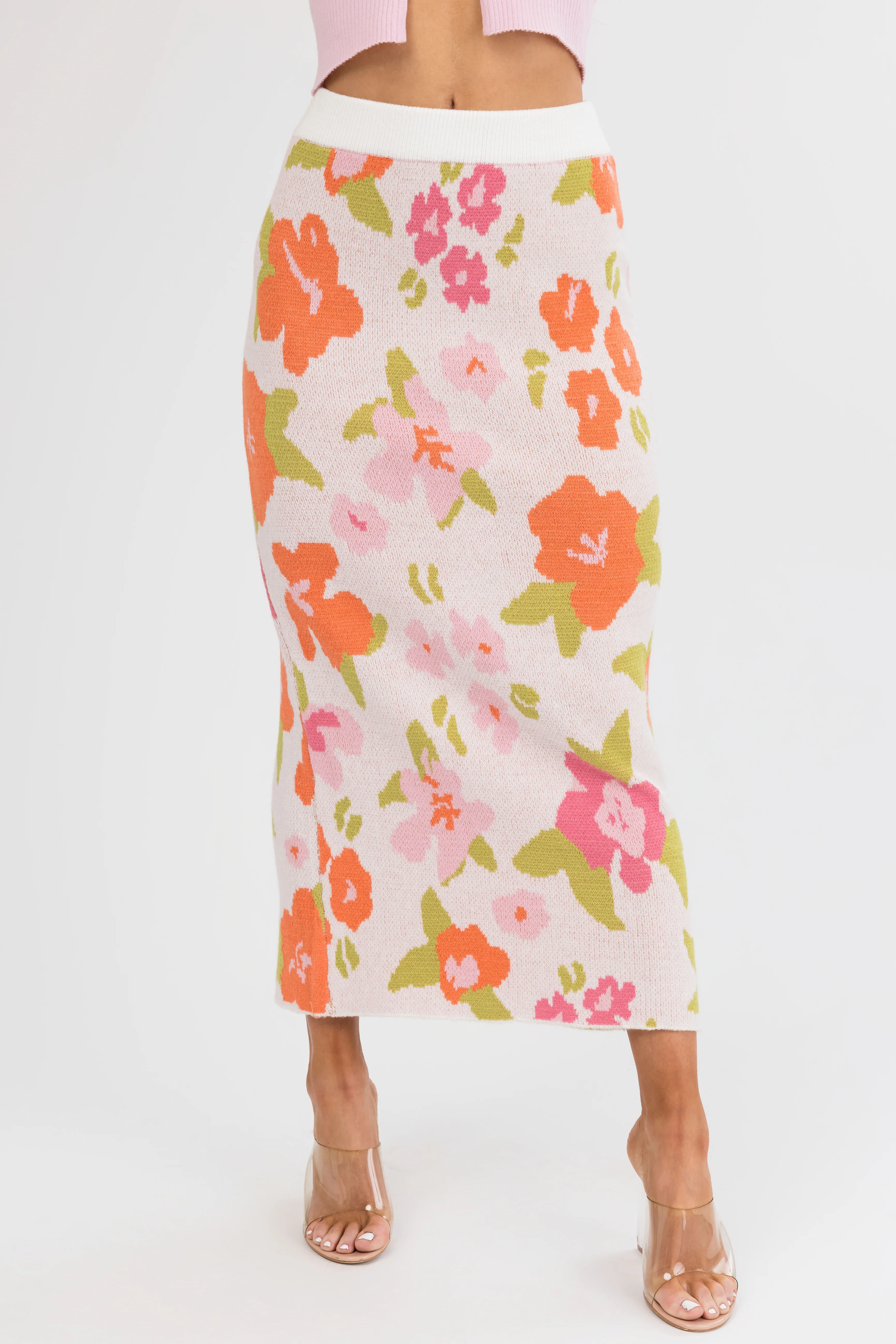 Dusty Blush Floral Print Knit Midi Skirt