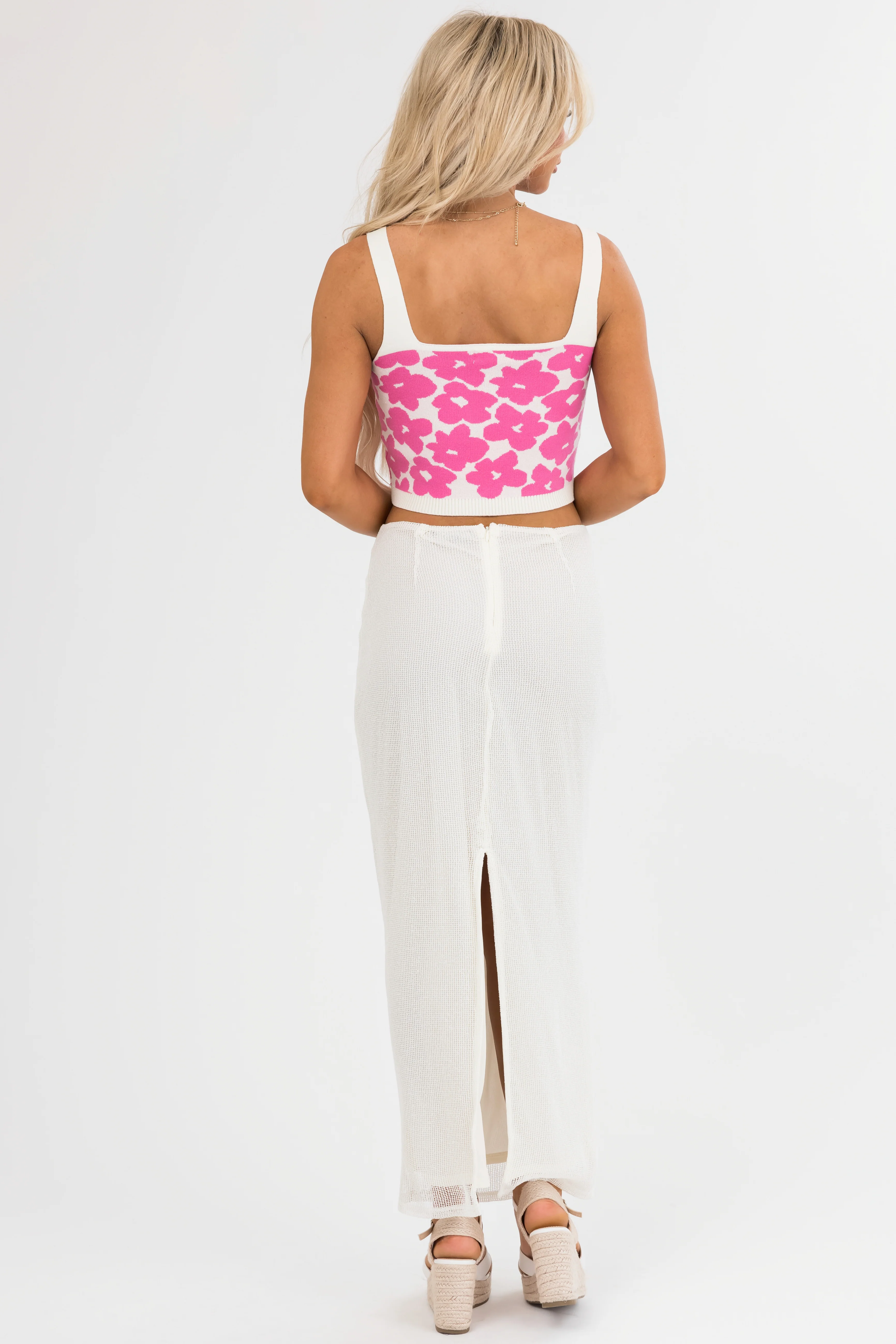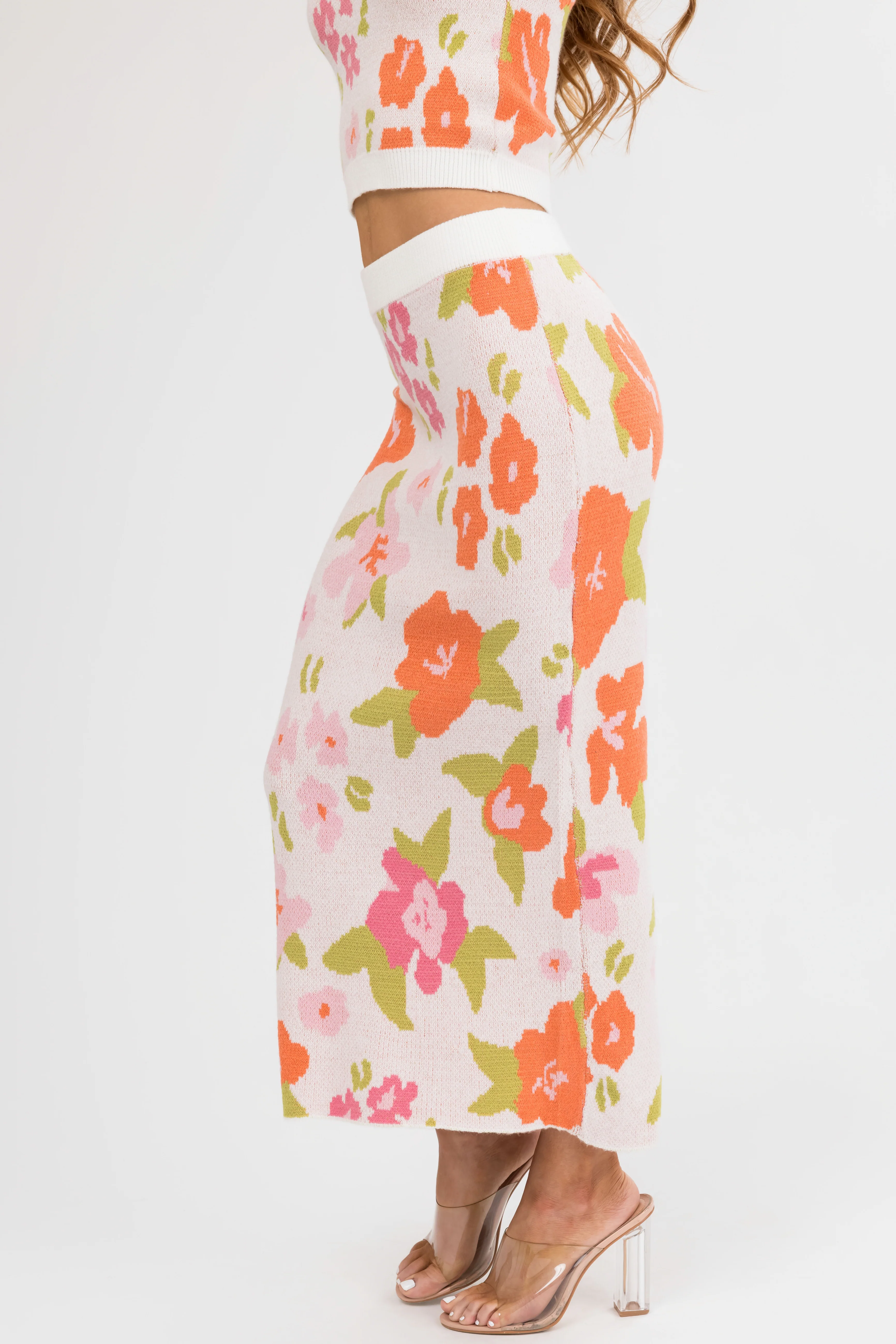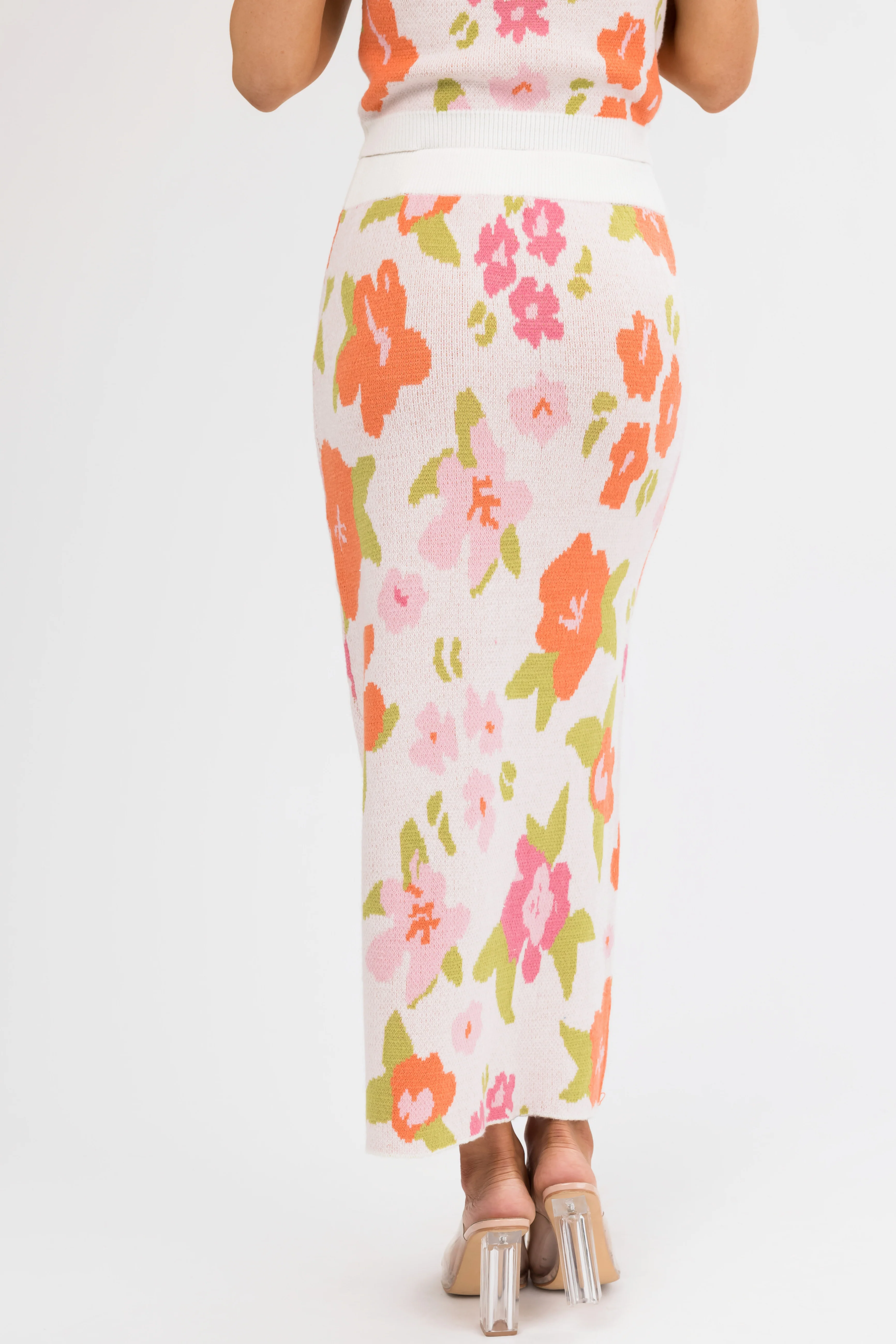 Dusty Blush Floral Print Knit Midi Skirt