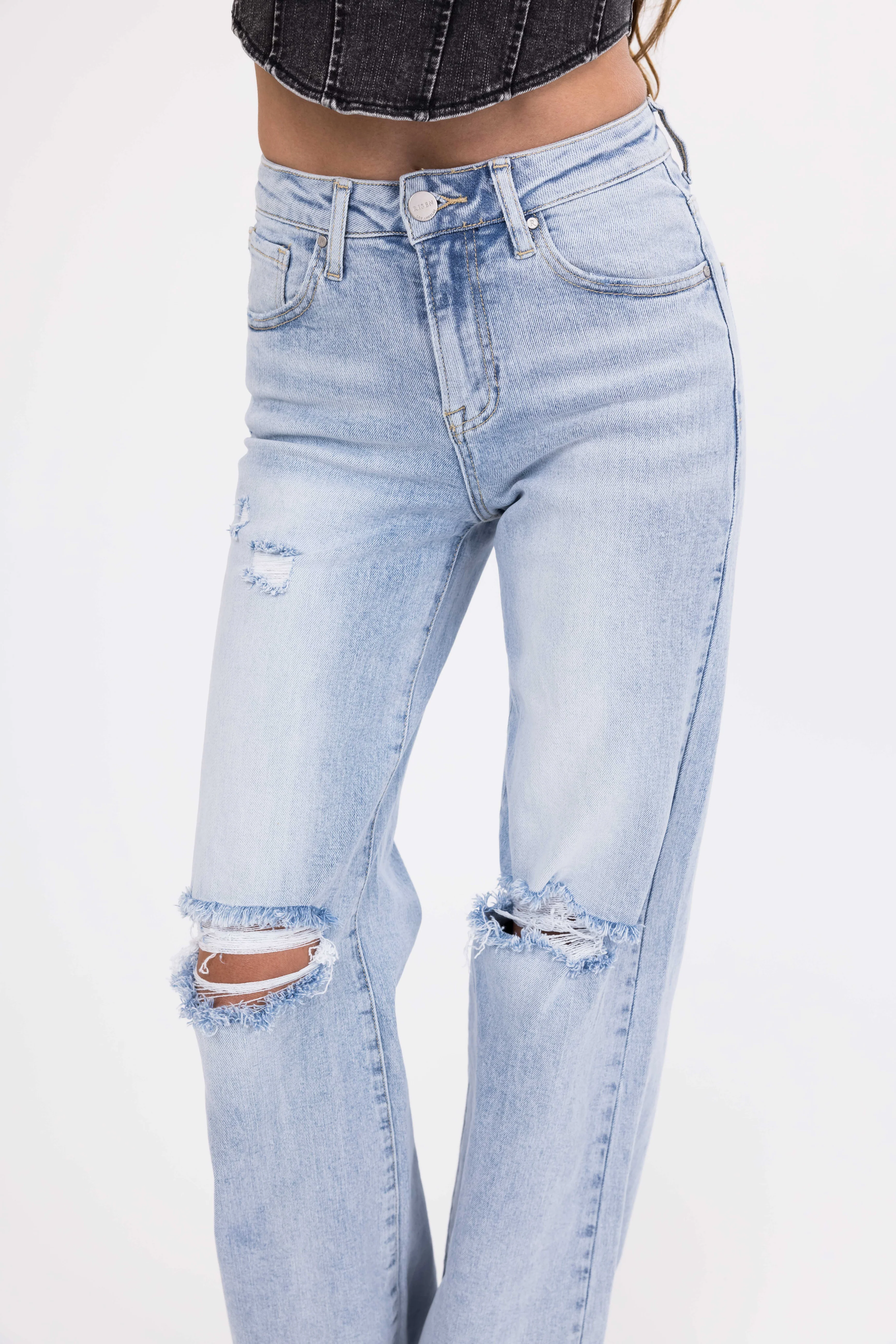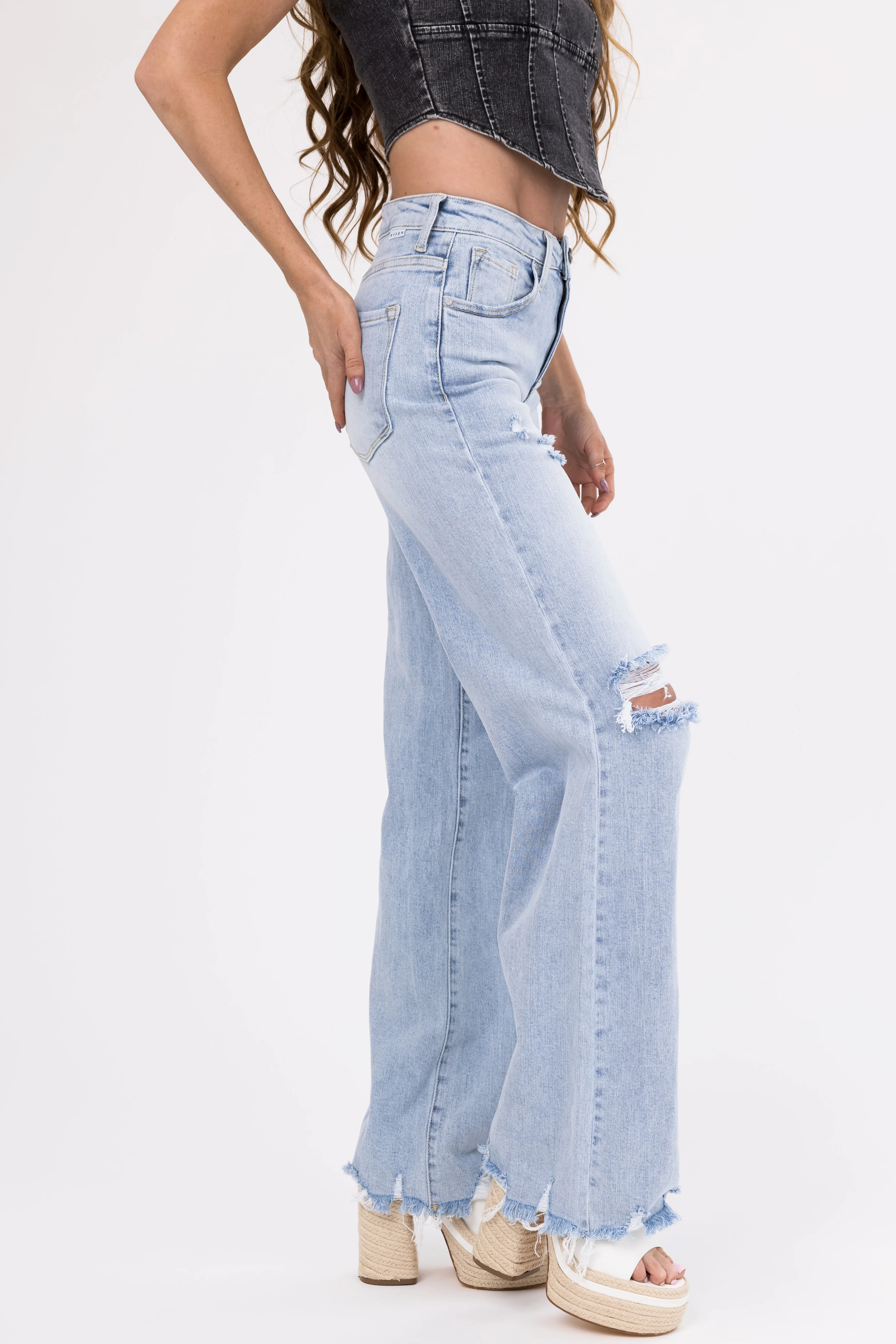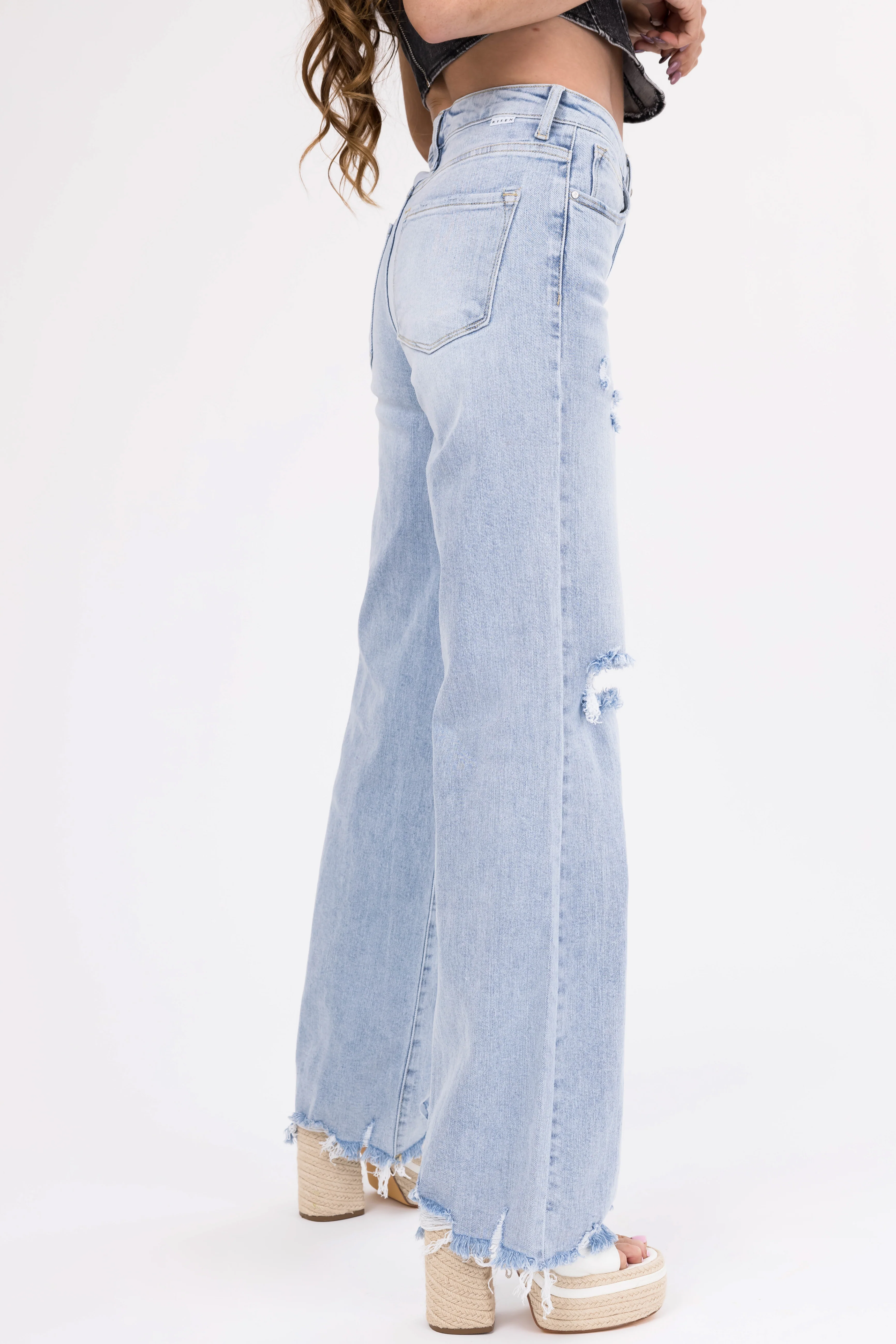 Risen Light Wash Wide Leg Ripped Jeans