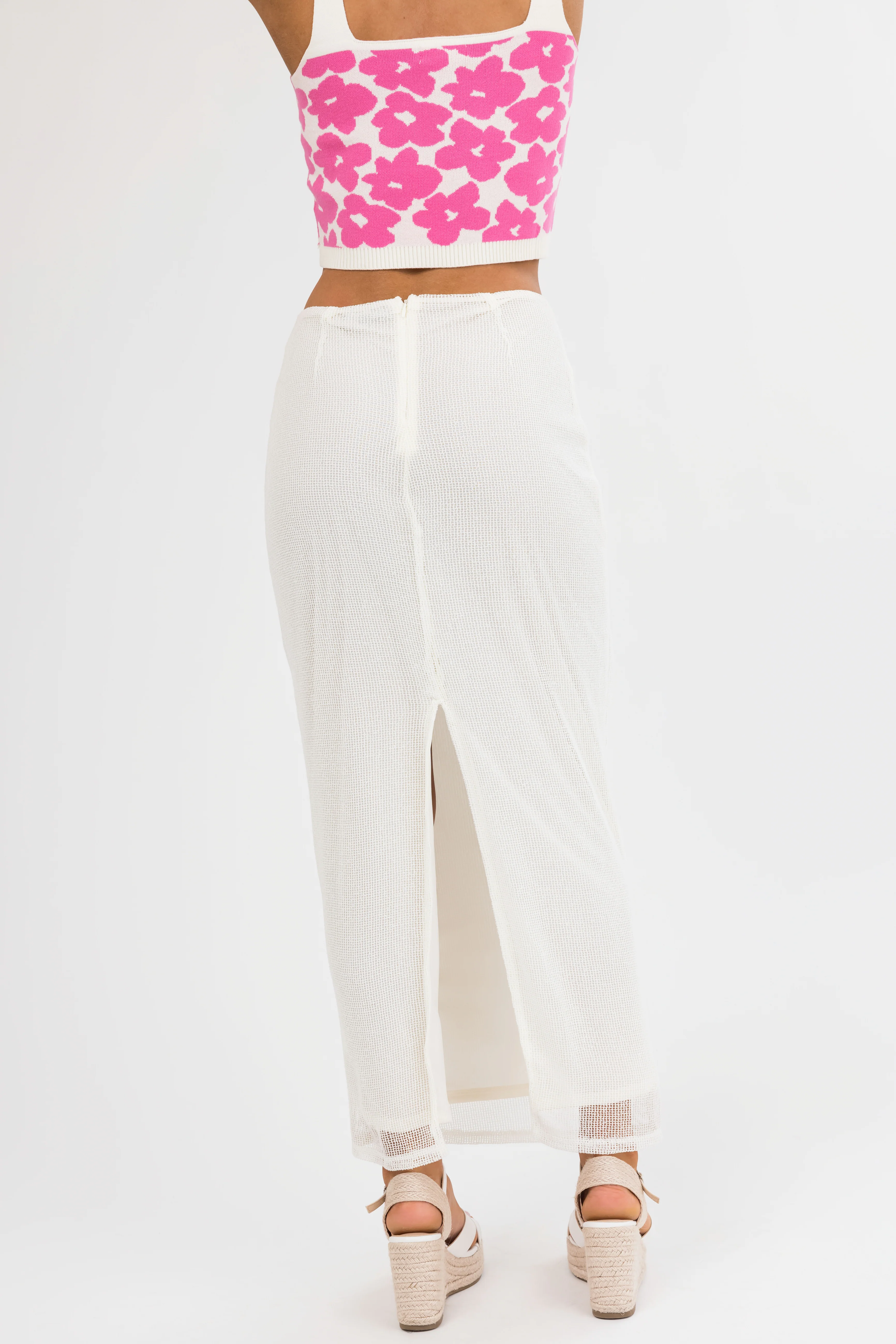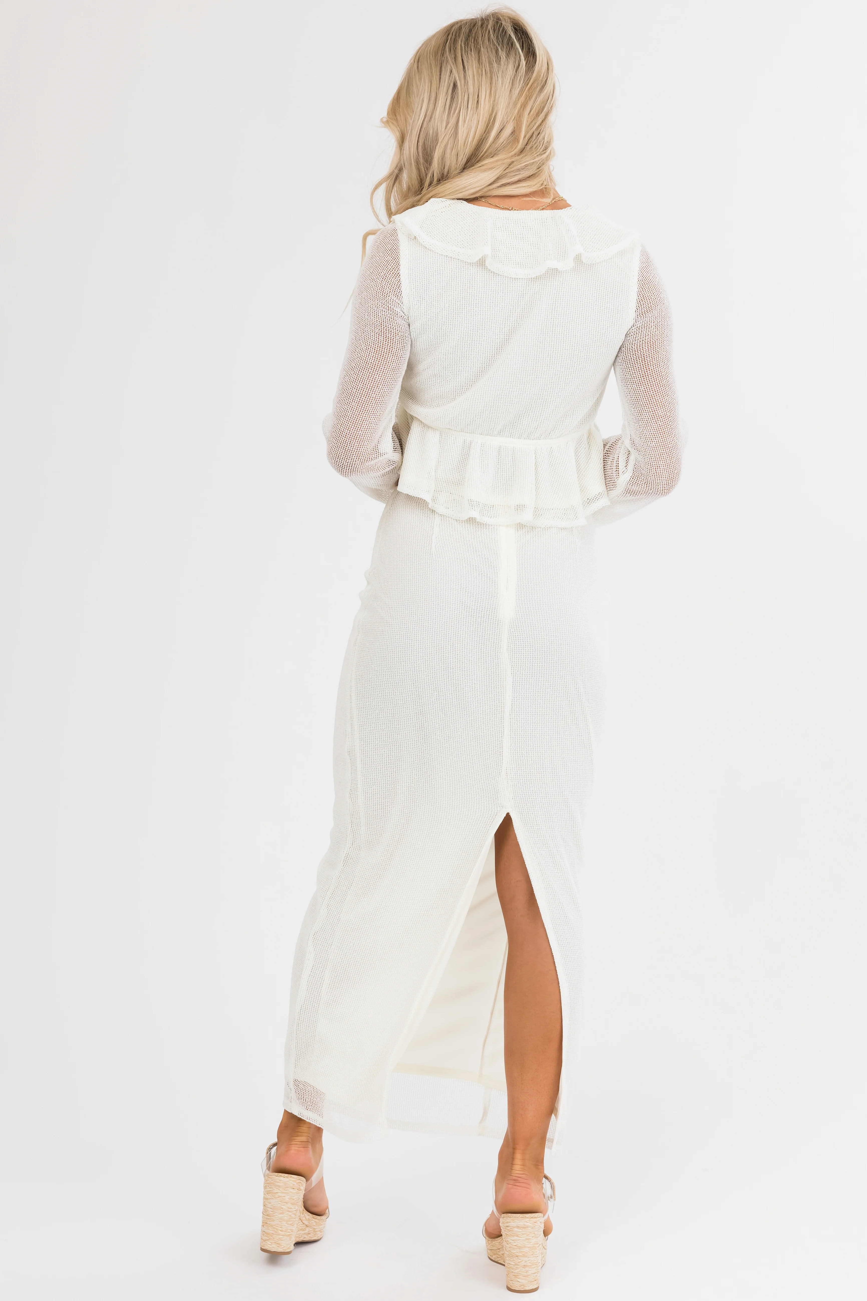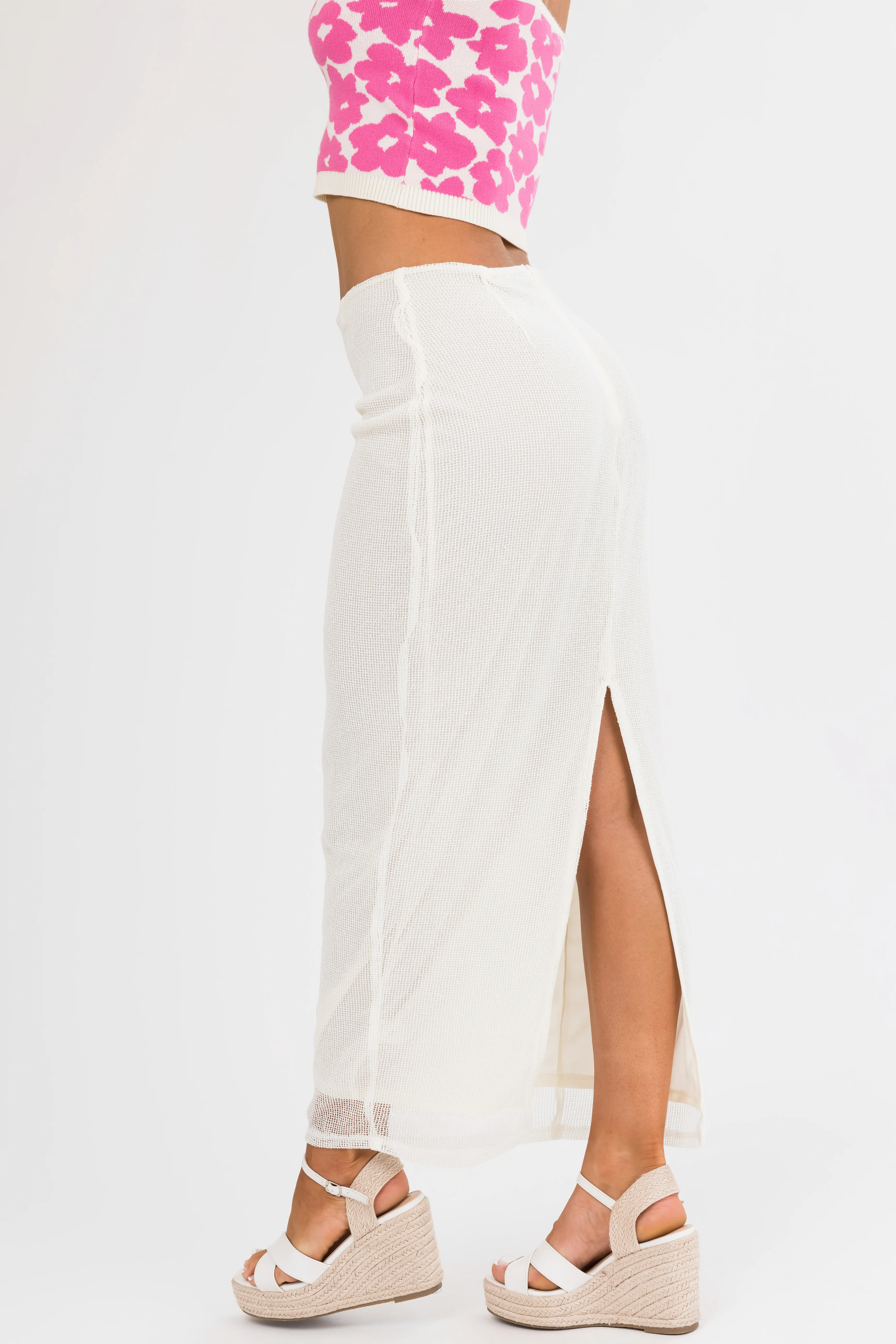 Cream Mesh Maxi Skirt with Back Slit