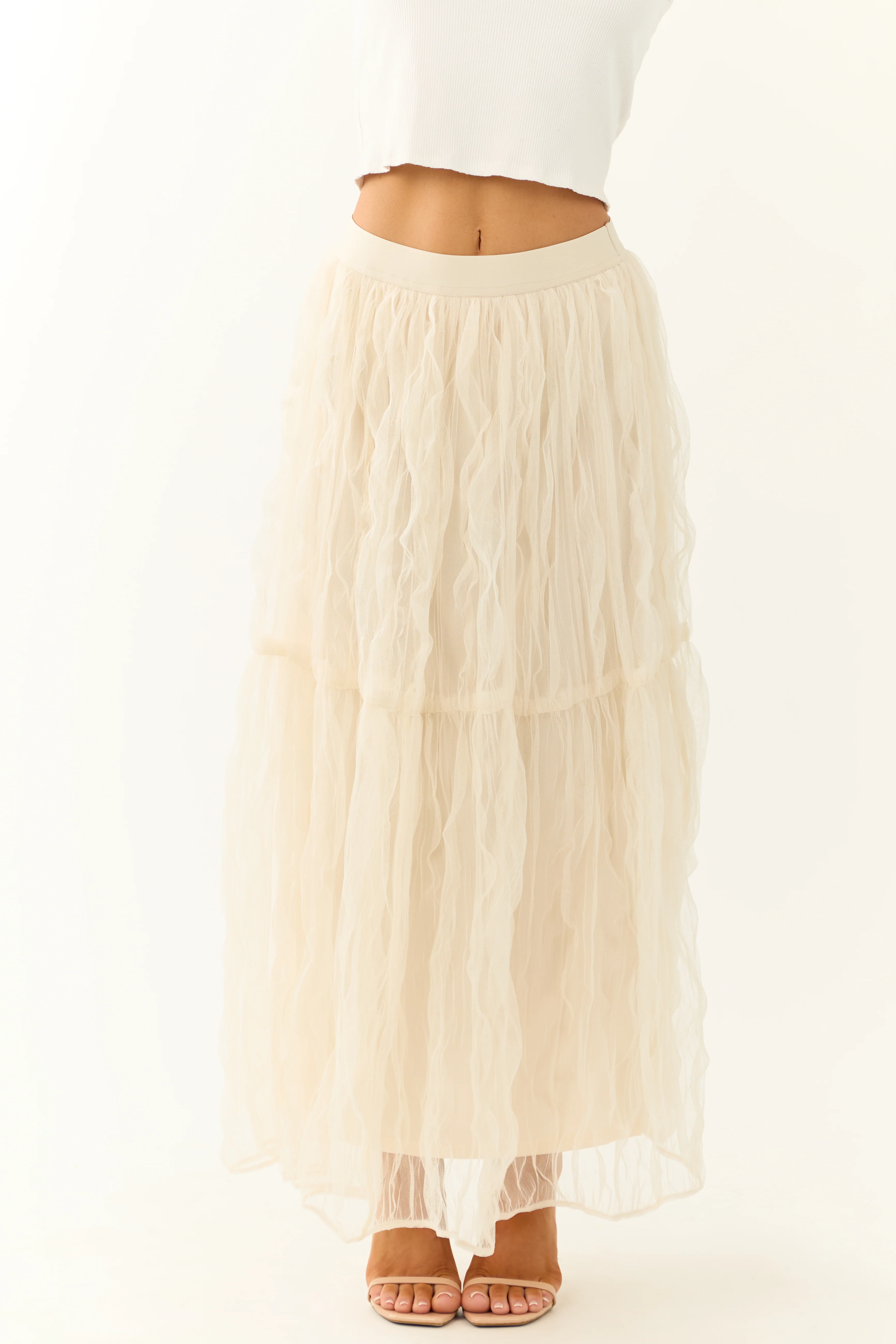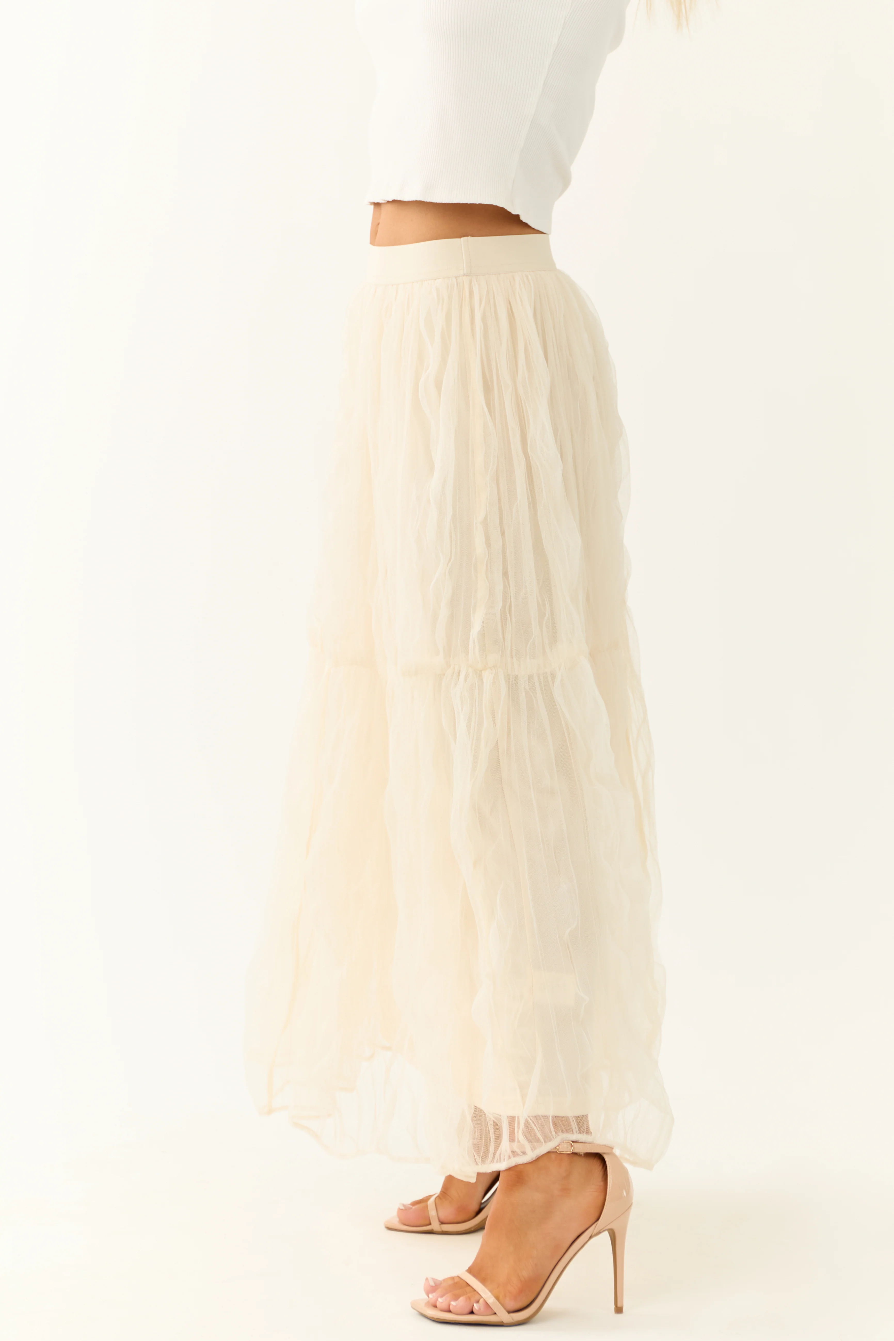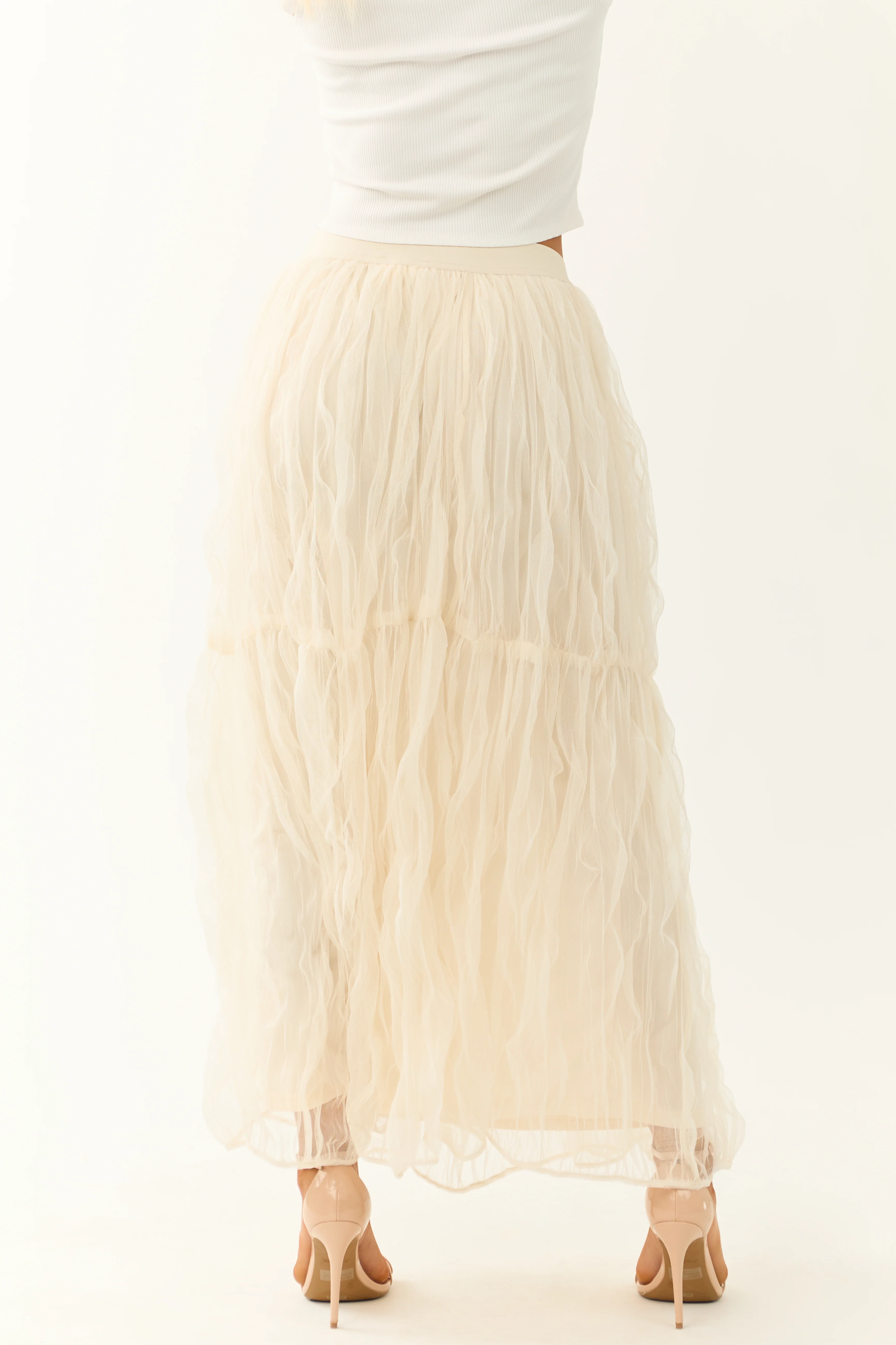 Cream Tulle Plisse Maxi Skirt