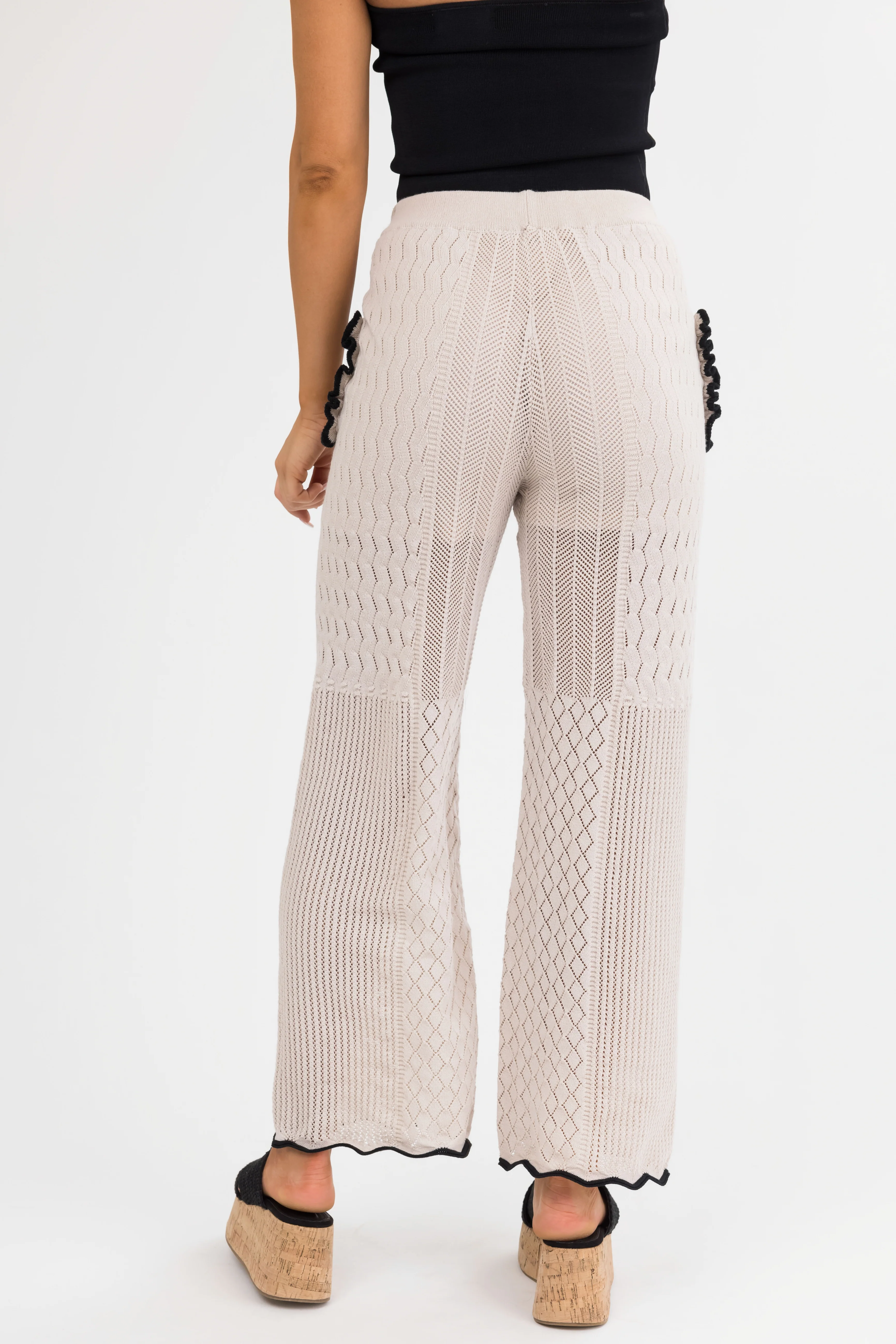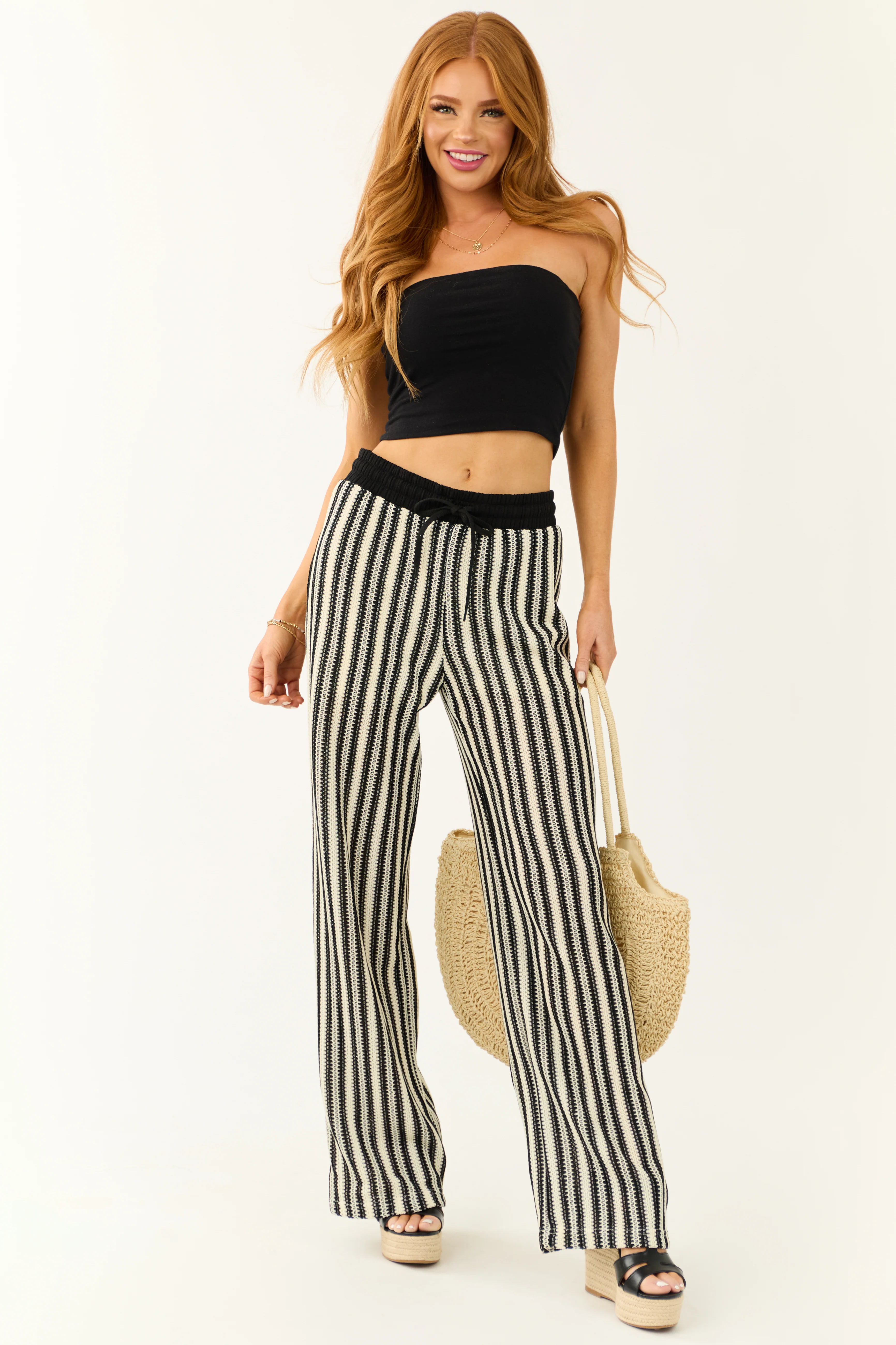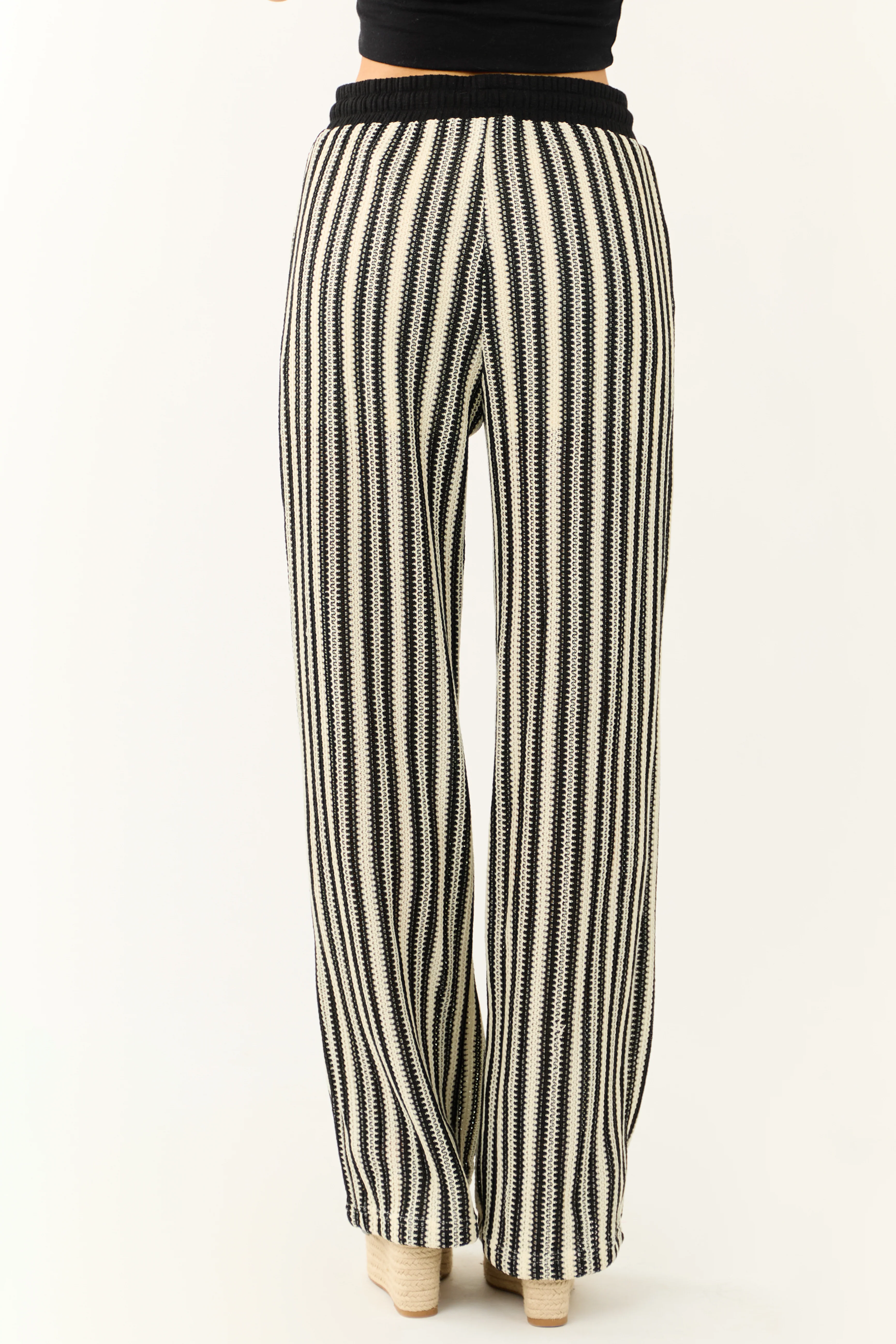Black and Cream Striped Knit Wide Leg Pants