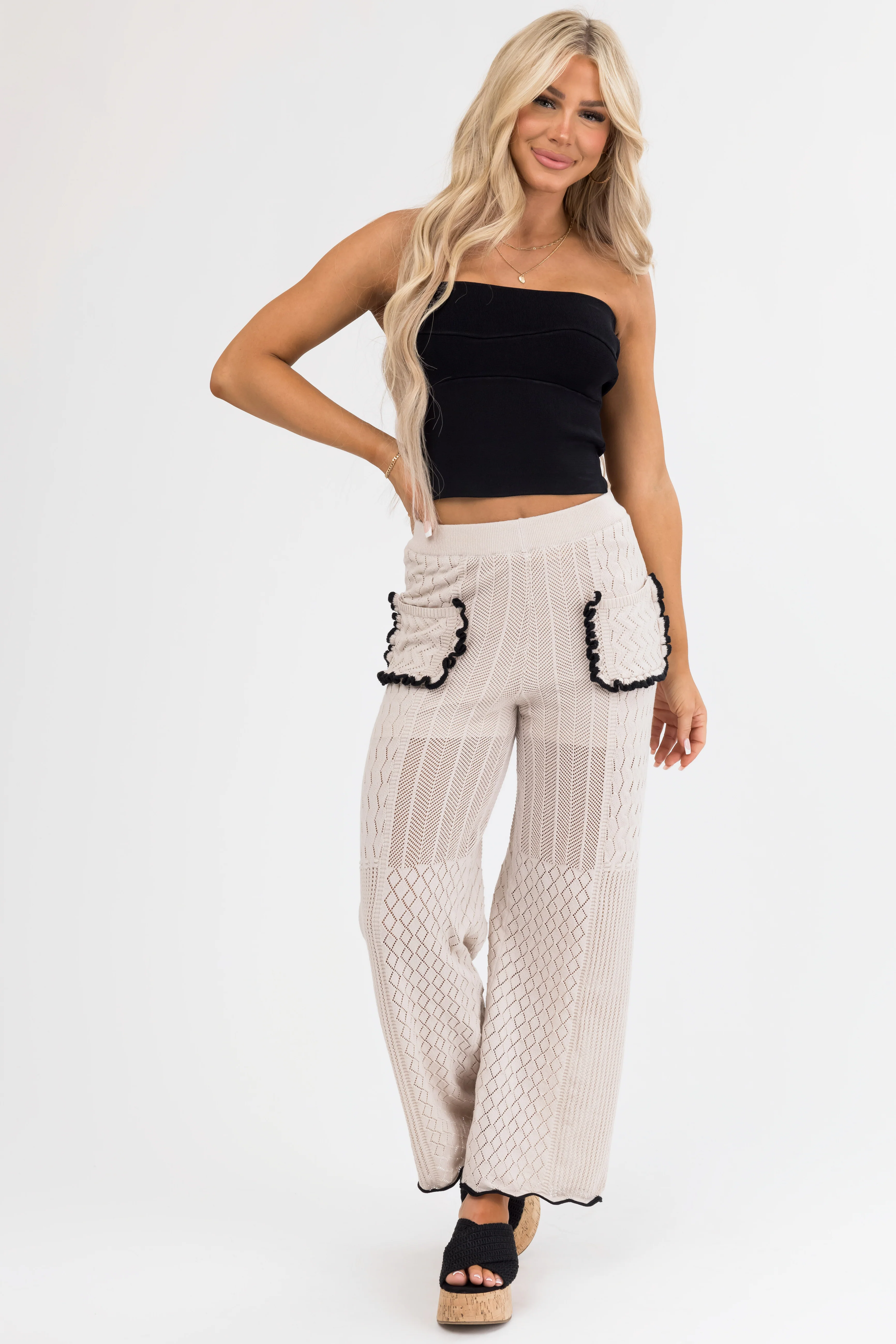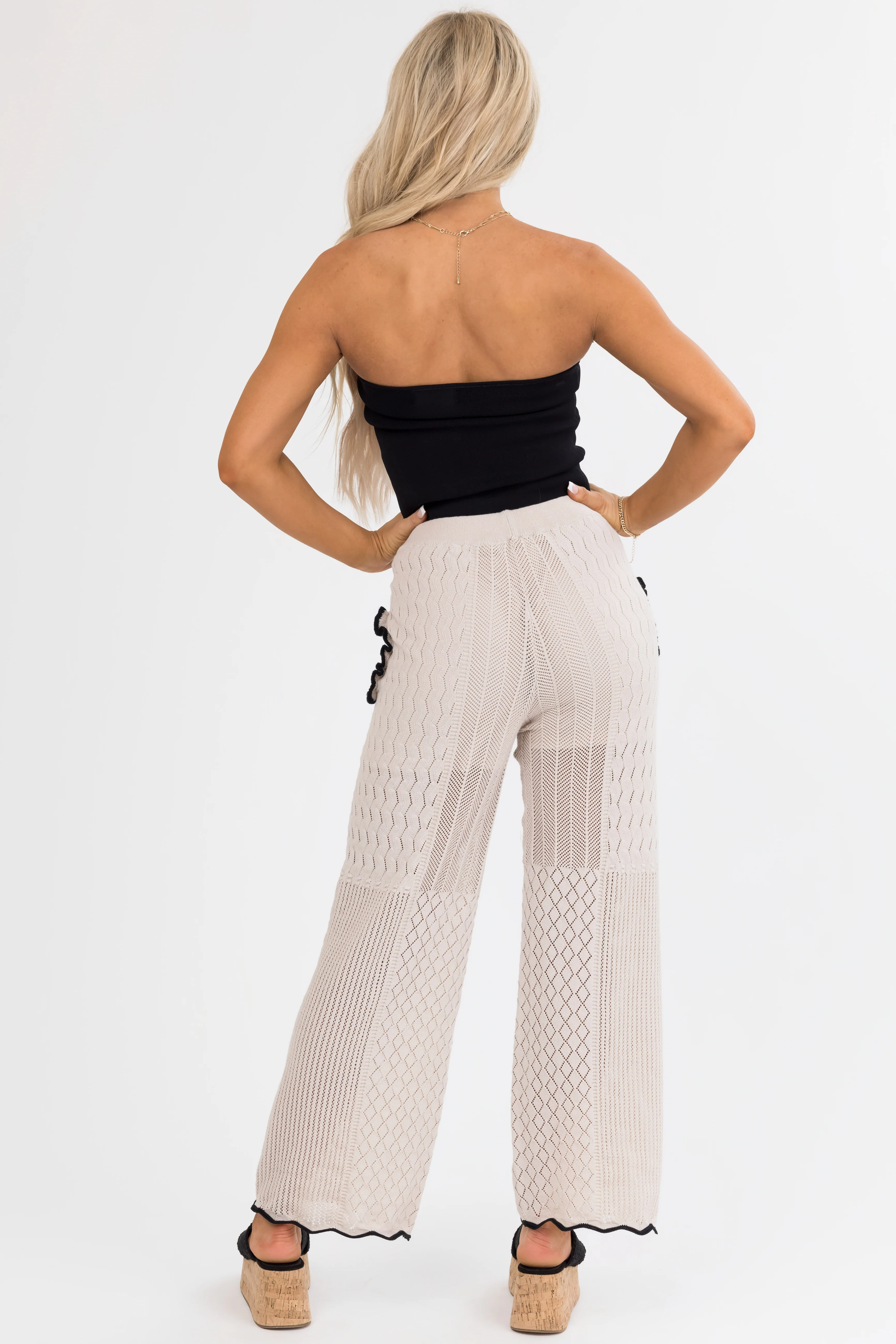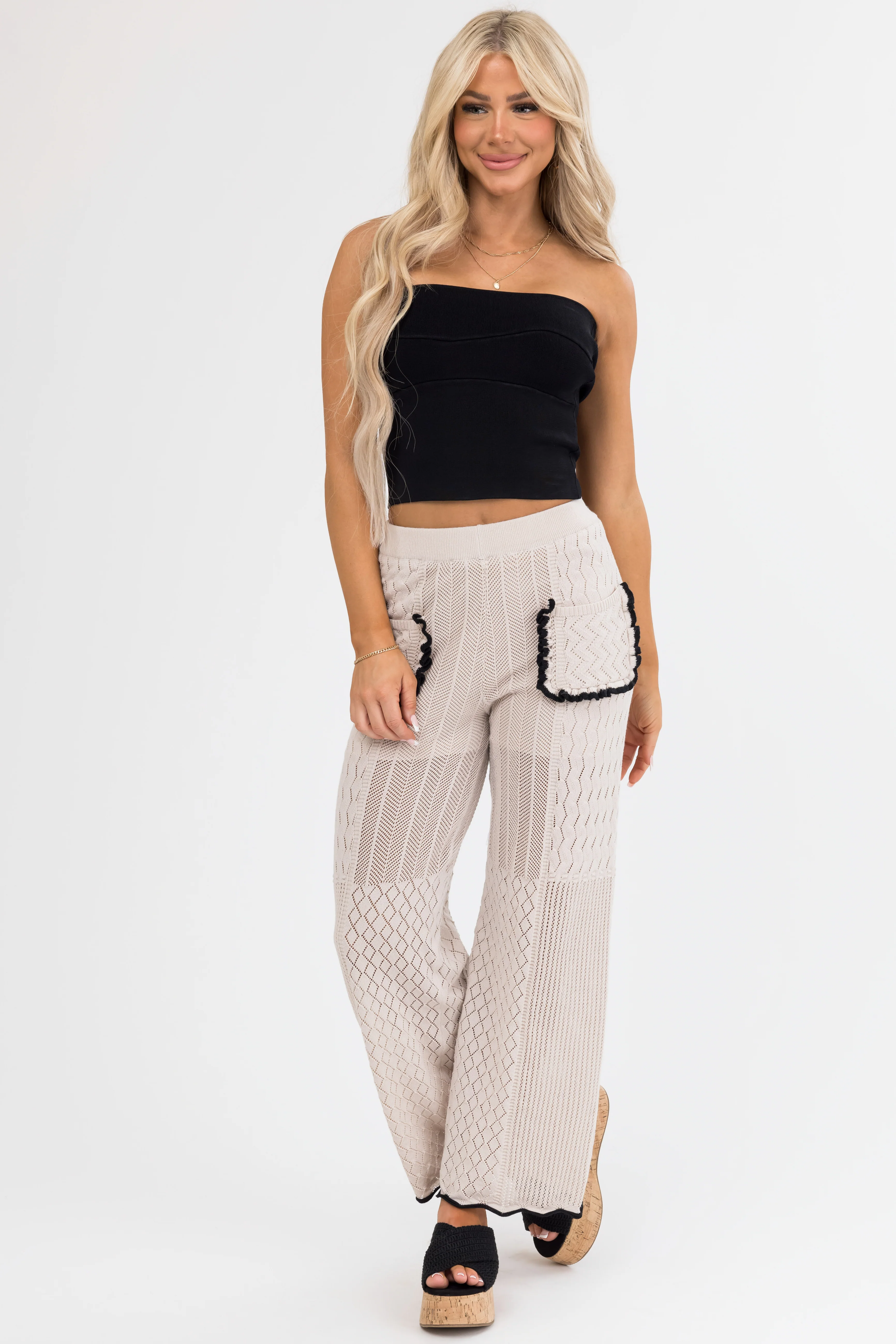 Black and Cream Striped Knit Wide Leg Pants