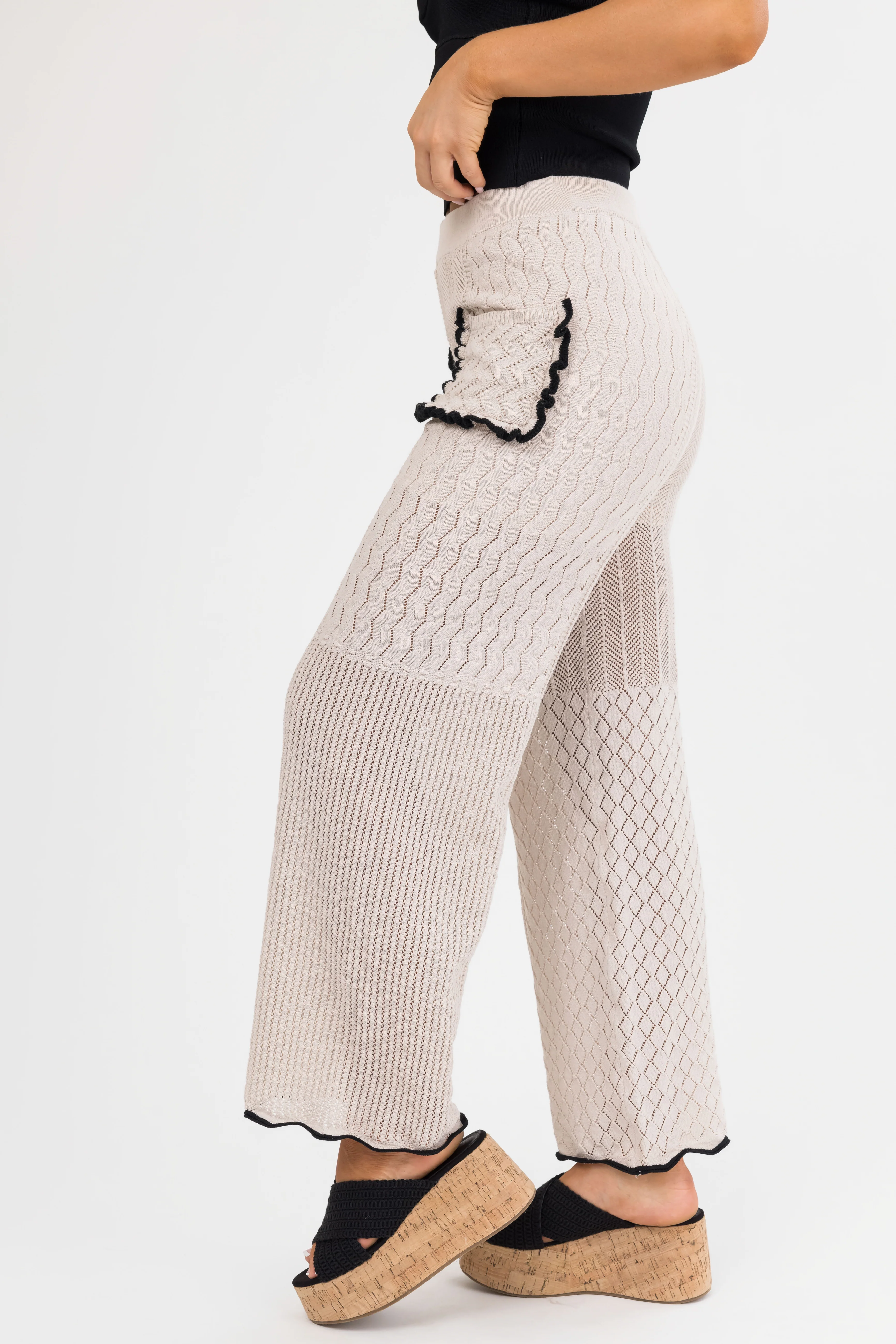 Coconut Textured Straight Leg Pants with Contrast Trim