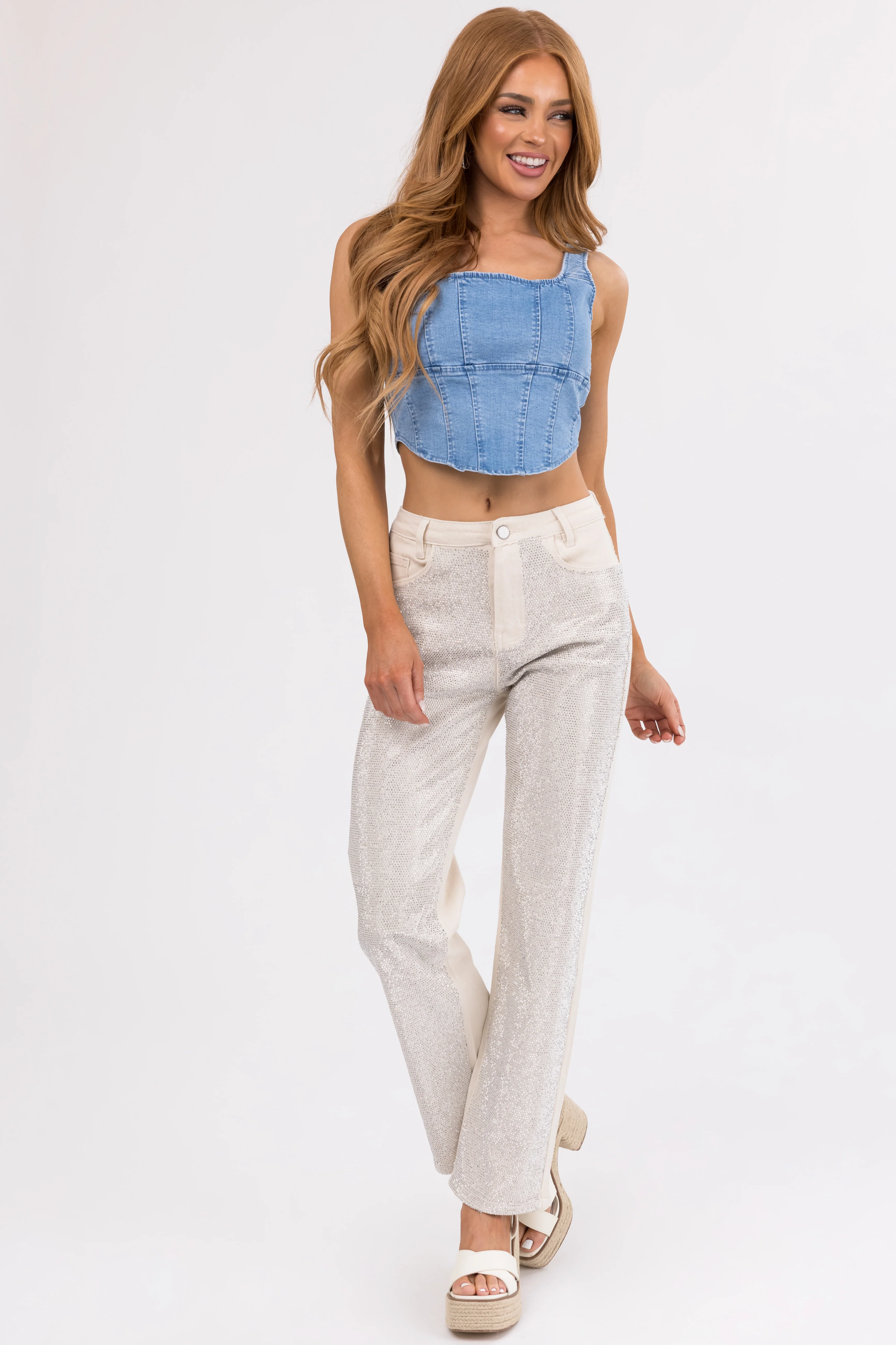 Blue B Cream Rhinestone Front Straight Leg Jeans
