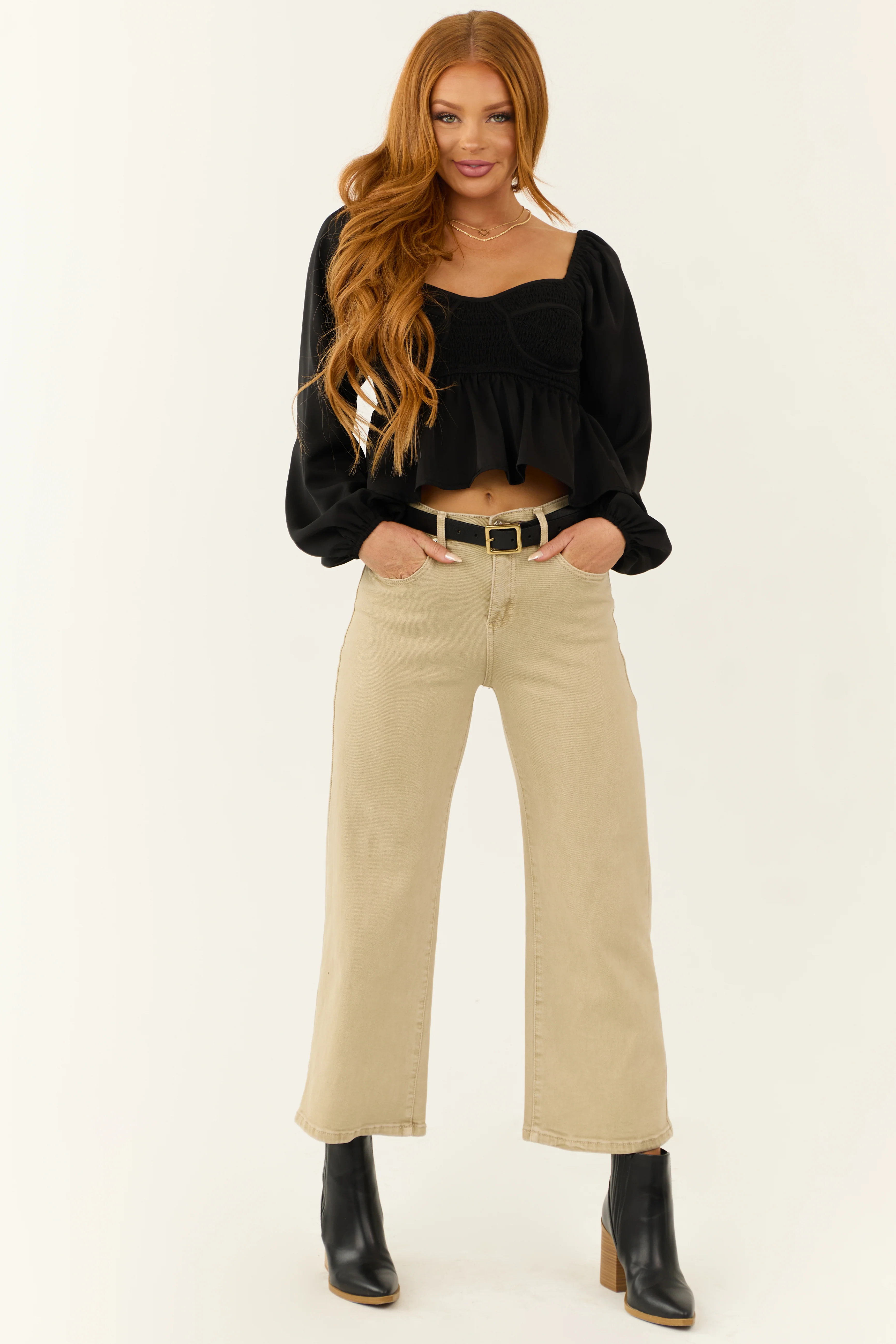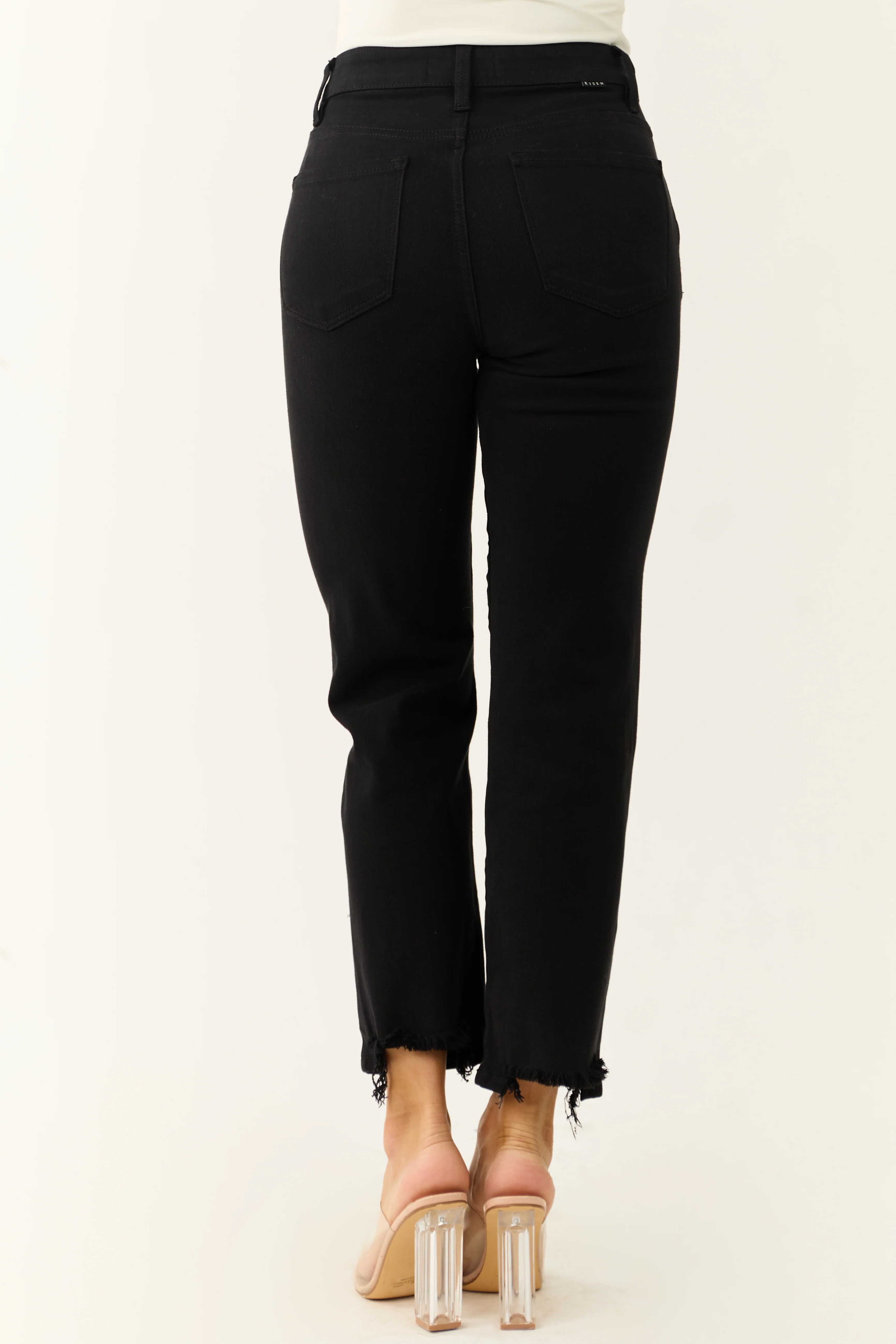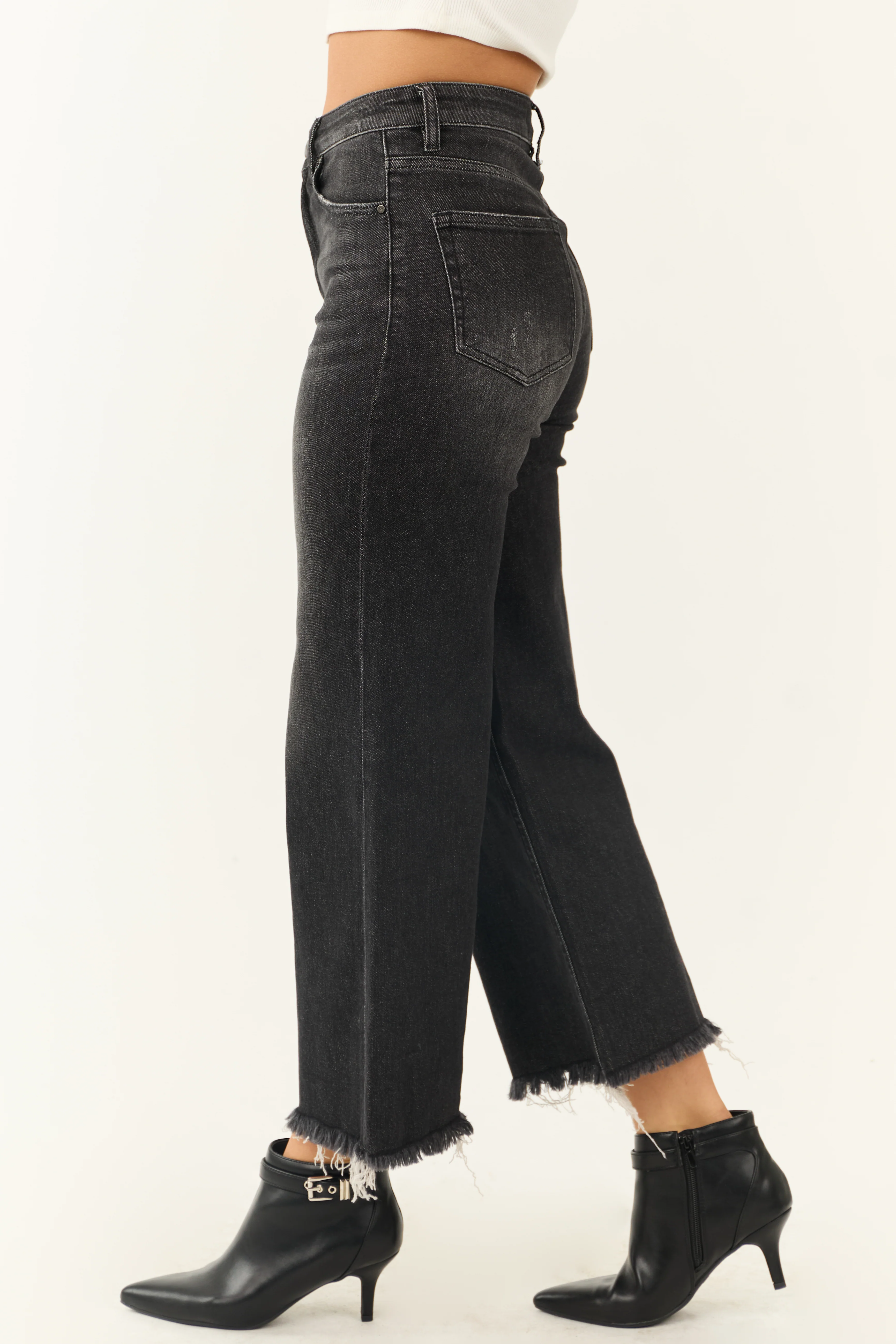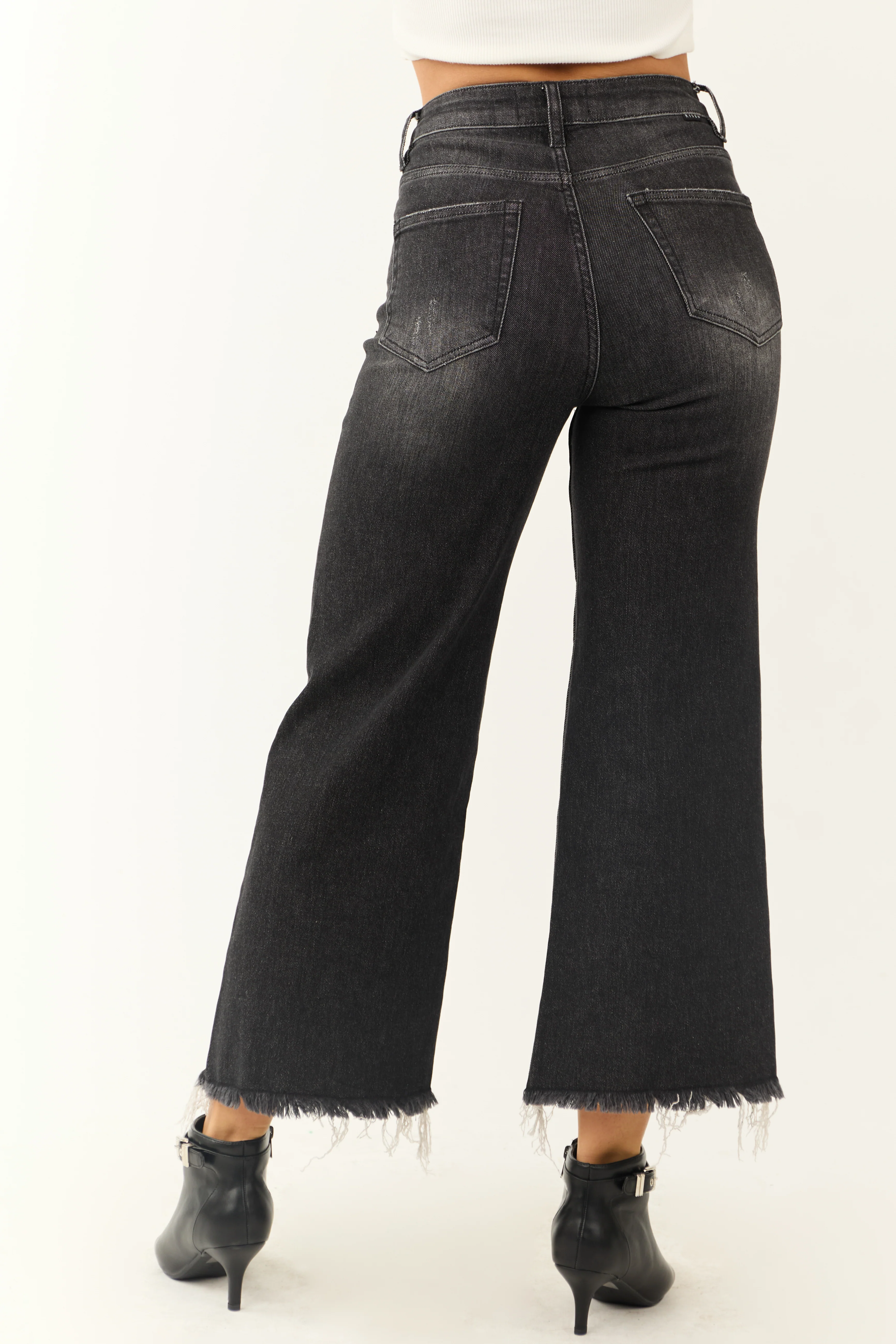 Risen Black Wide Leg Frayed Hem Cropped Jeans