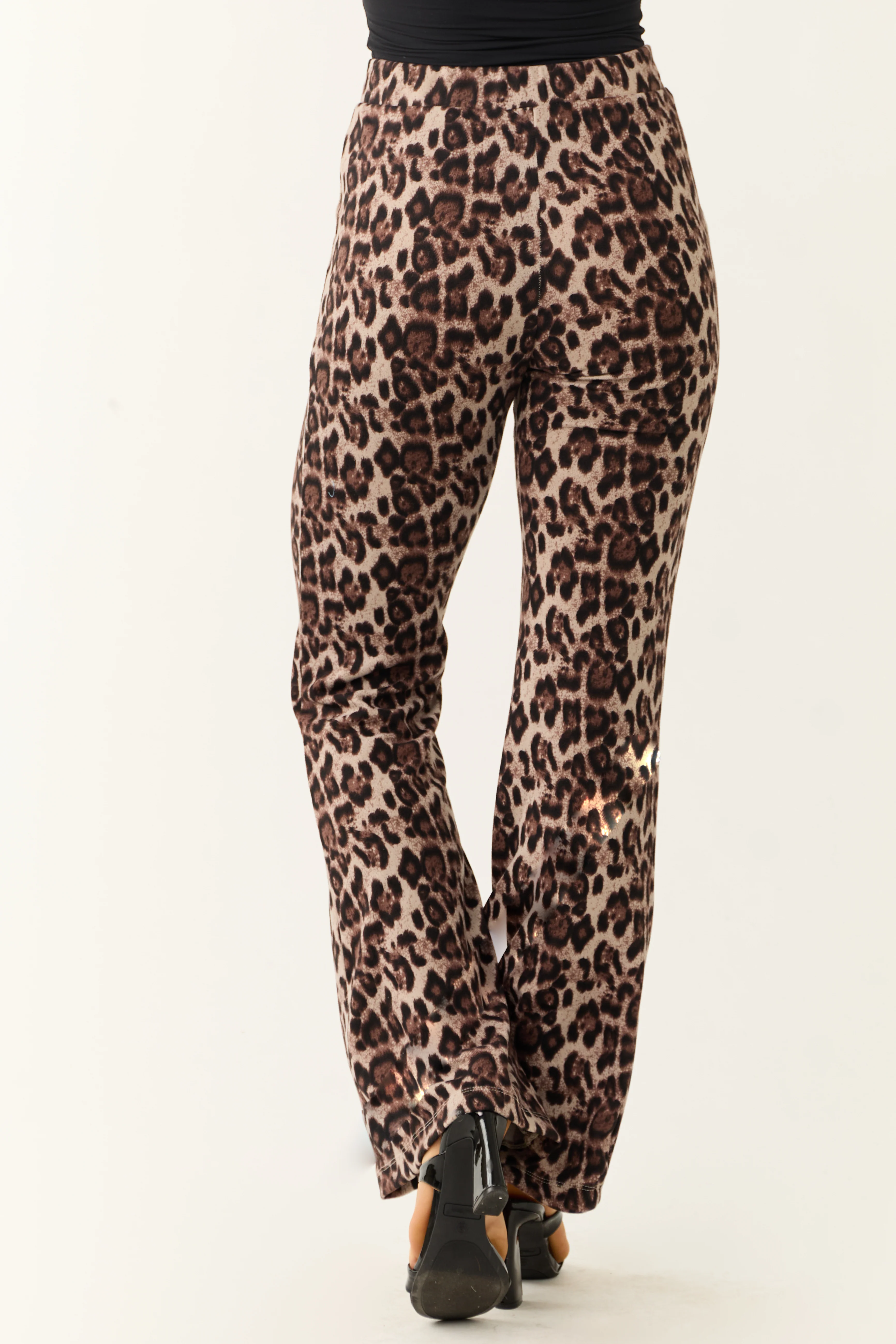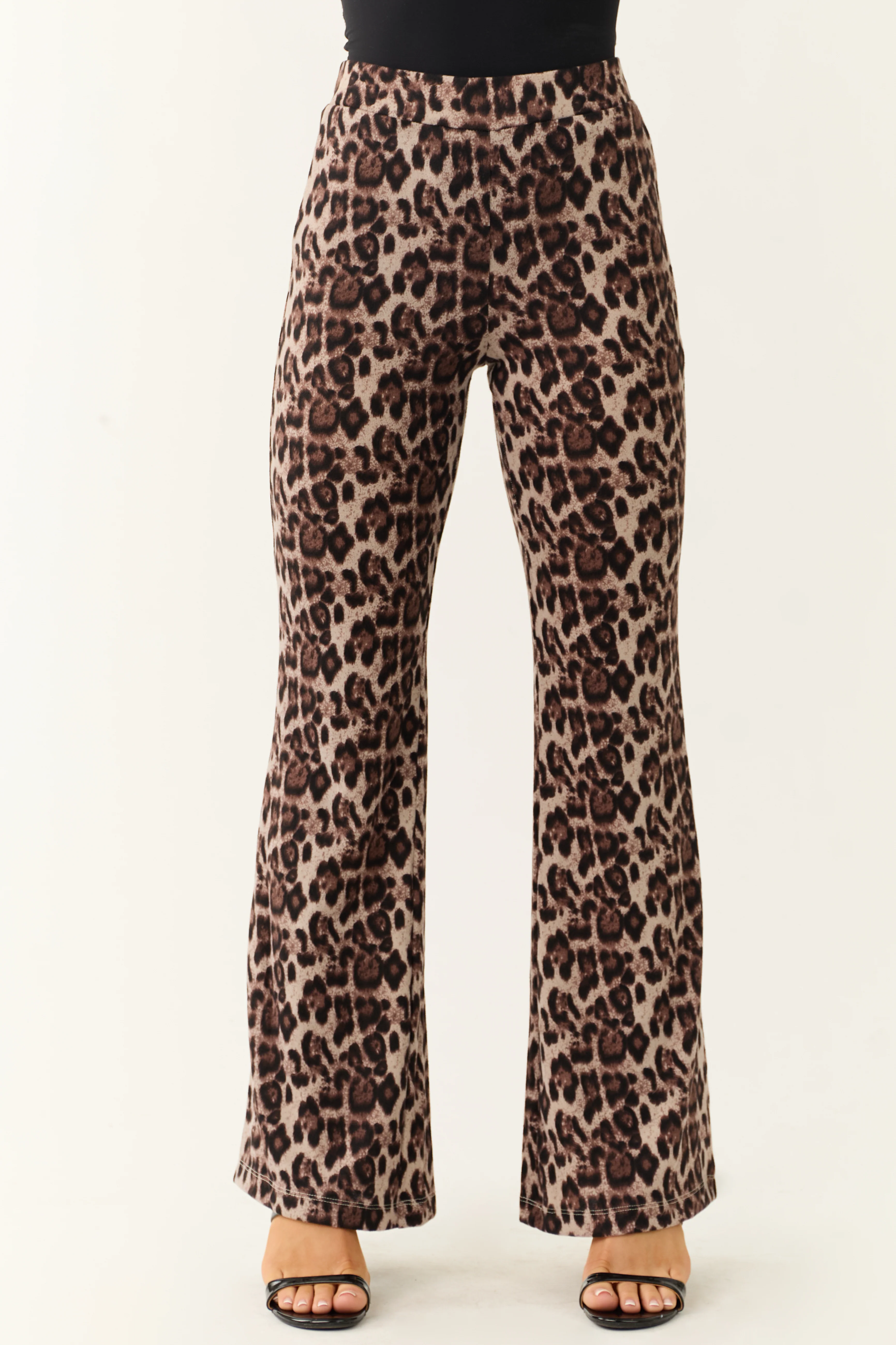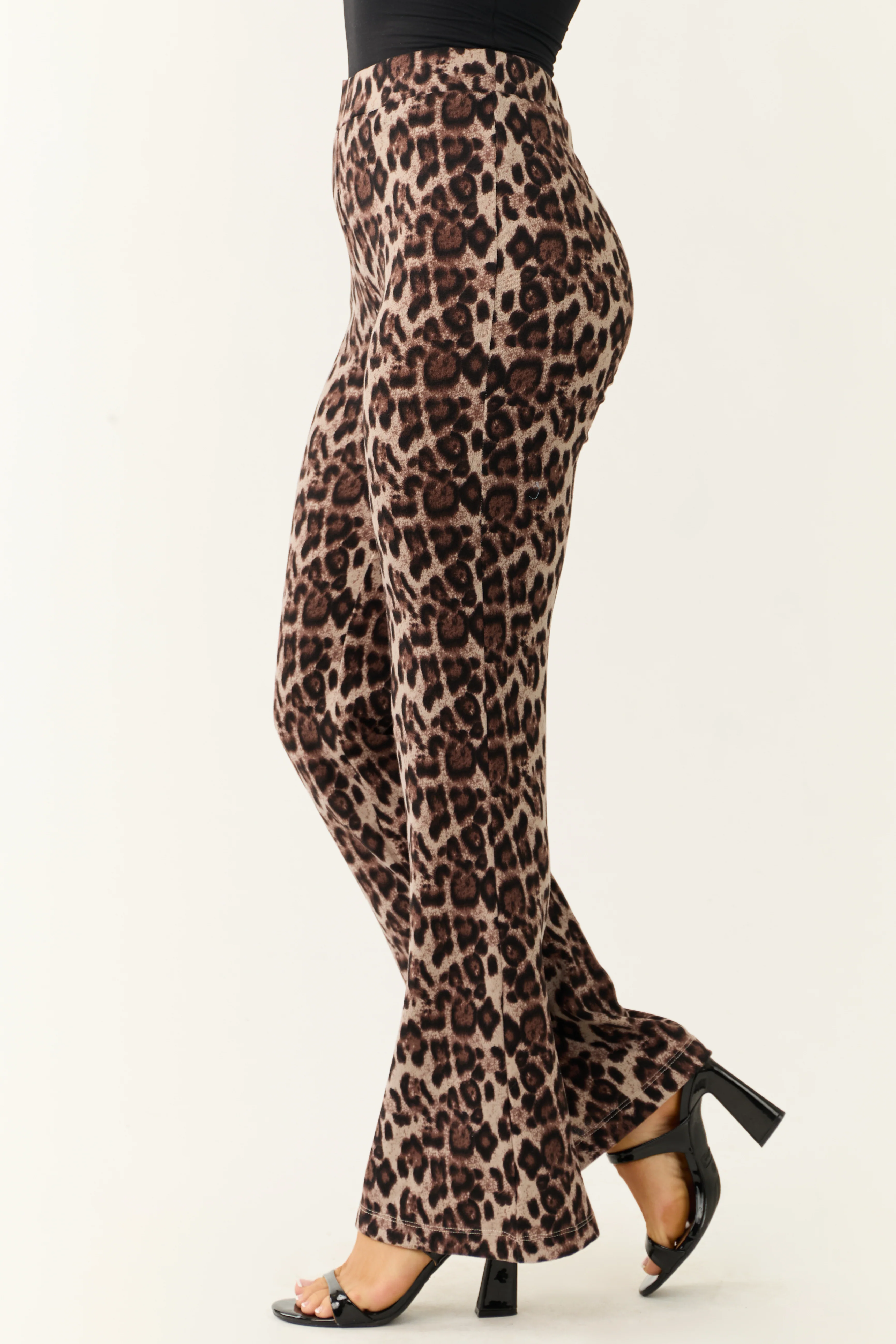 Almond Leopard Print Flare Leg Soft Knit Pants