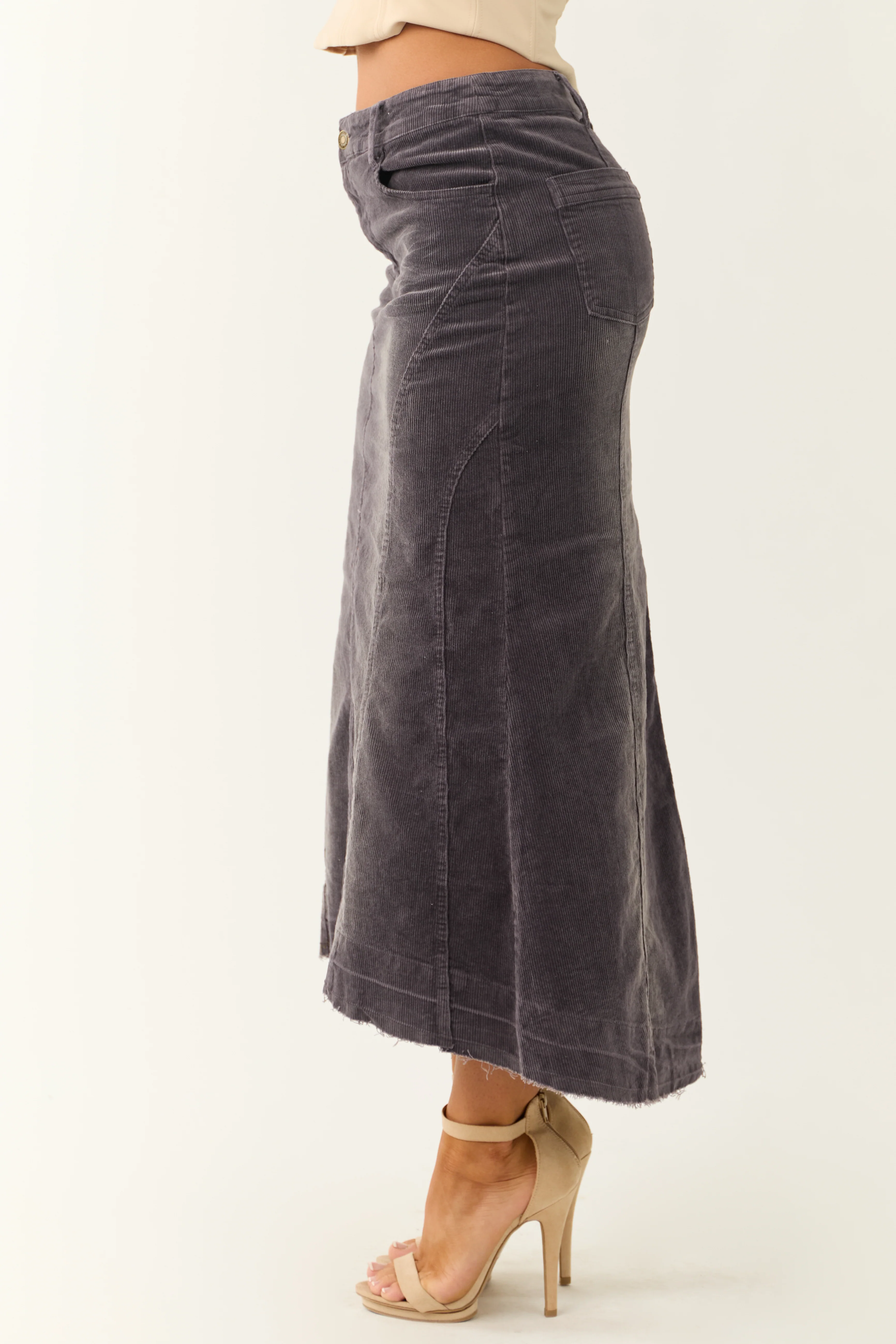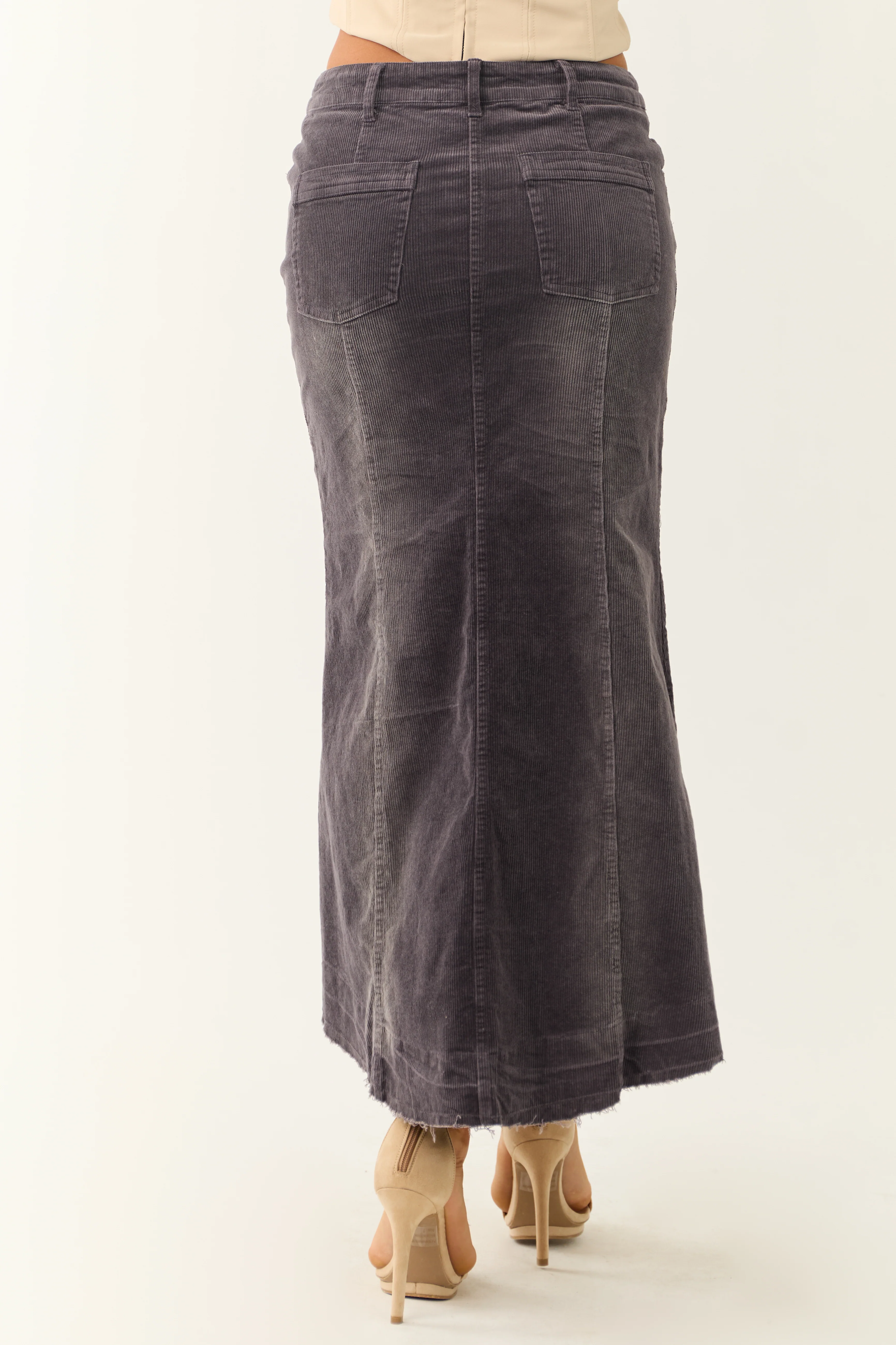 Quartz Corduroy Textured High Low Maxi Skirt