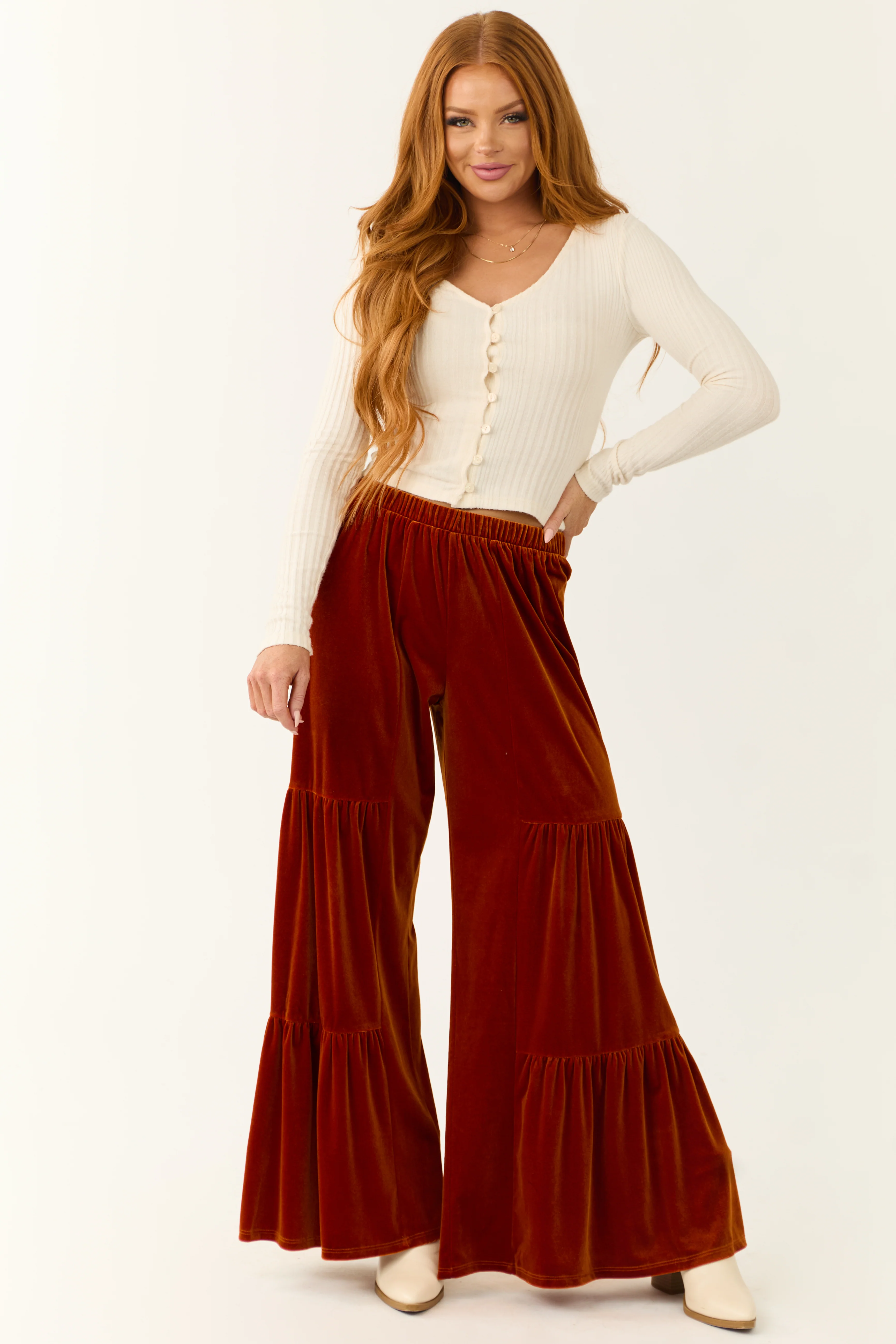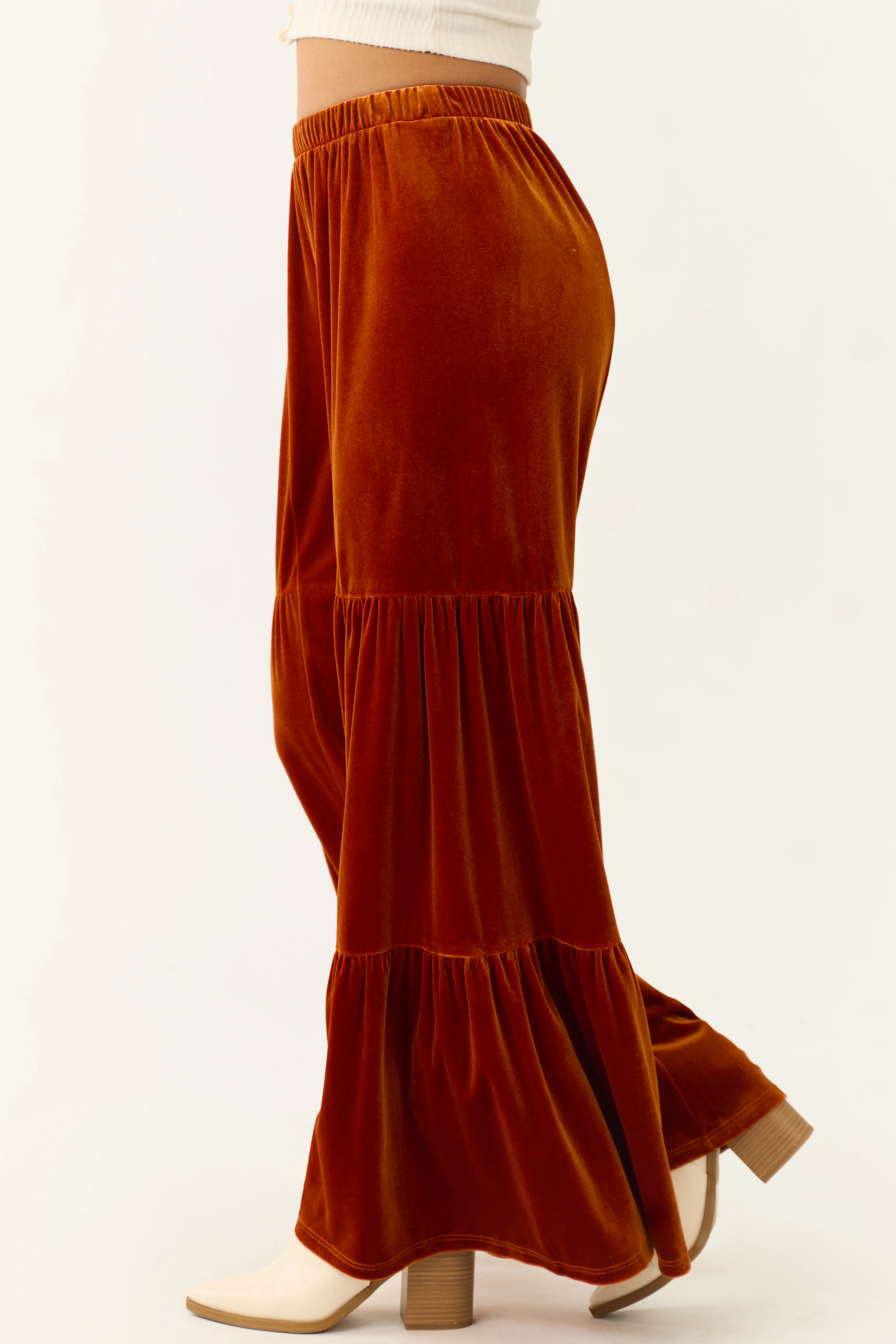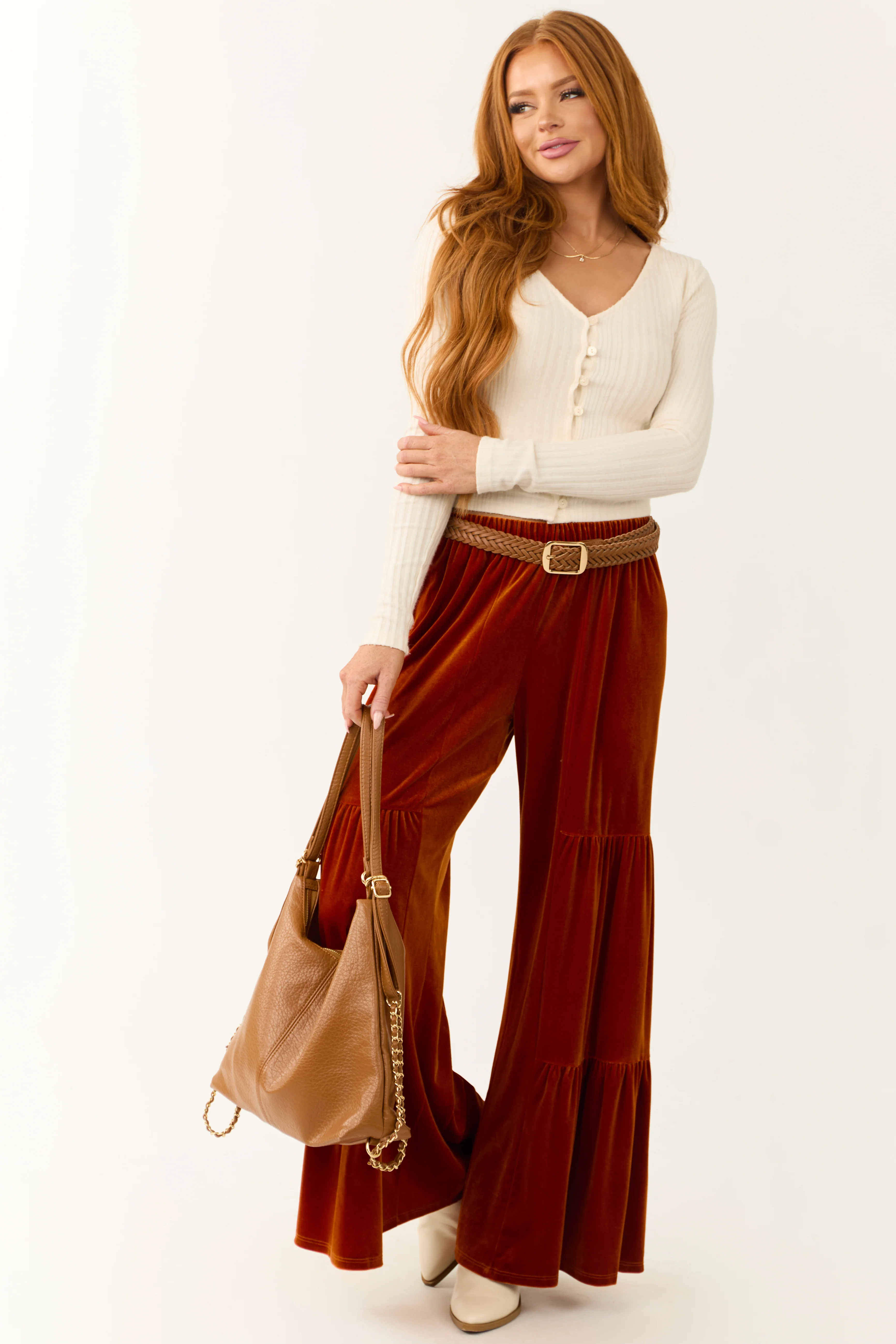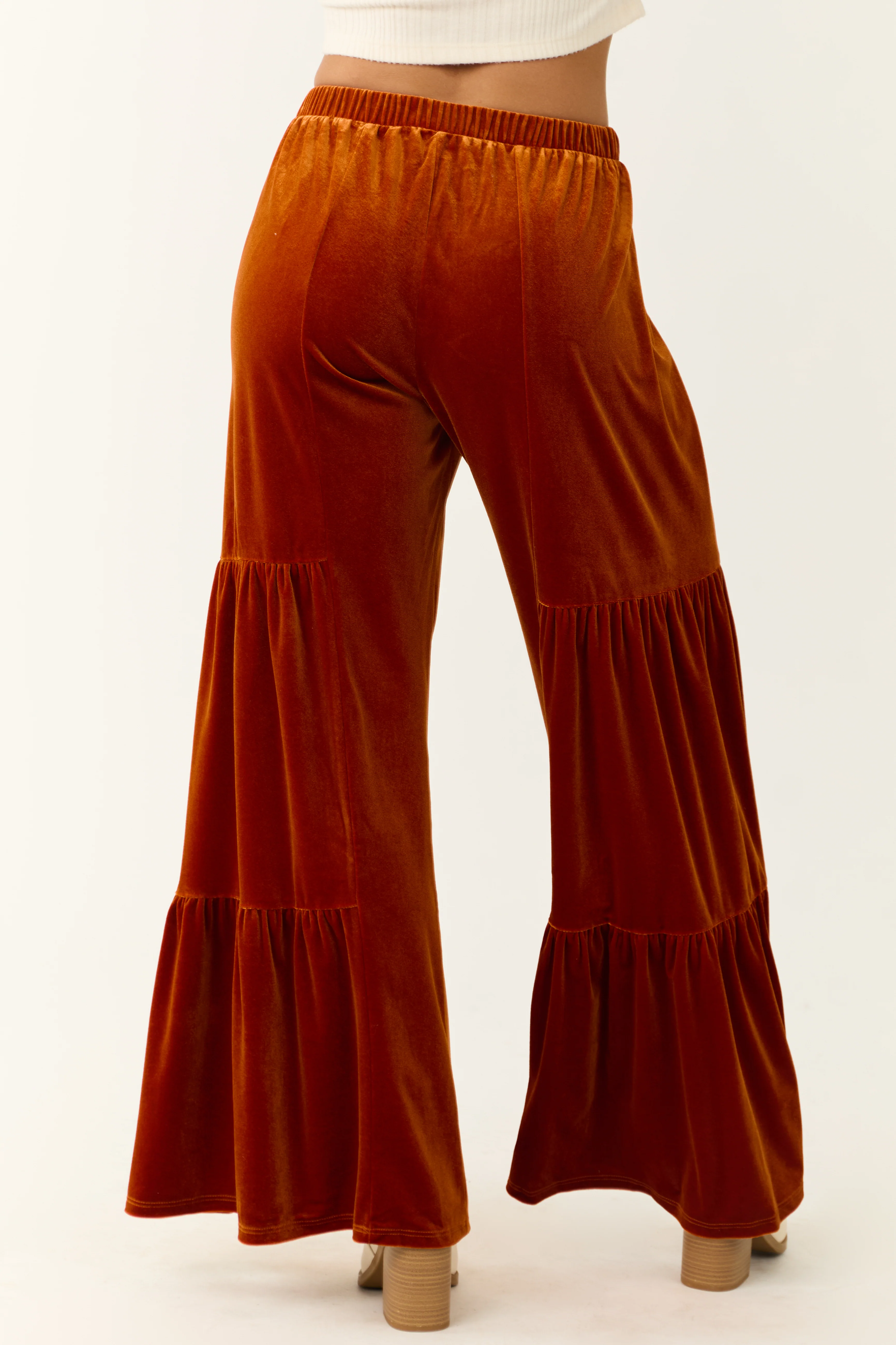 Burnt Orange Velvet Tiered Wide Leg Pants