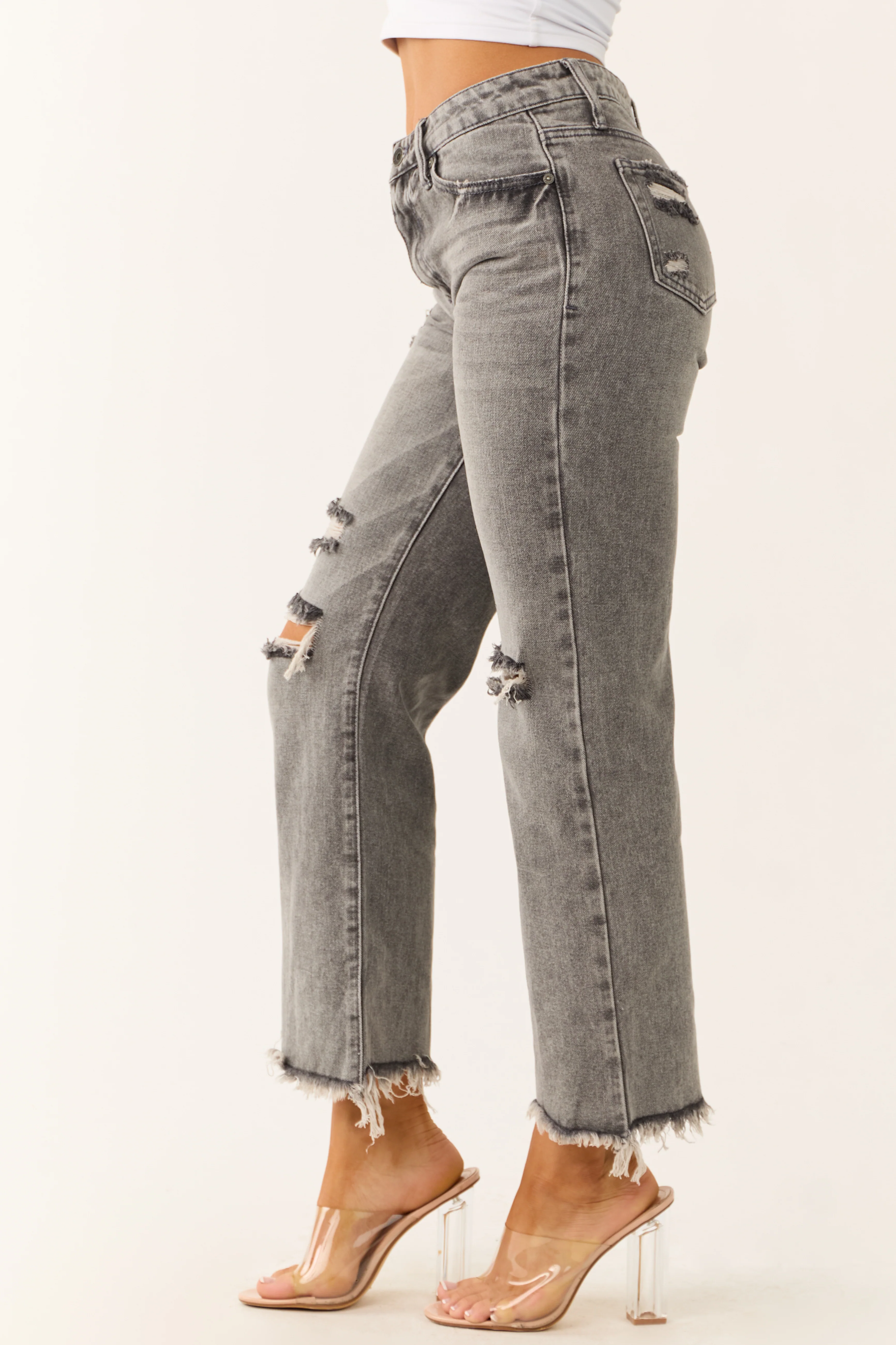 Special A Steel Distressed High Rise Mom Jeans