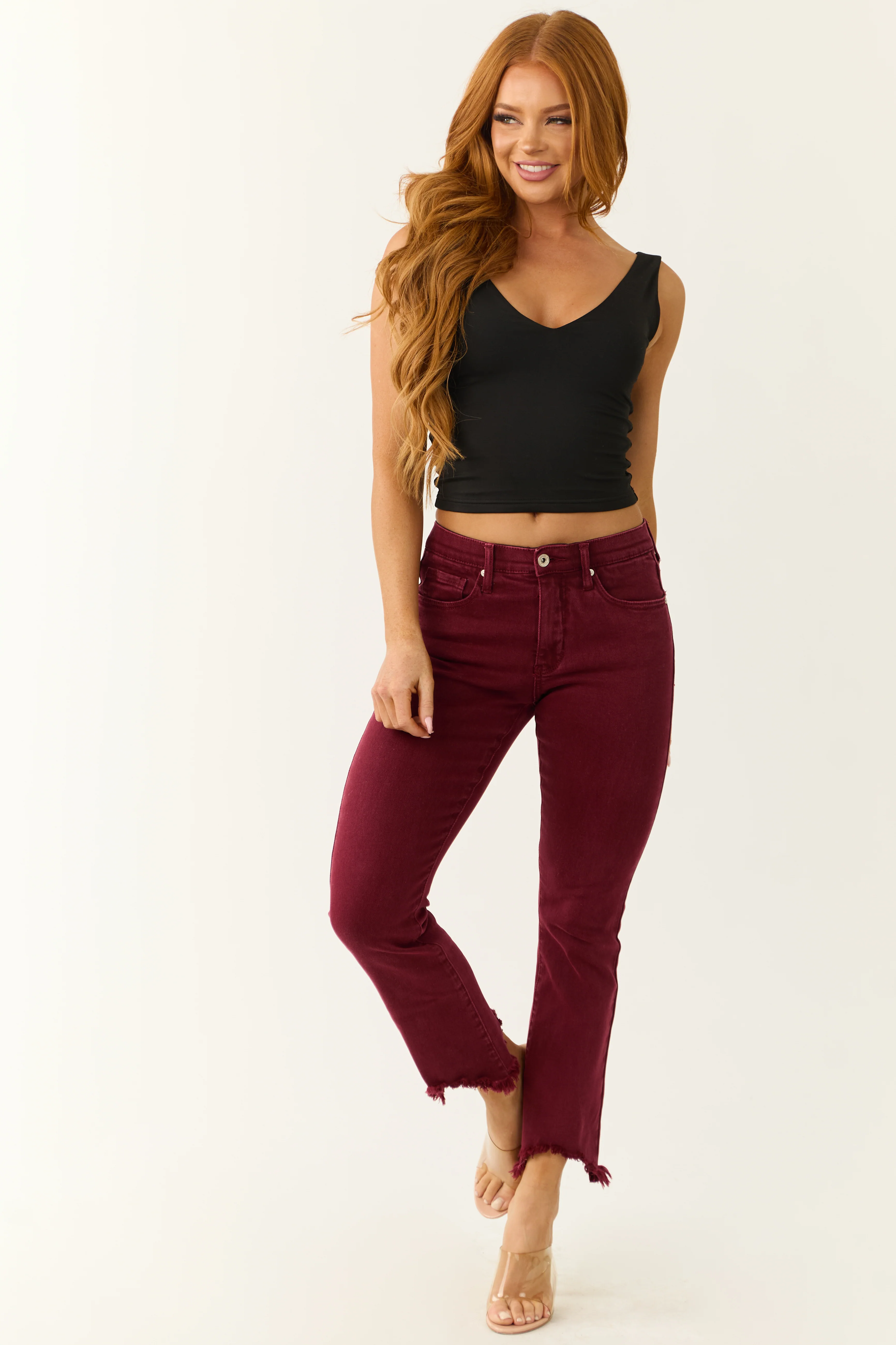 Vervet Black Slim Bootcut Raw Hem Jeans