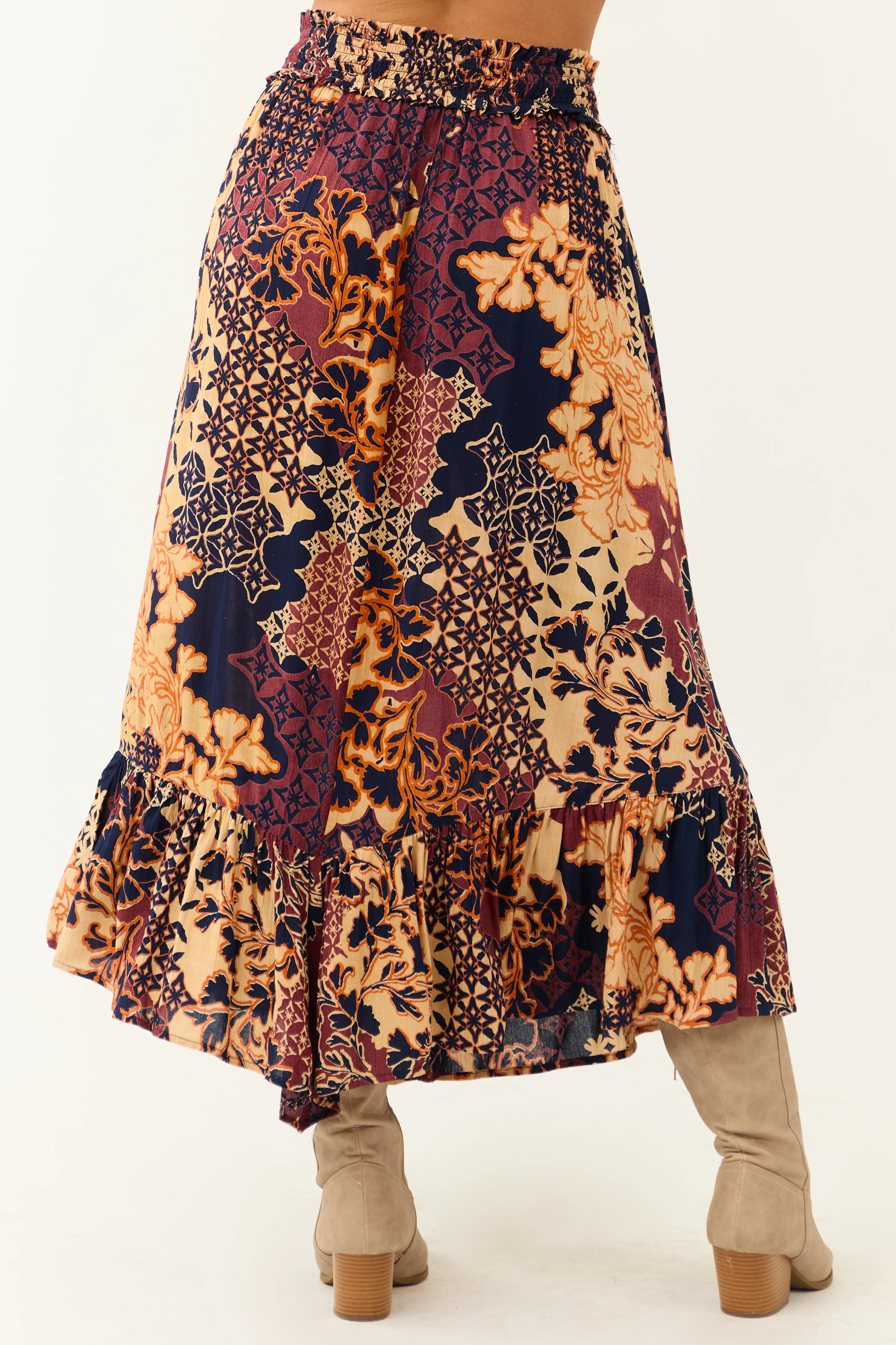 Sangria Abstract Floral Print Maxi Skirt