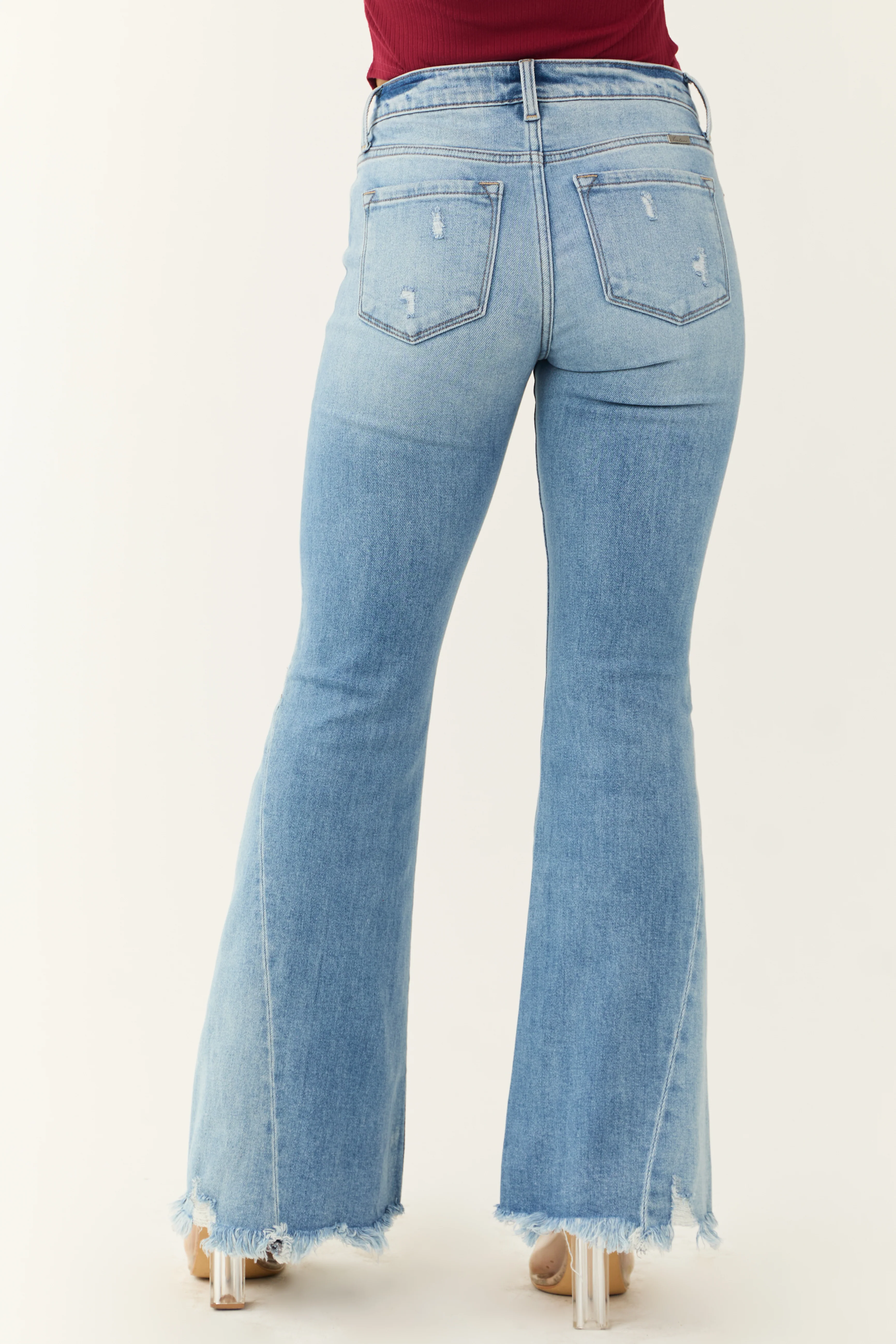 KanCan Medium Light Wash Sharkbite Hem Flare Jeans