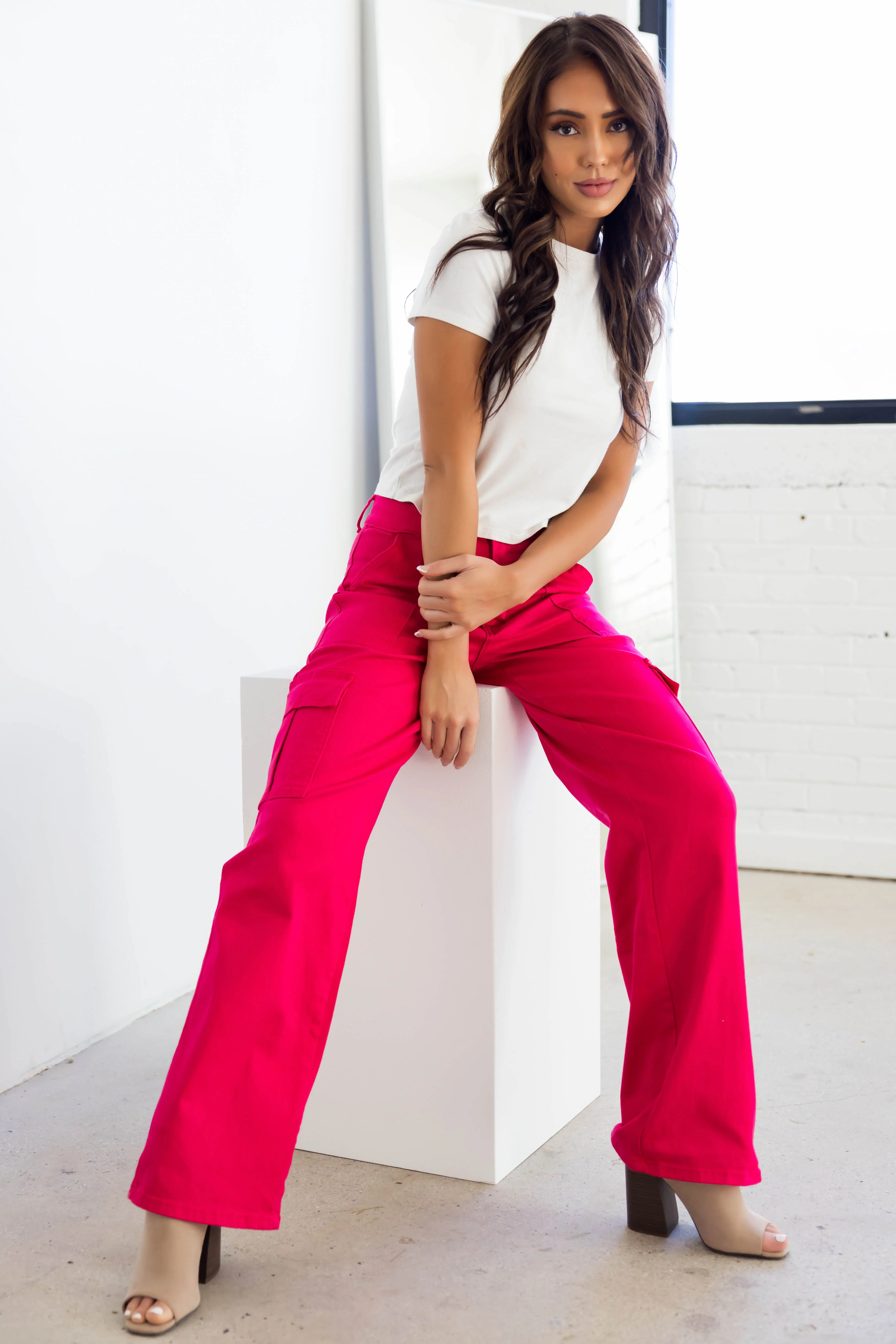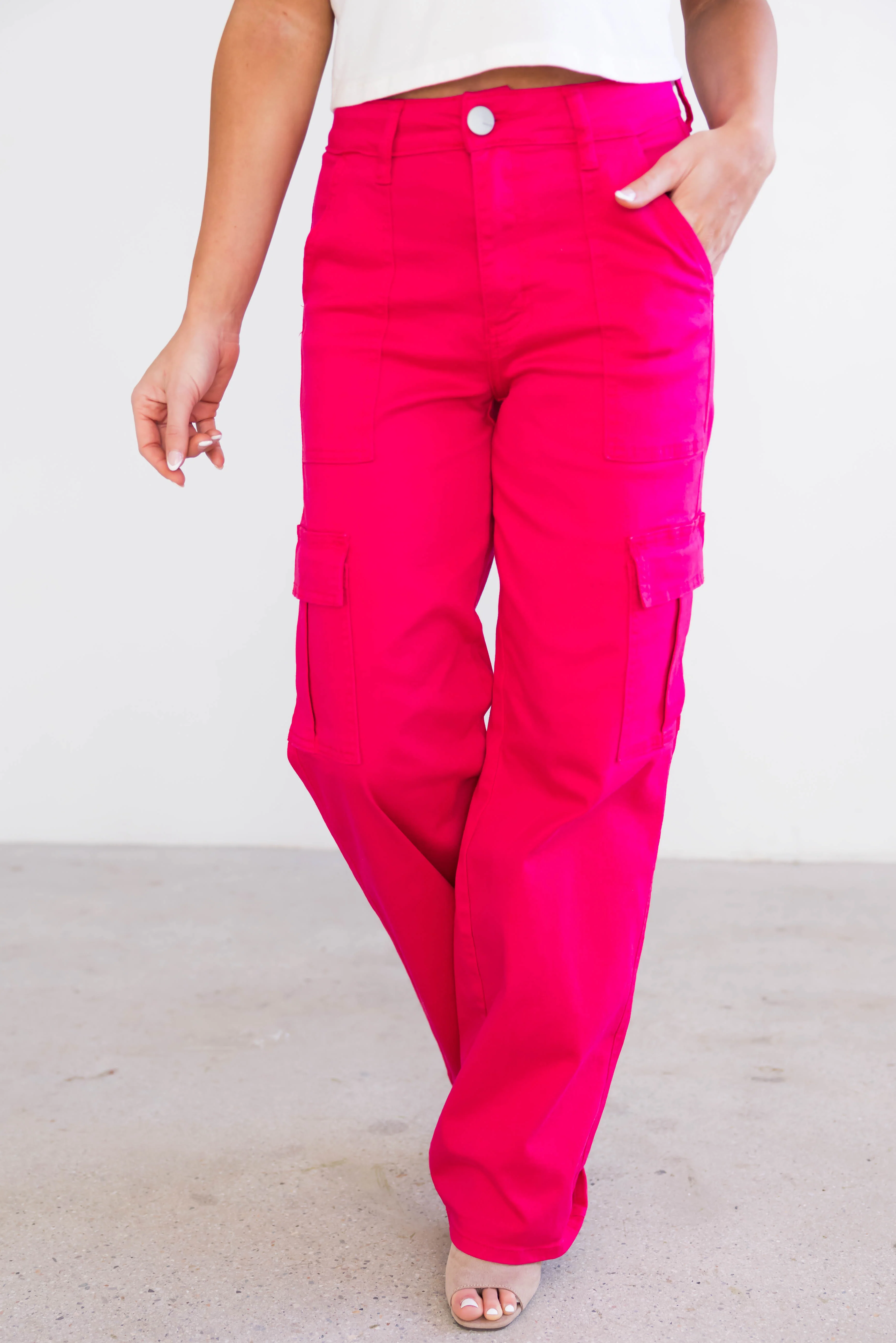 Denim Zone Hot Pink Super Stretchy Cargo Jeans