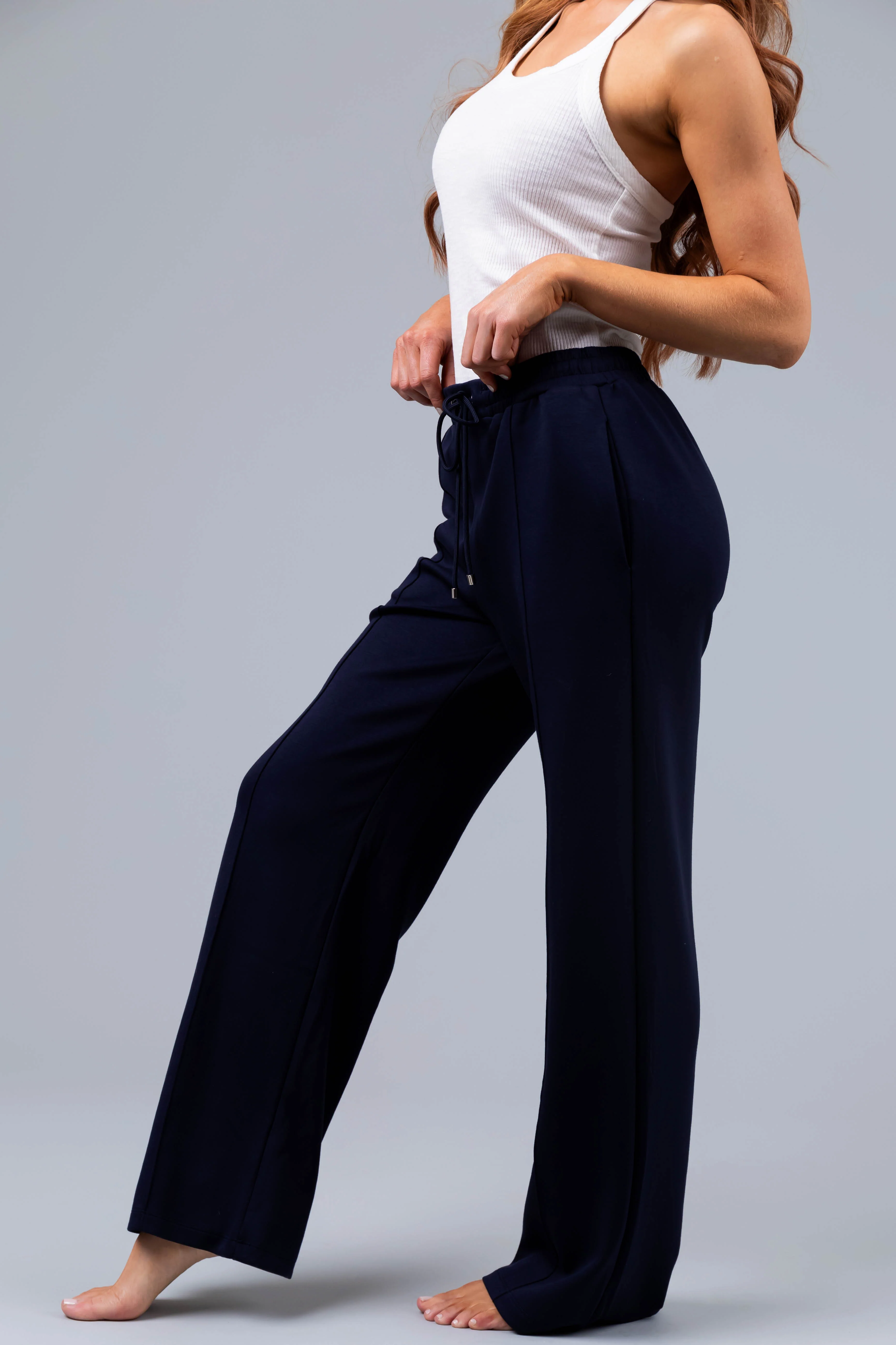 Navy Straight Leg Drawstring Comfy Pants