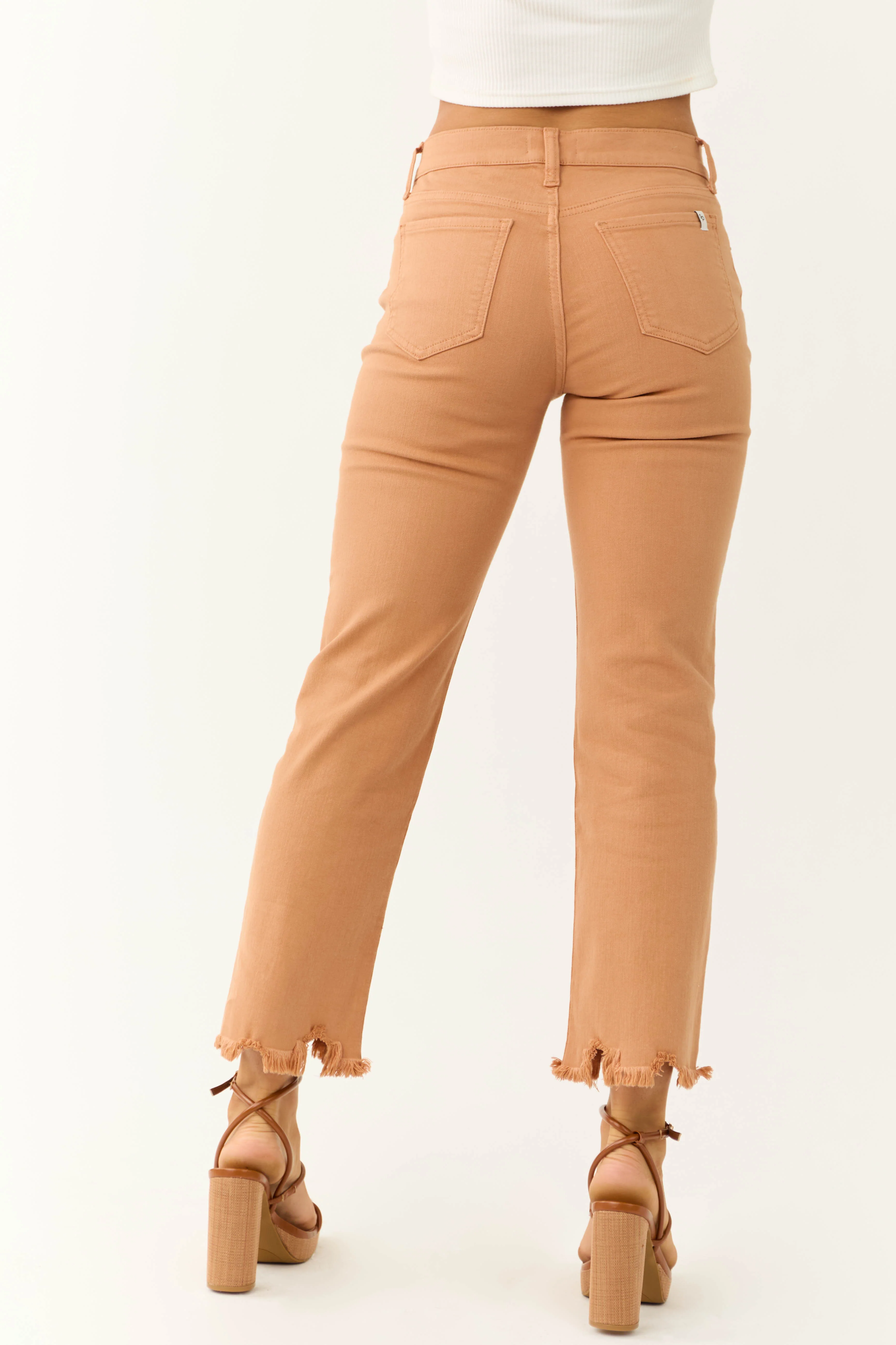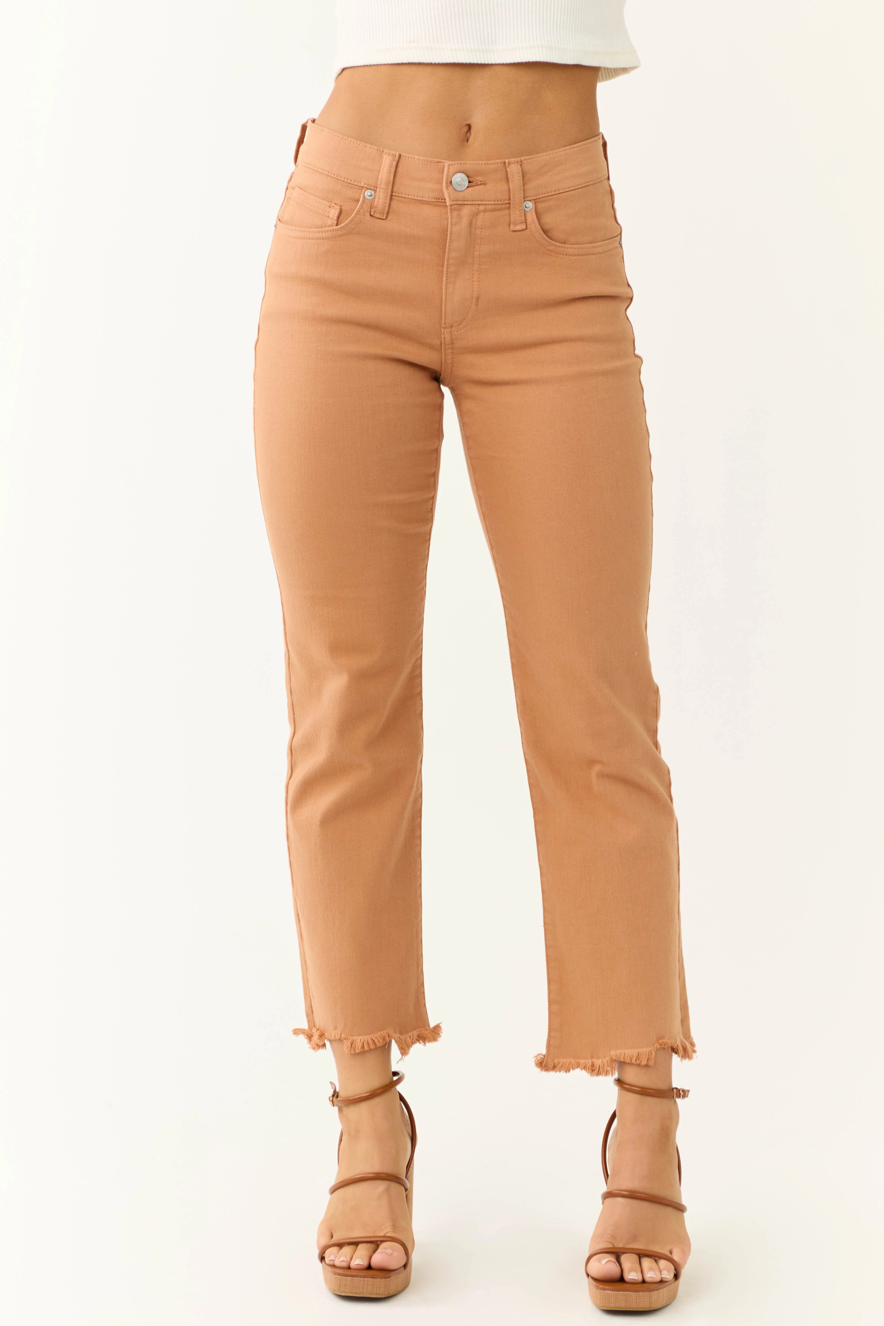 Sneak Peek Melon Mid Rise Frayed Hem Jeans