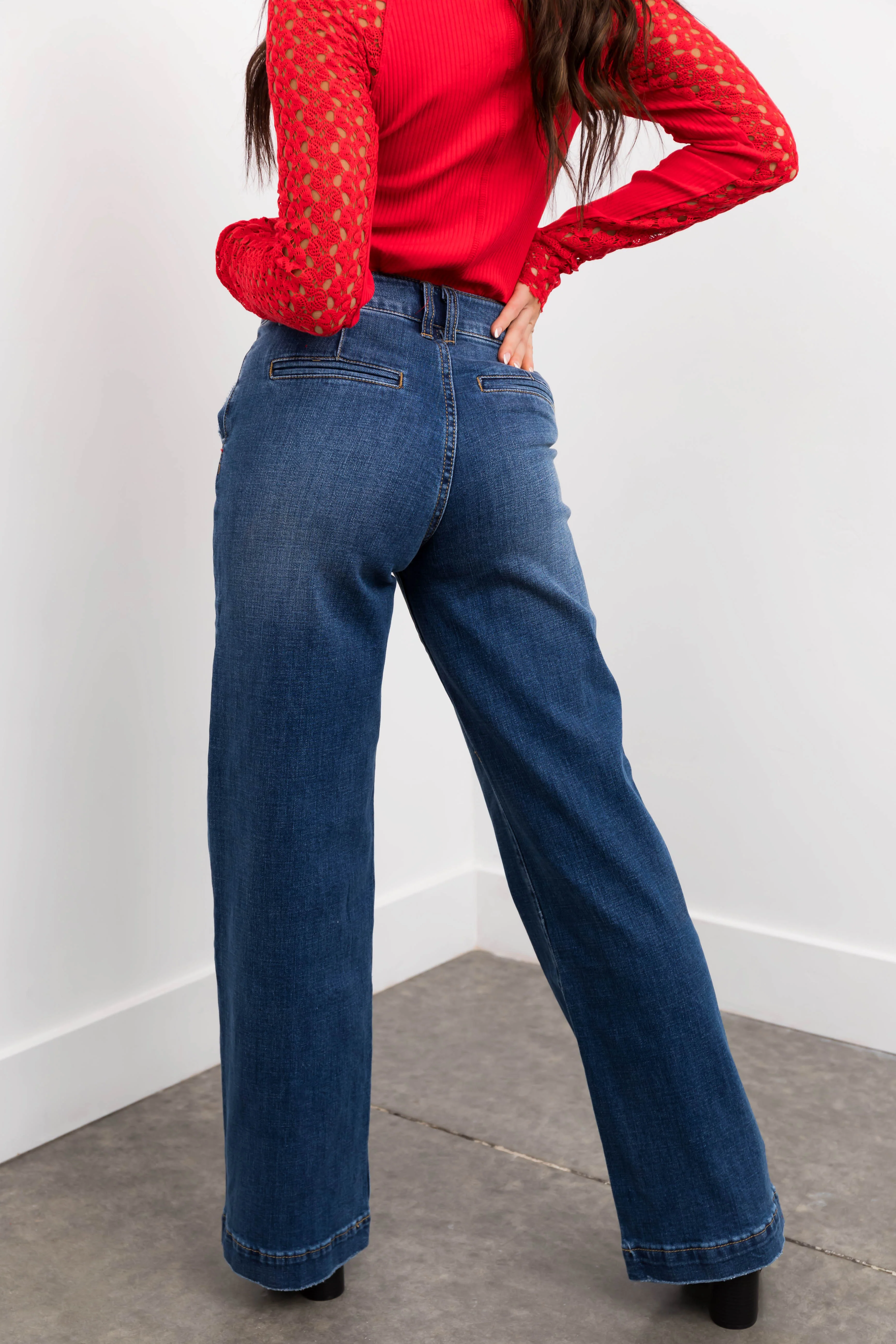 Sneak Peek Medium Wash High Rise Wide Leg Jeans