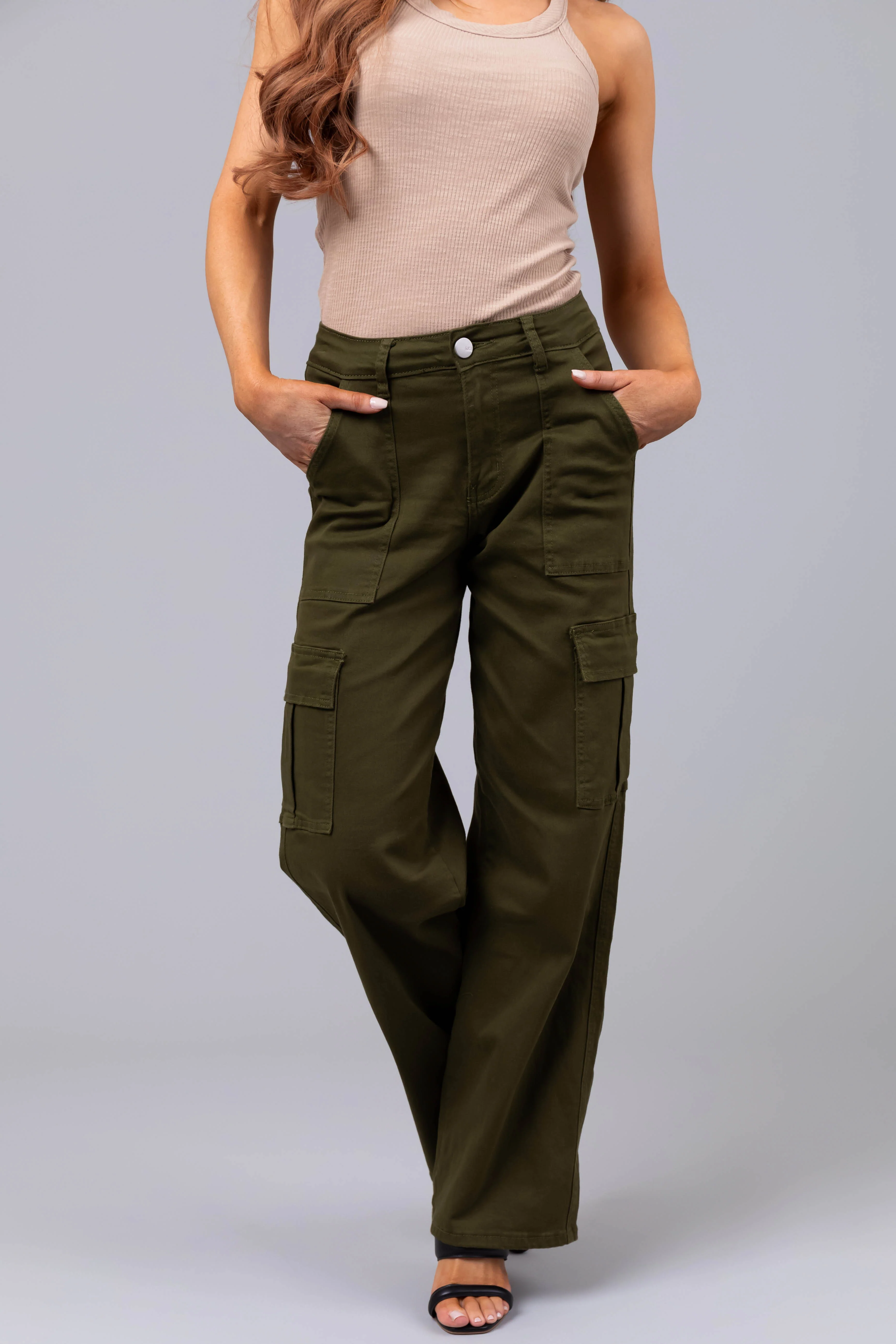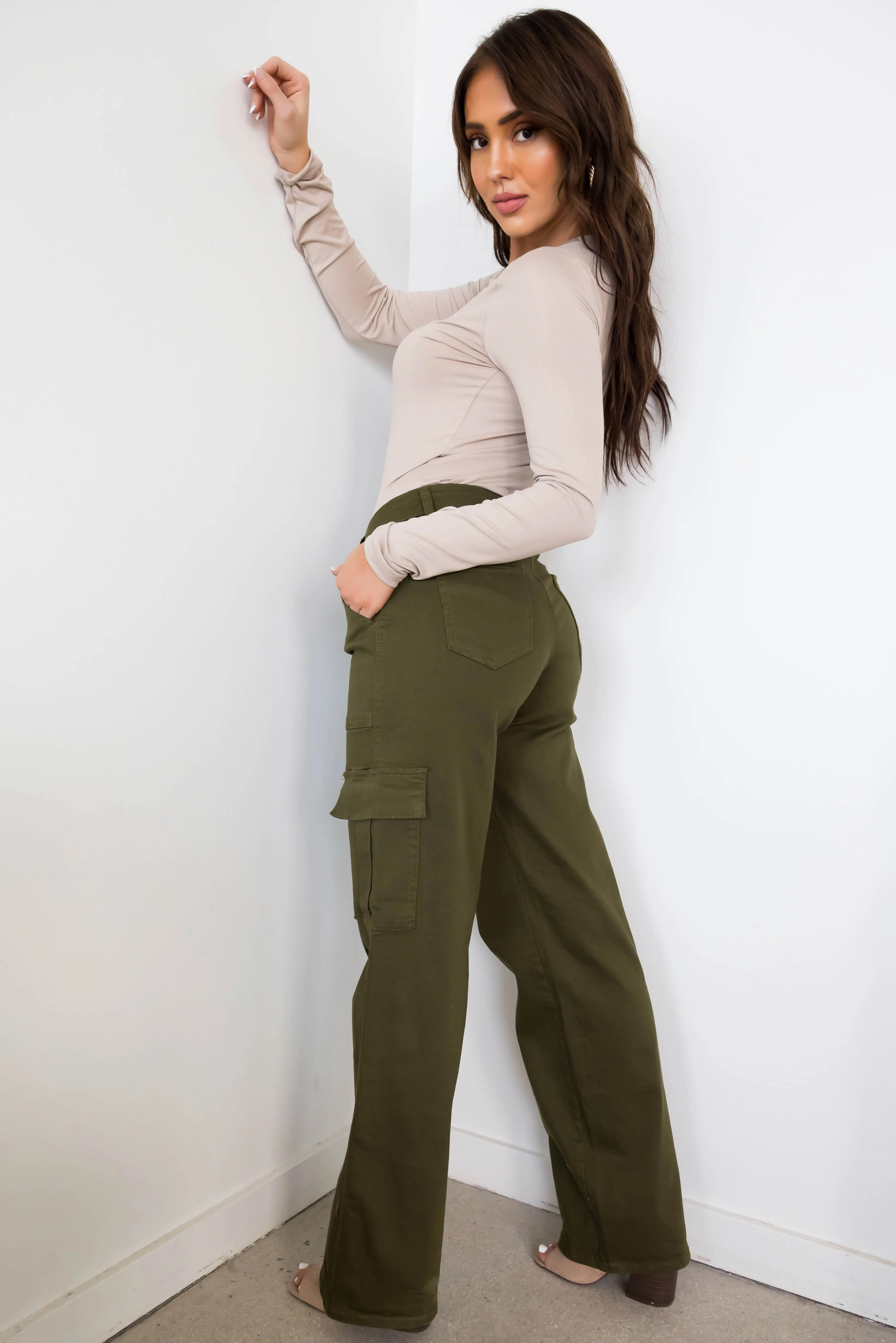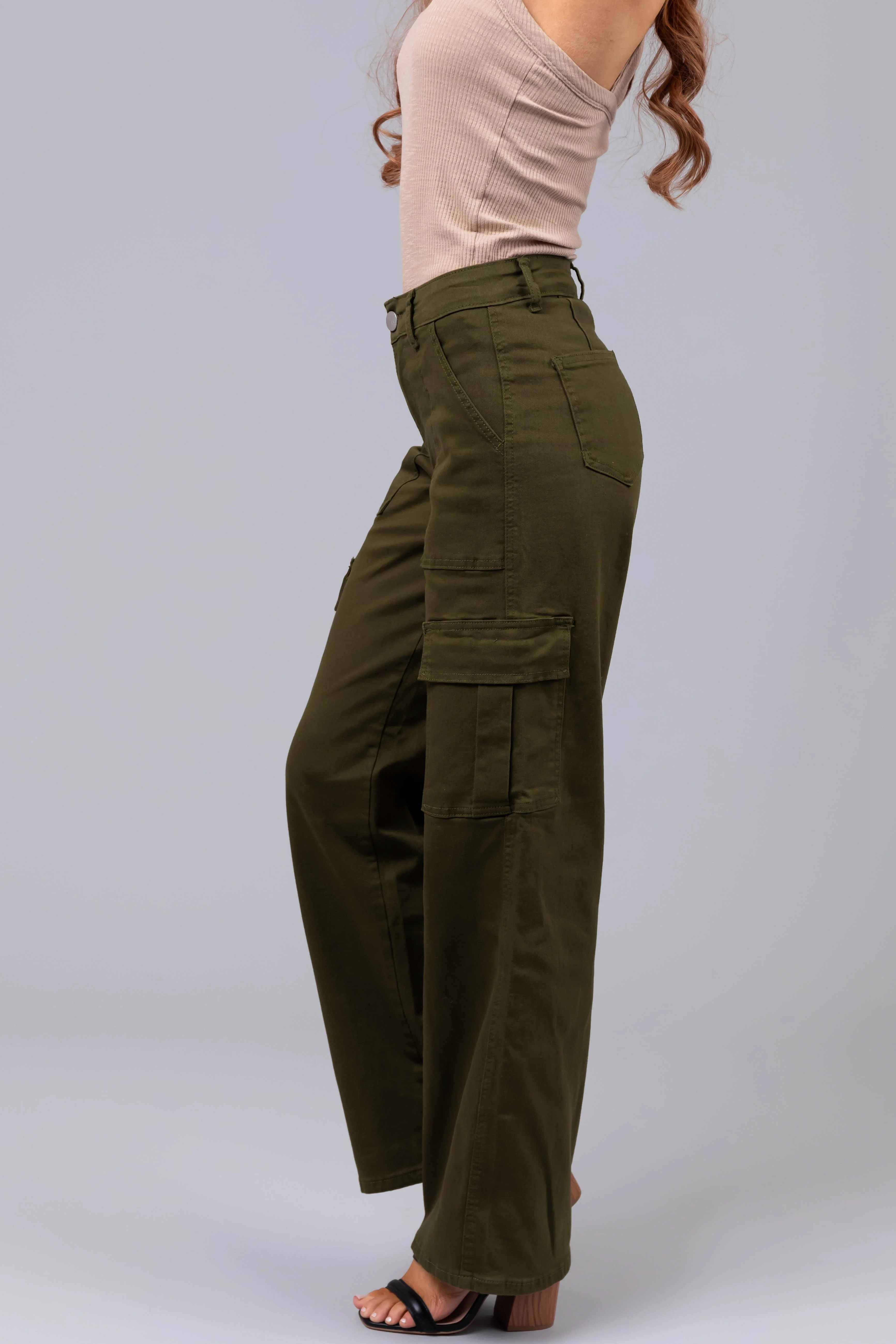Denim Zone Olive Super Stretchy Cargo Jeans