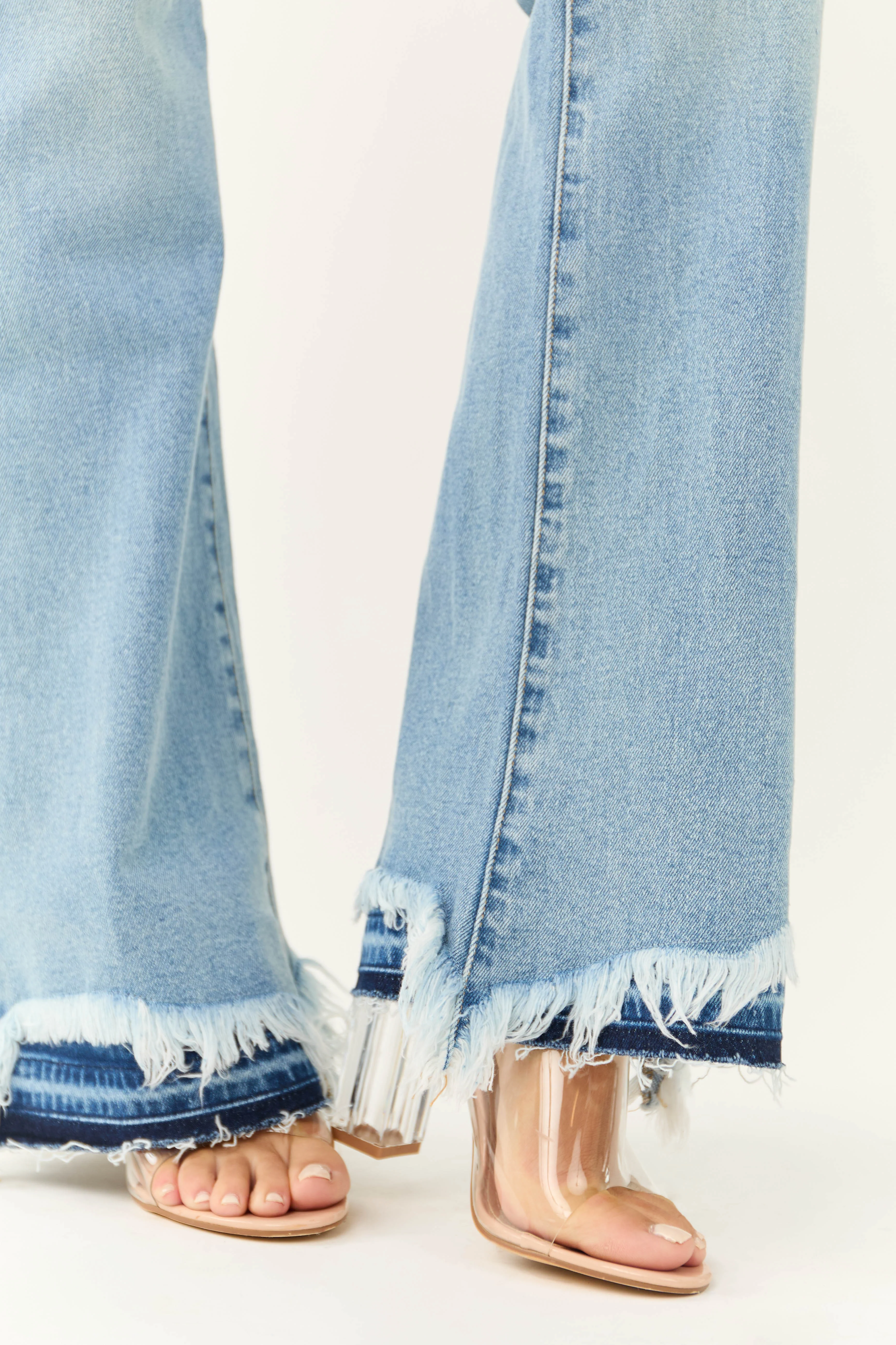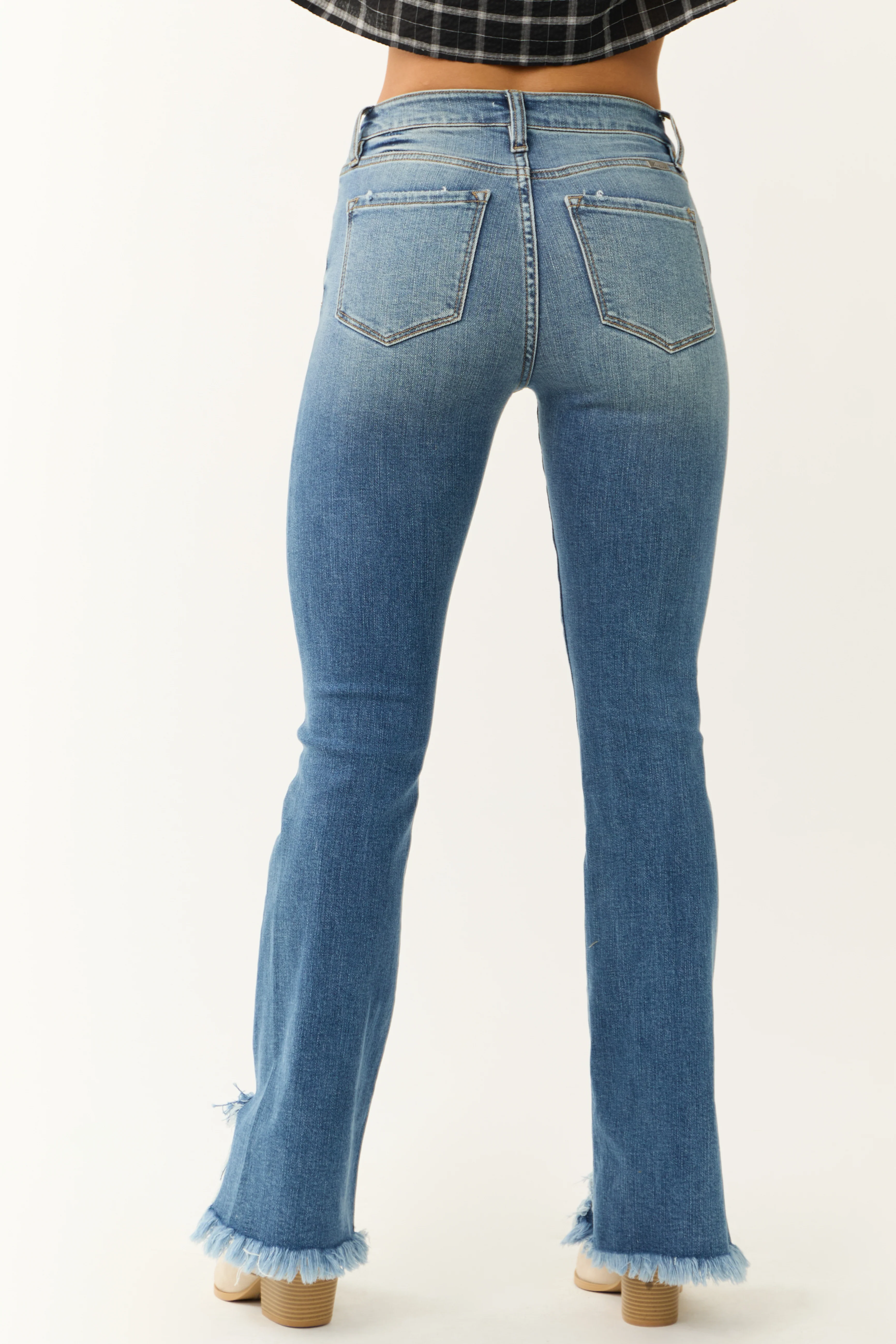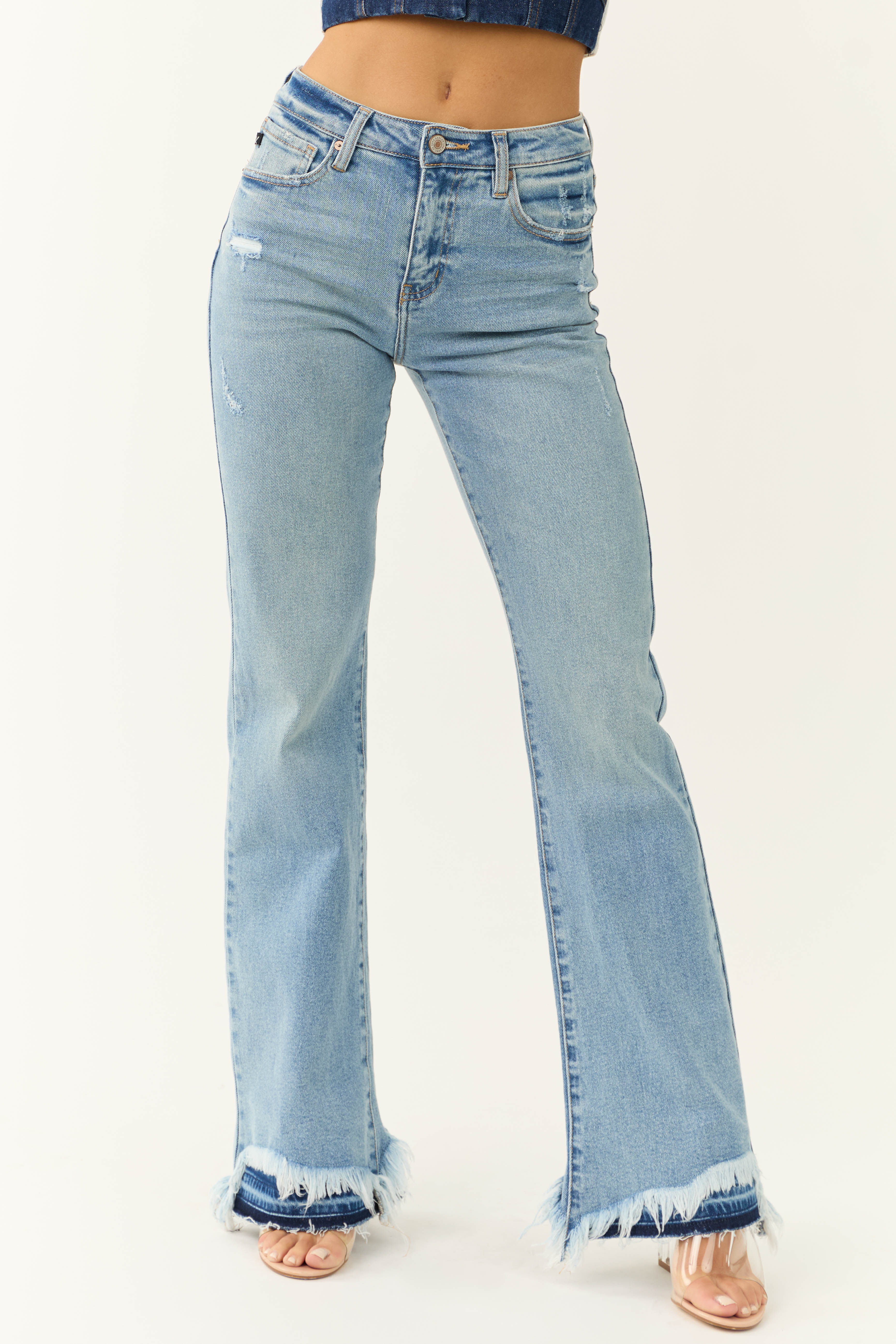 KanCan High Rise Flare Distressed Hem Jeans
