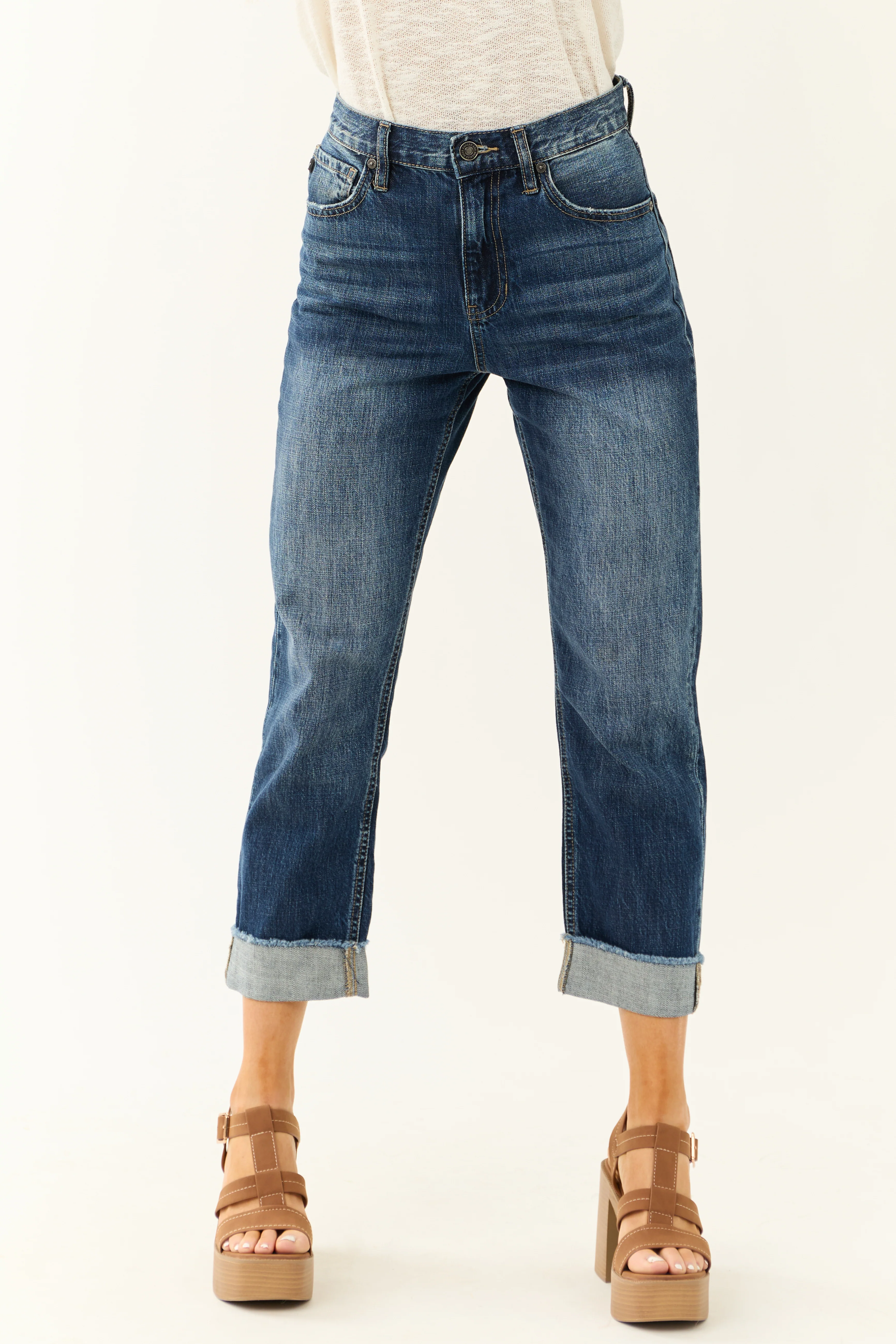 KanCan Medium Washed Cropped Straight Jeans