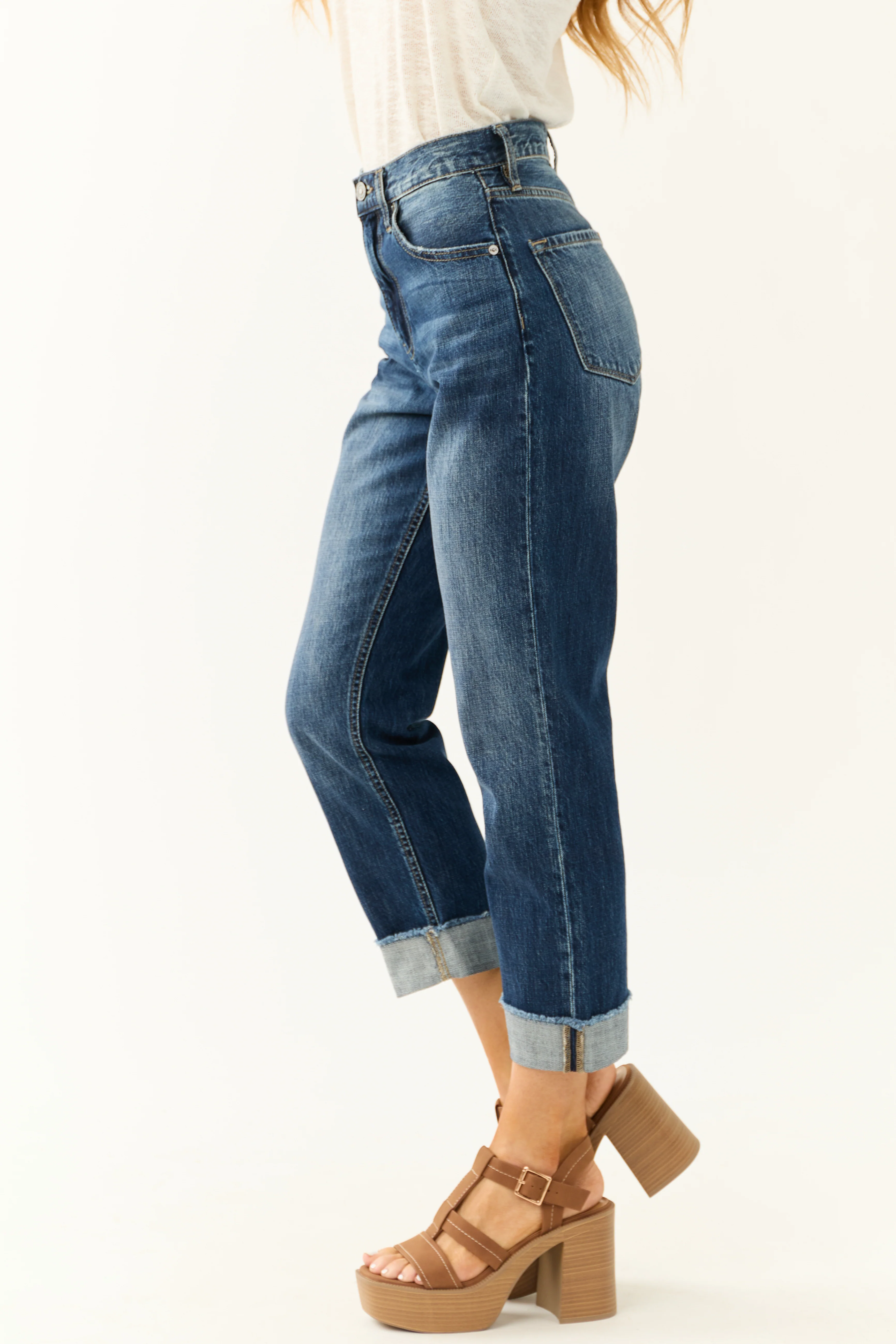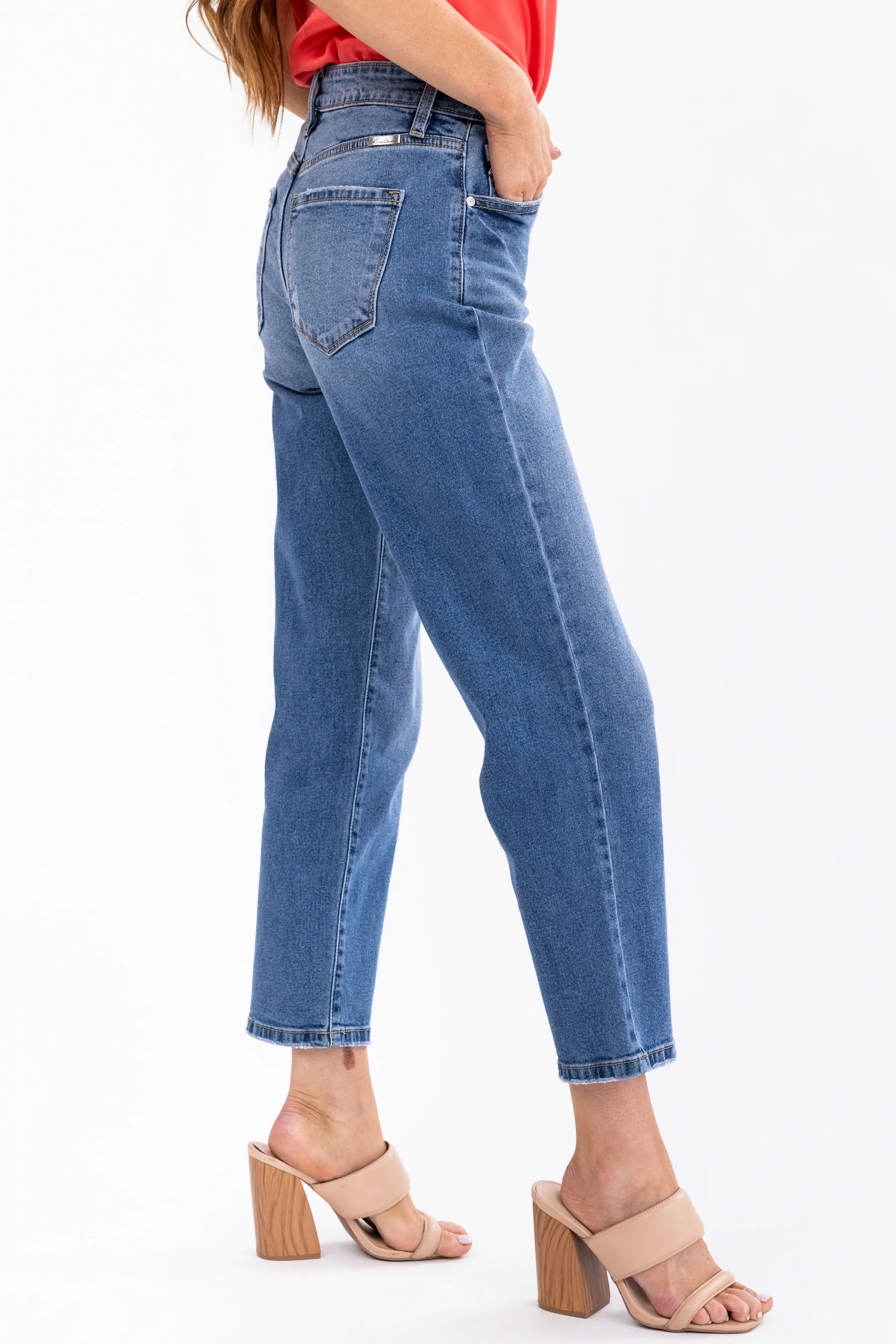 Sneak Peek Medium Wash High Rise Raw Hem Jeans