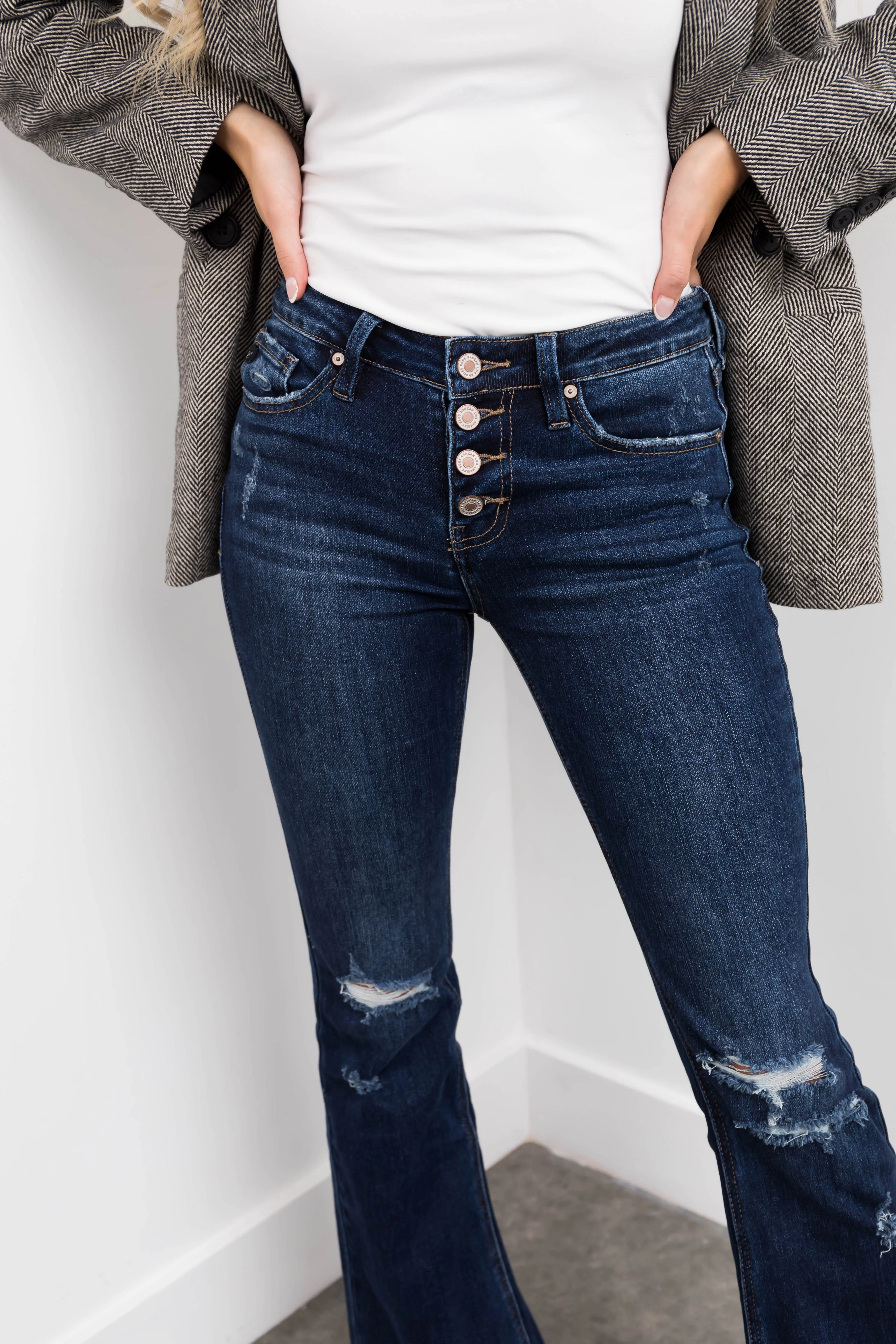 JC & JQ Dark Button Closure Bell Bottom Jeans