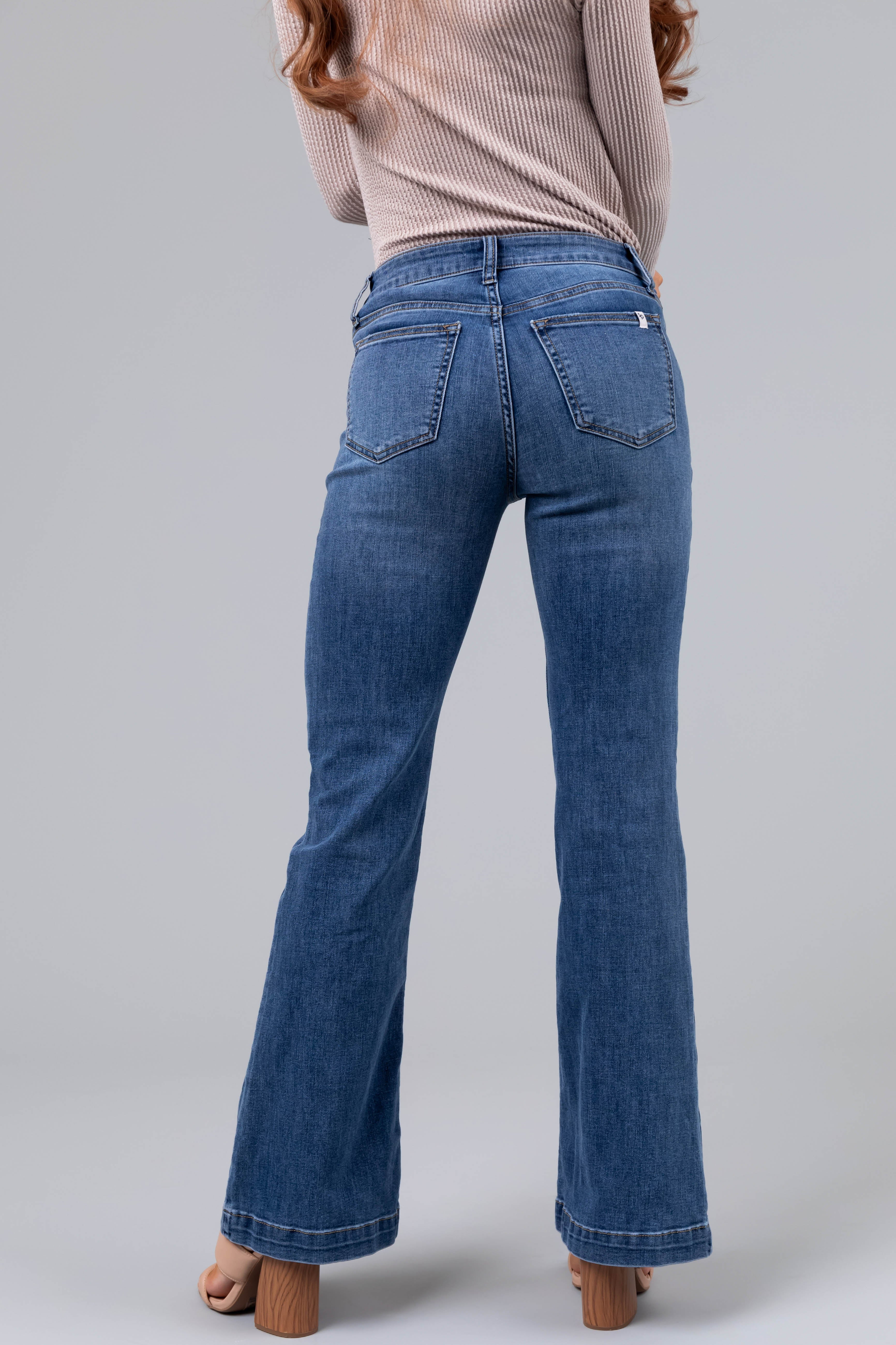 Sneak Peek Medium Wash Mid Rise Flare Jeans