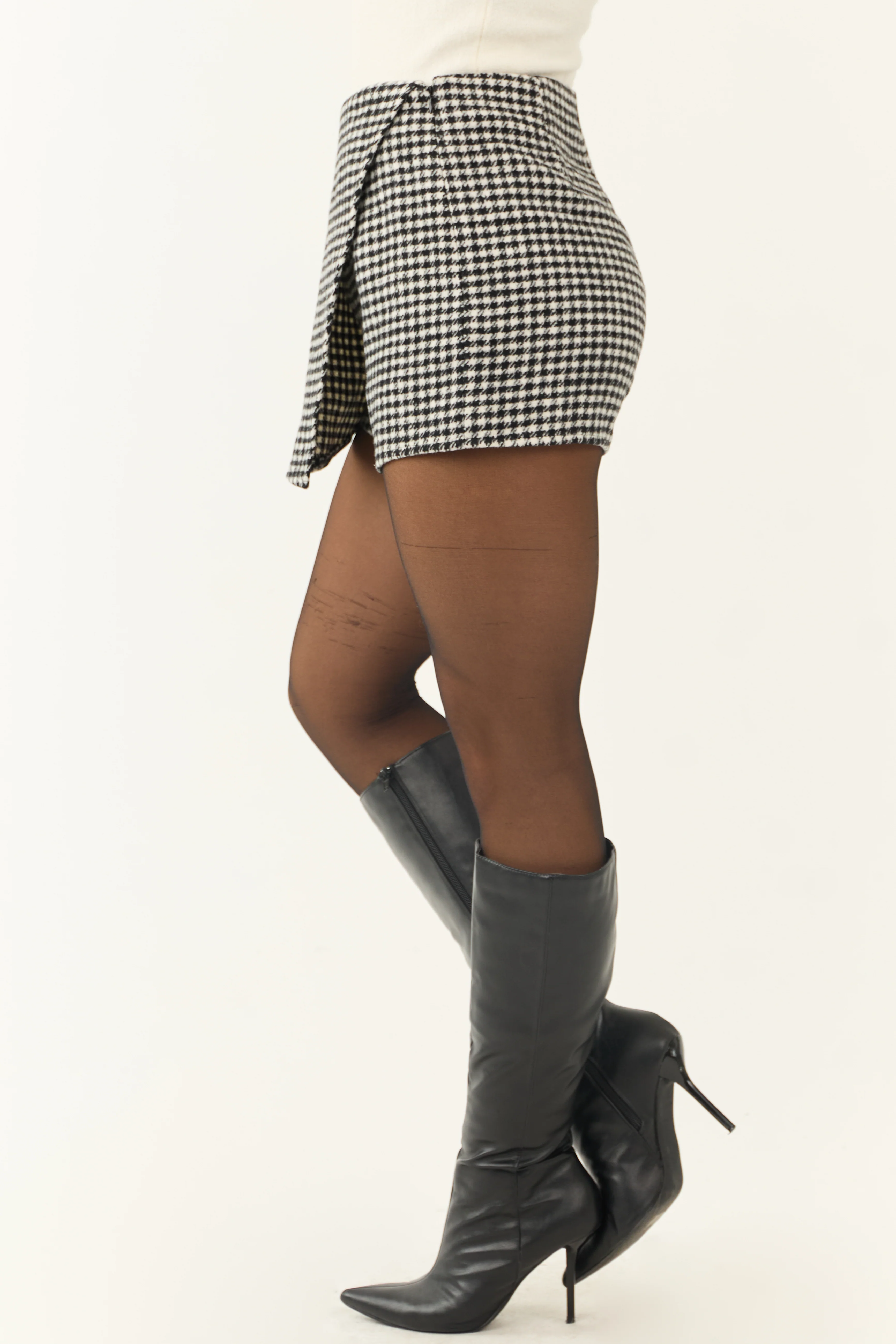 Black and Ivory Houndstooth Tweed Wrap Skort