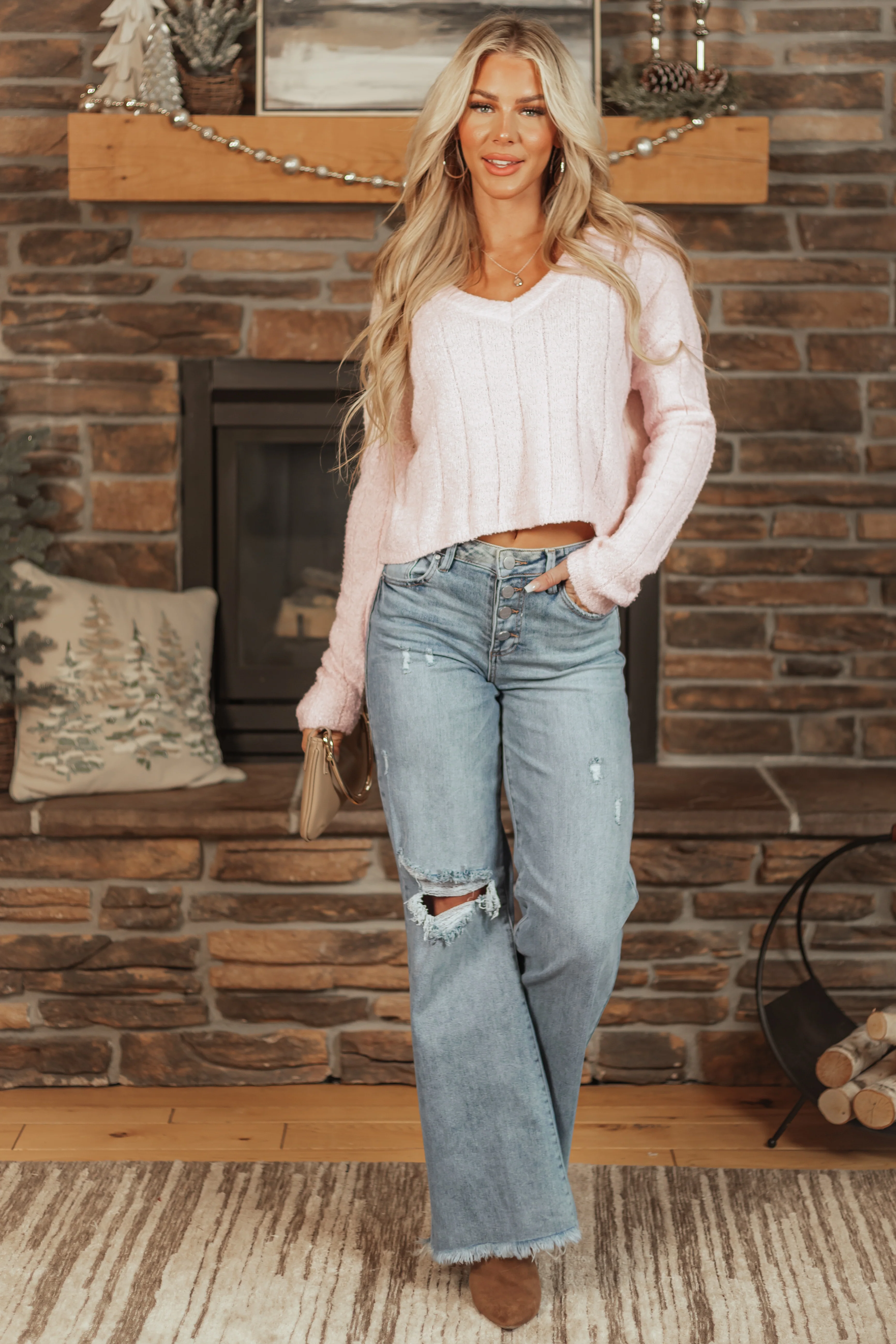 Rewash Light Wash Distressed Knee Wide Leg Jeans