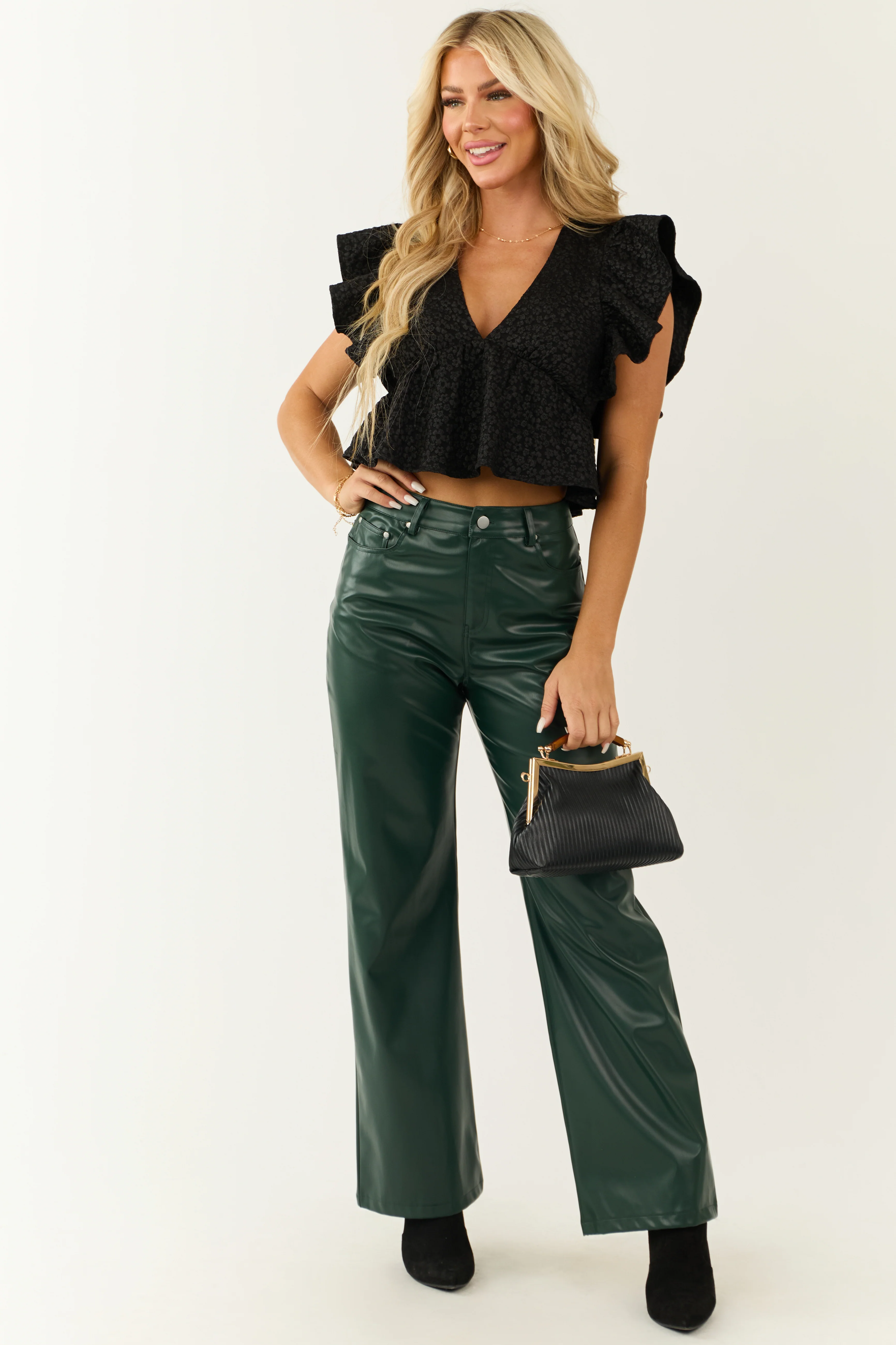 Forest Green Faux Leather Wide Leg High Waisted Pants