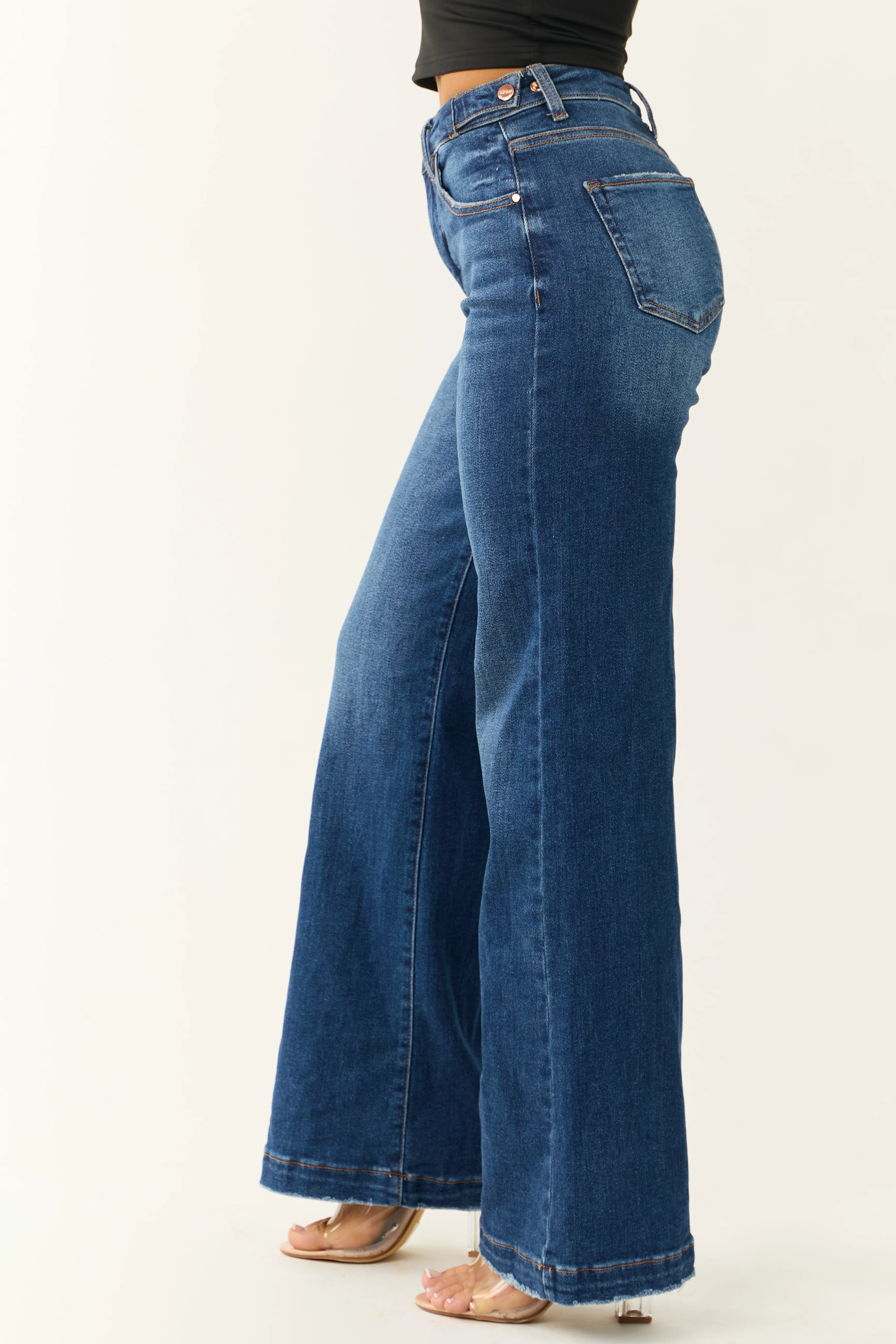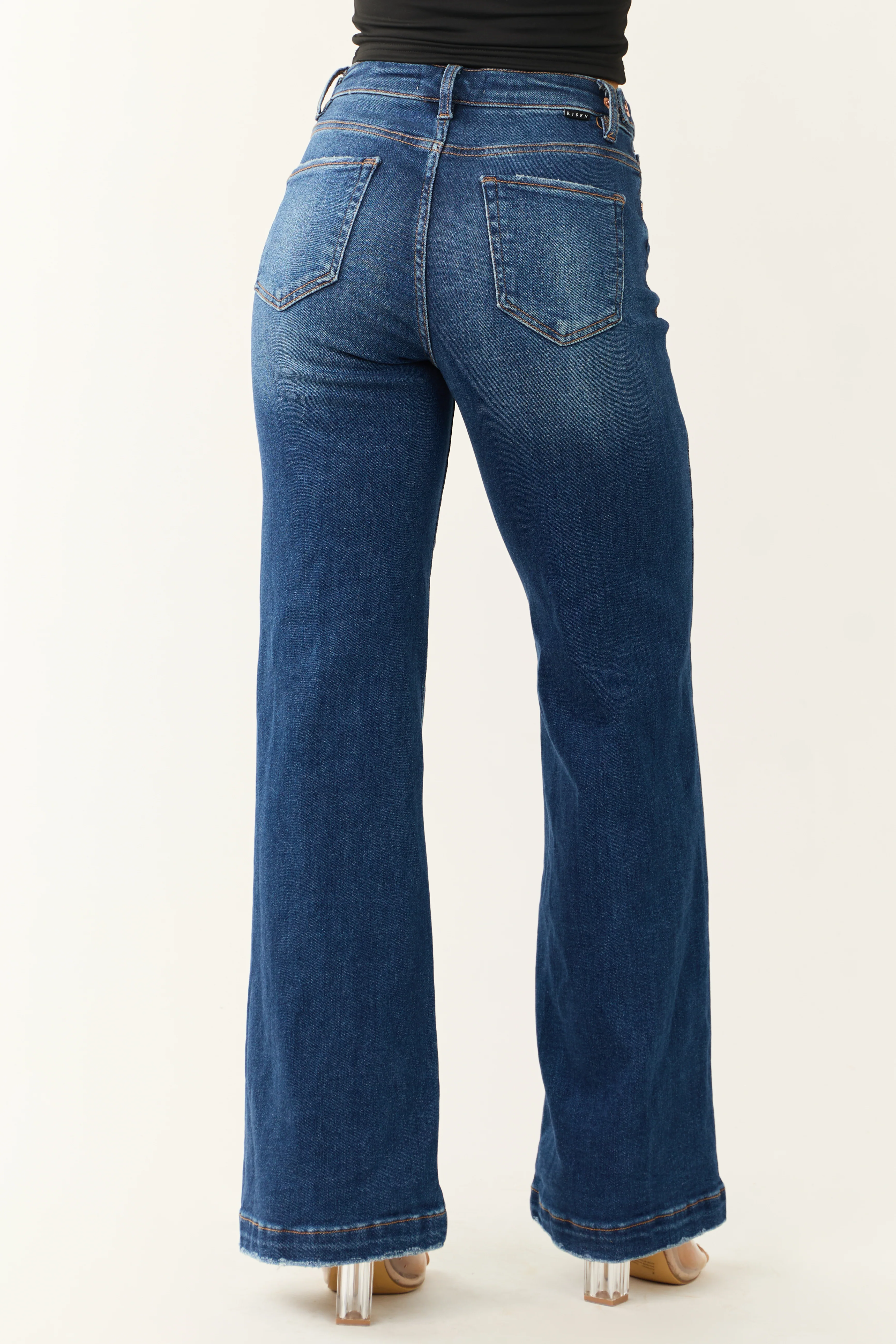 Risen Dark Wash Tummy Control Wide Leg Jeans